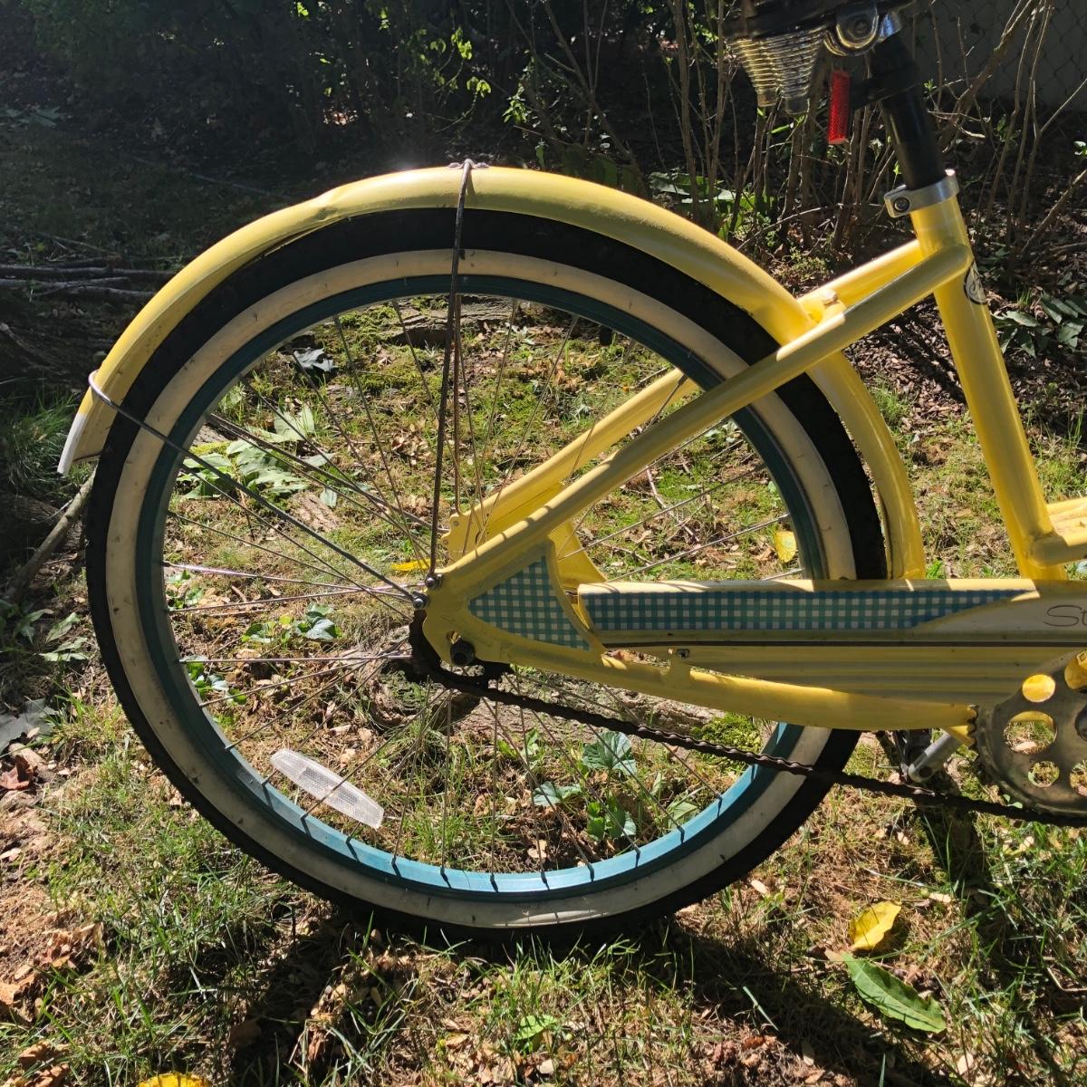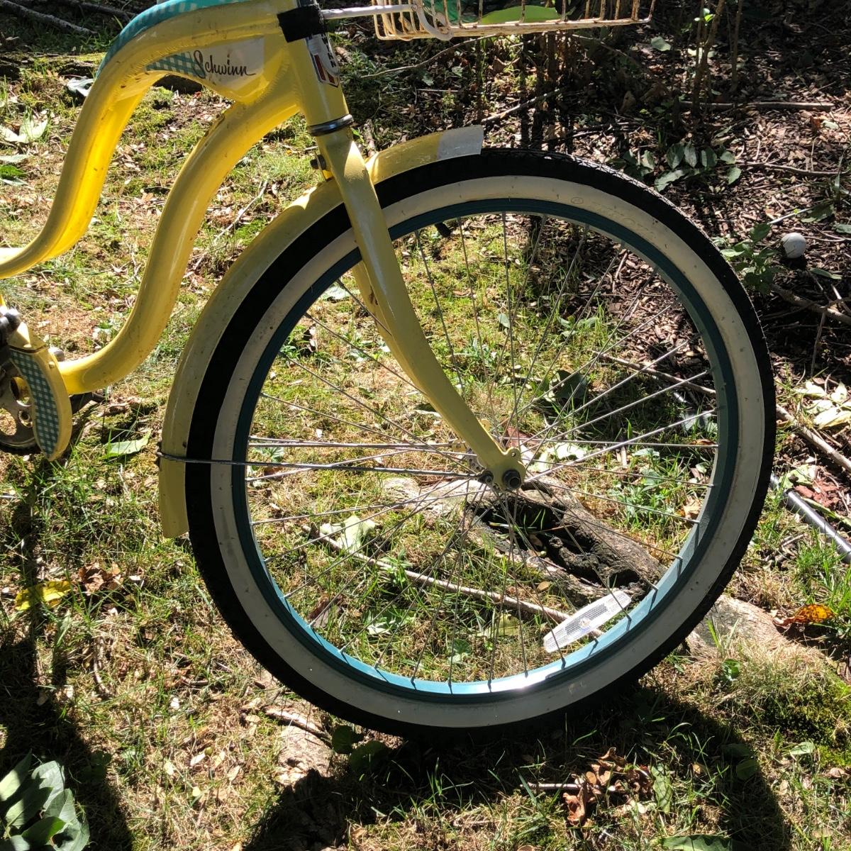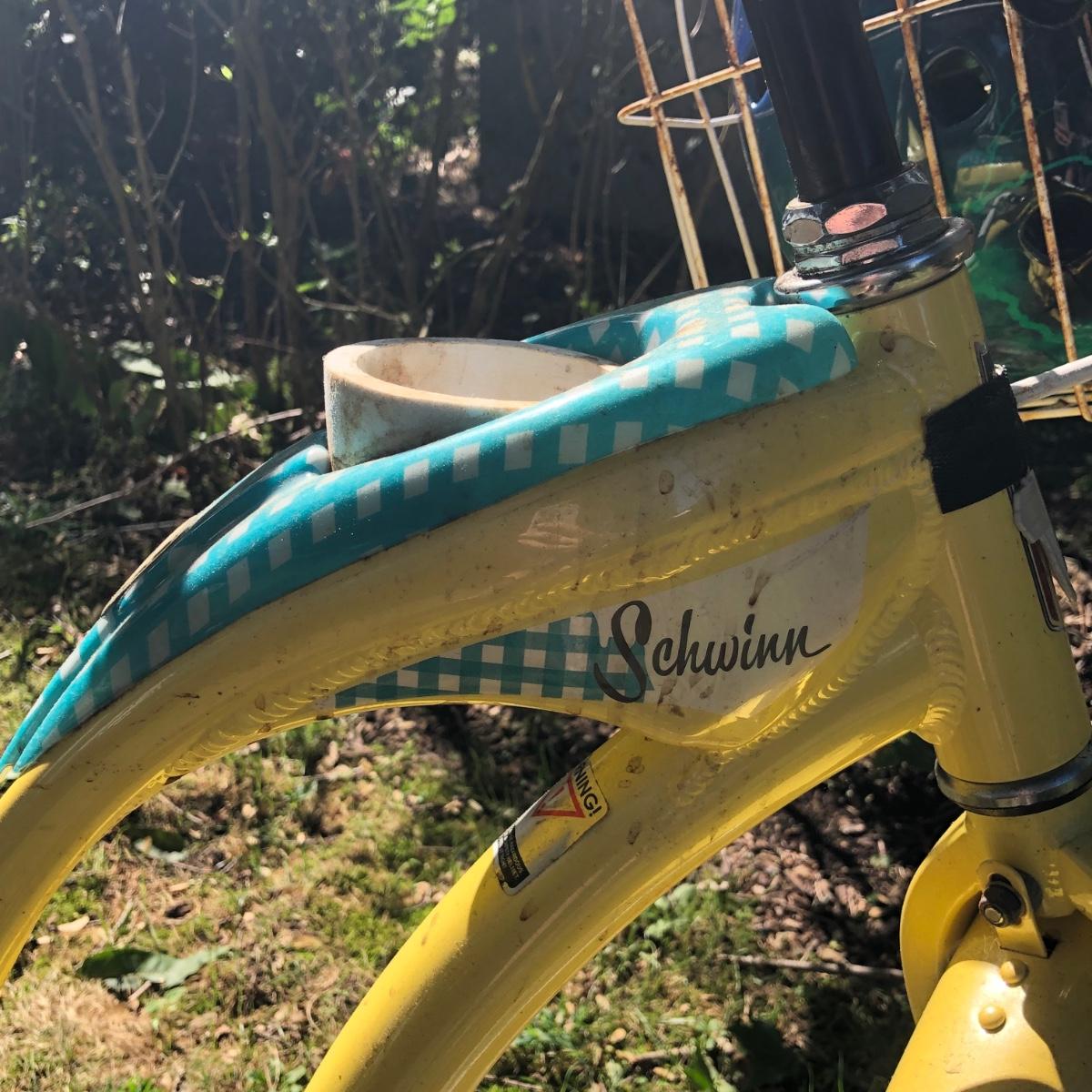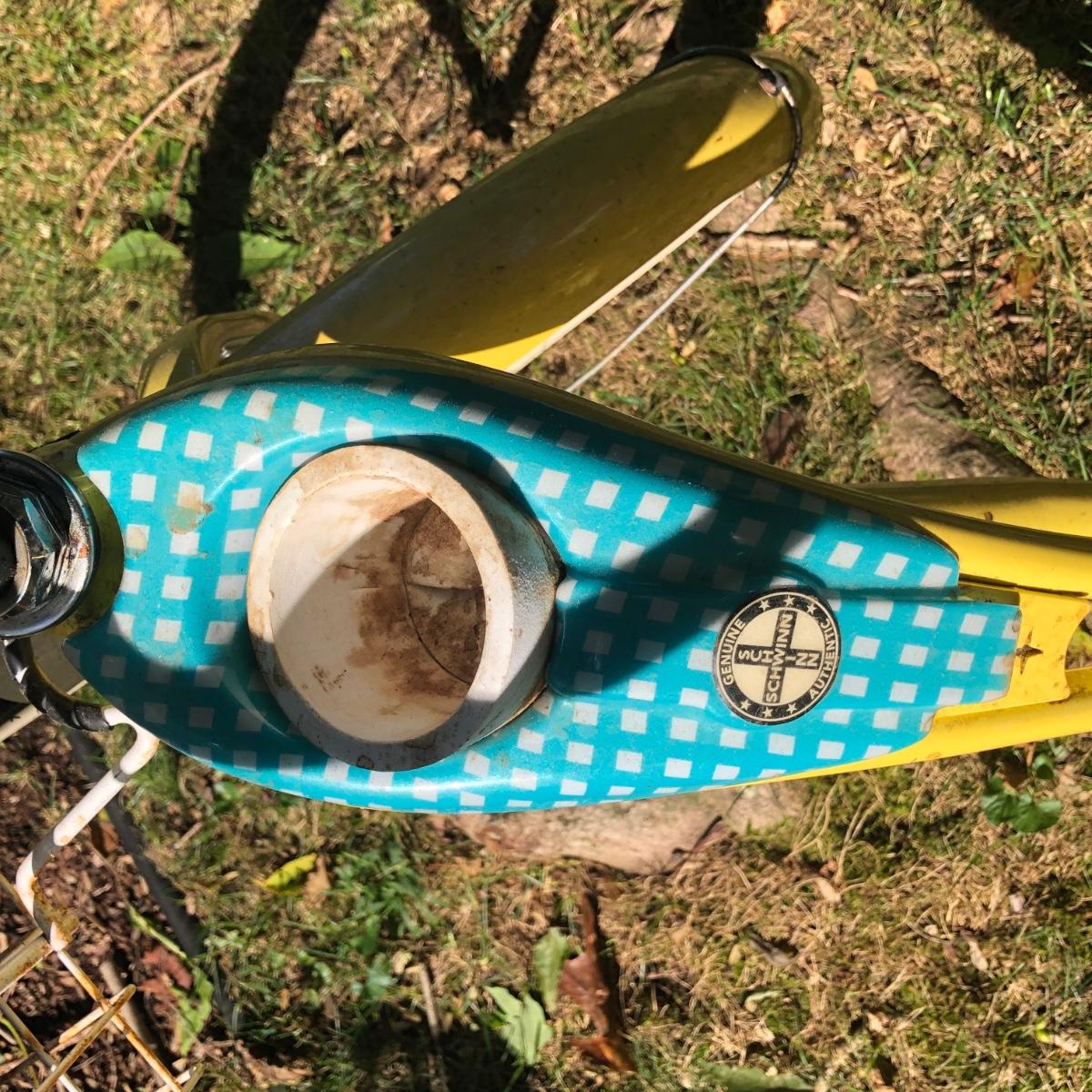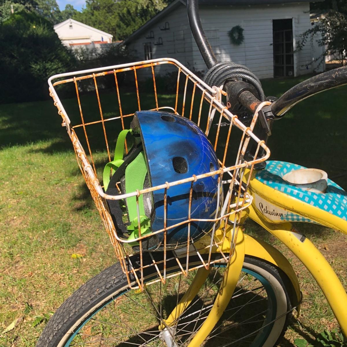 LOT 293M: Schwinn Starlet Yellow & Blue Bike w/ Schwinn Helmet & Bike Lock