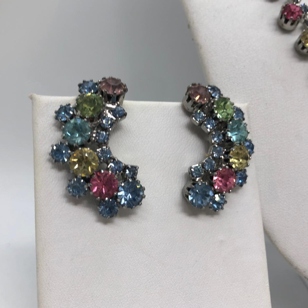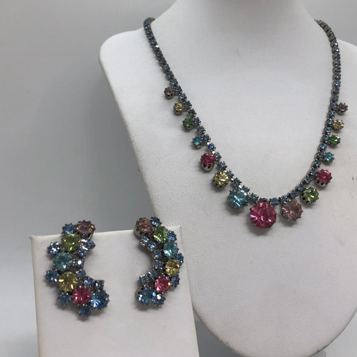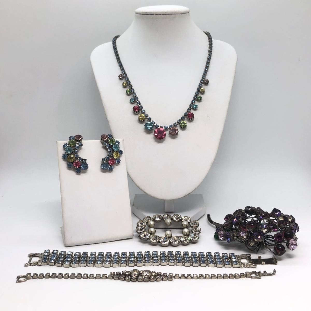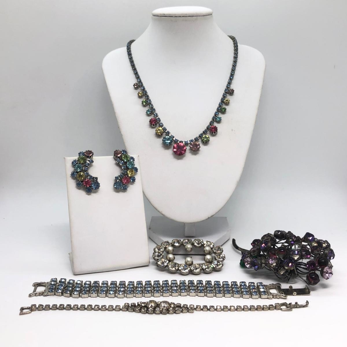 LOT 299M: Rhinestone Collection - 2 Bracelets, Matching Necklace w/ Clipon Earrings & More