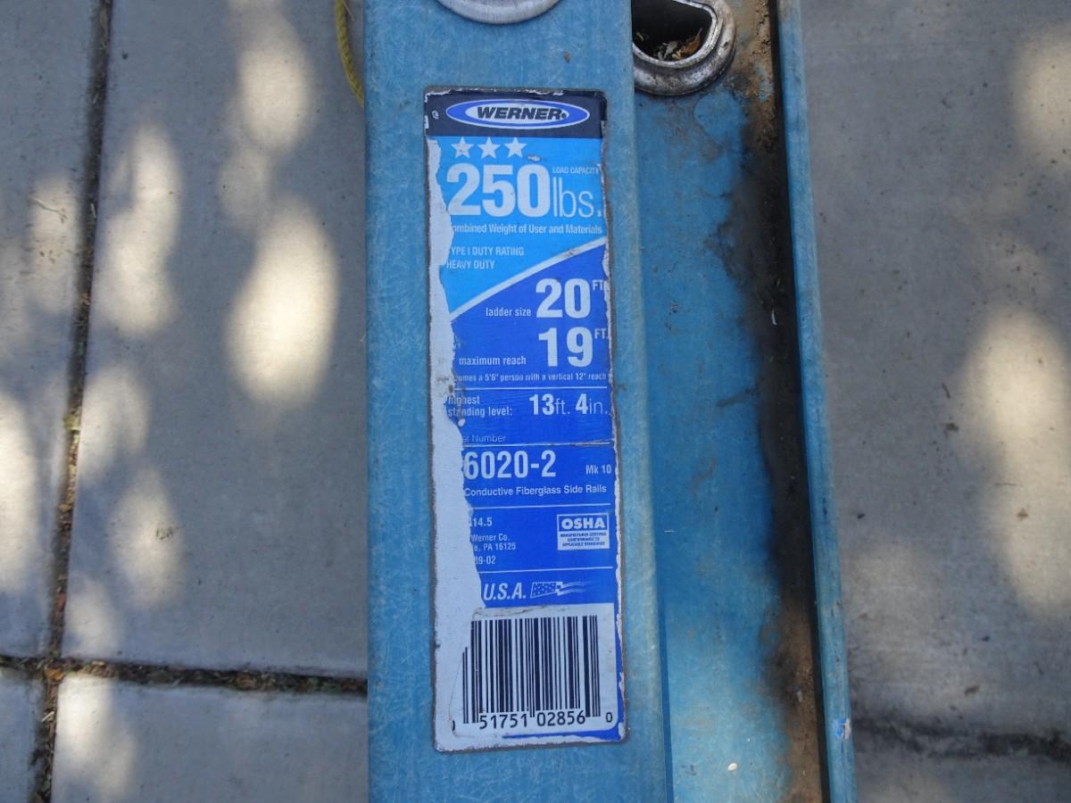LOT 937. WERNER 250 LBS/ 20FT FIBERGLASS LADDER
