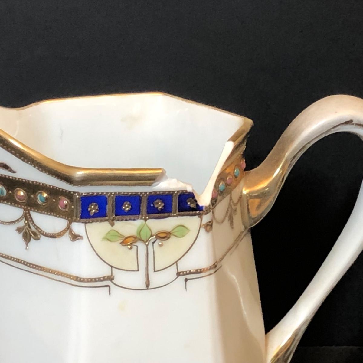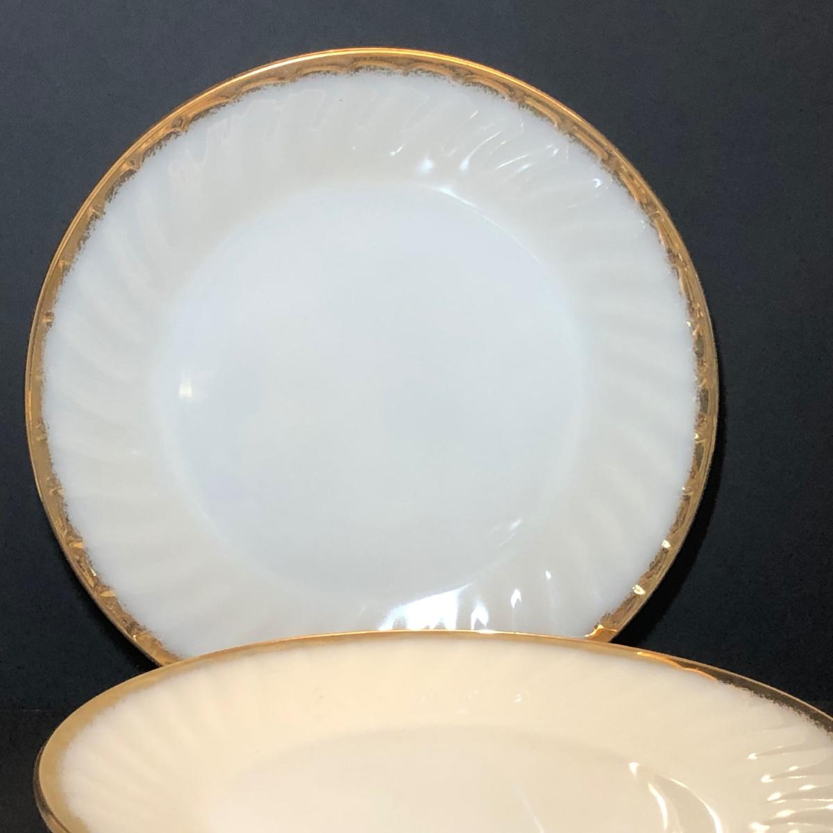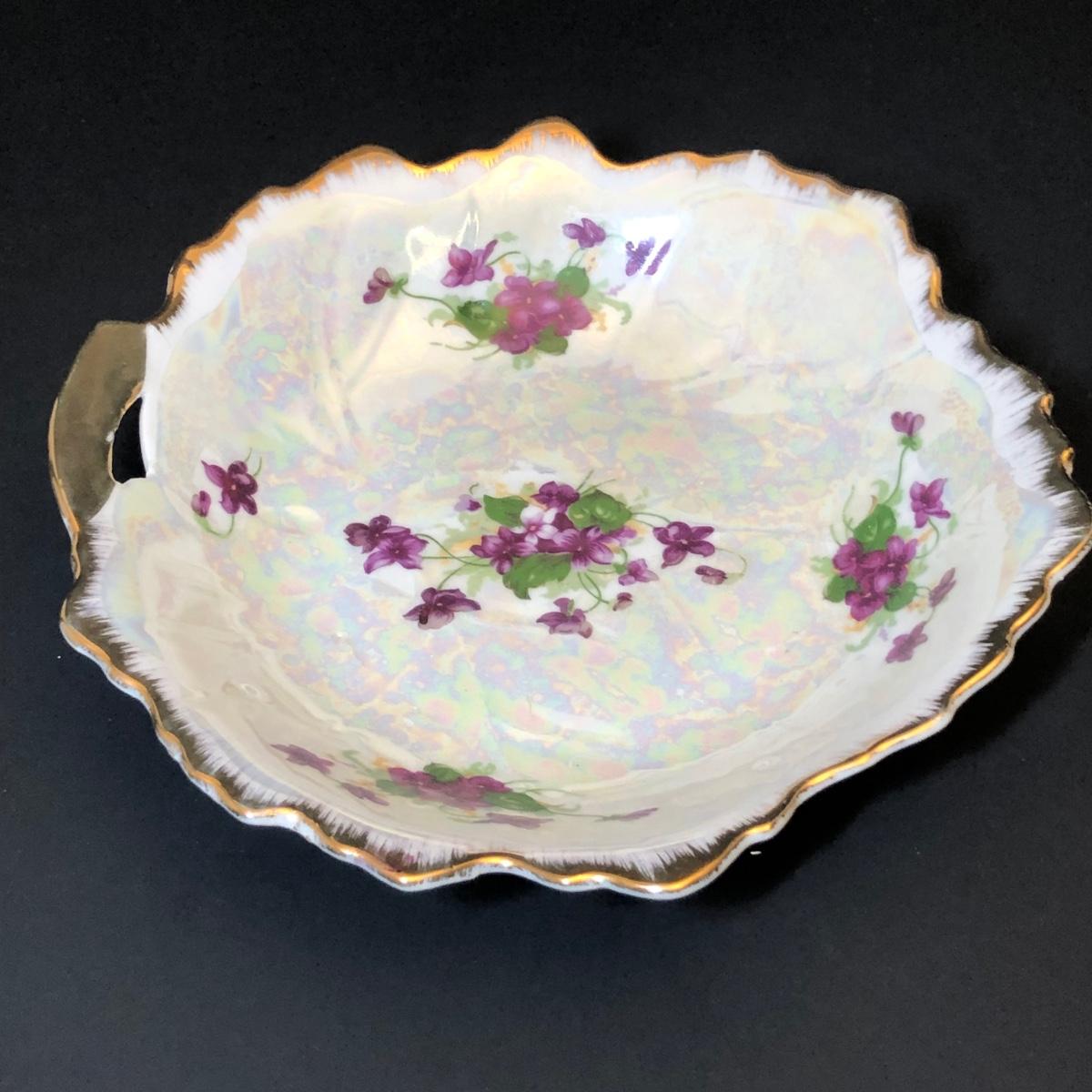LOT 24L: Fireking Ovenware Plates (4), Limoges France Hand Painted Plate, "Sweet Violet" Dish, 22kt Gold Decorated Dahaba China Pitcher & More