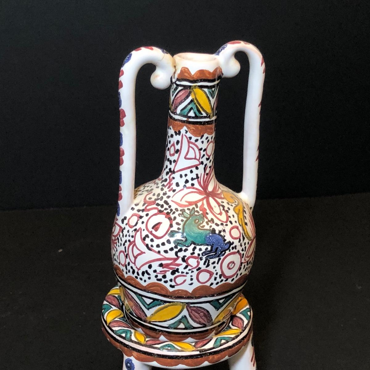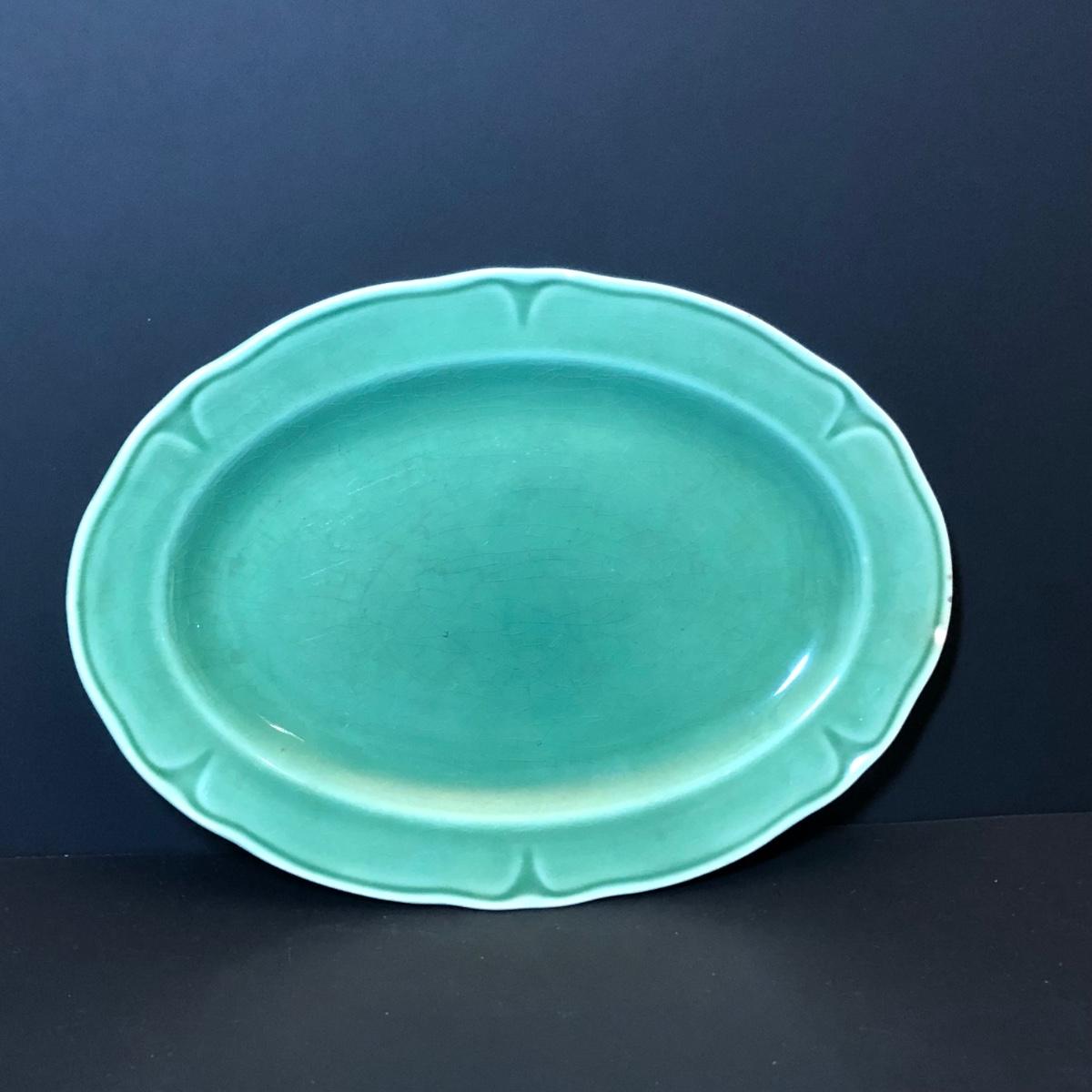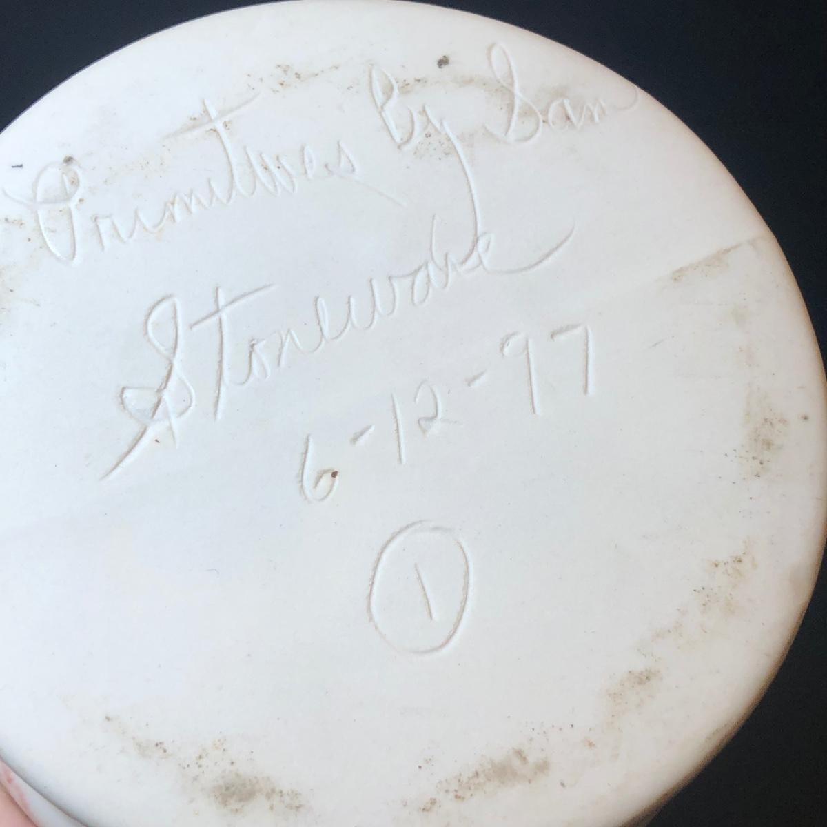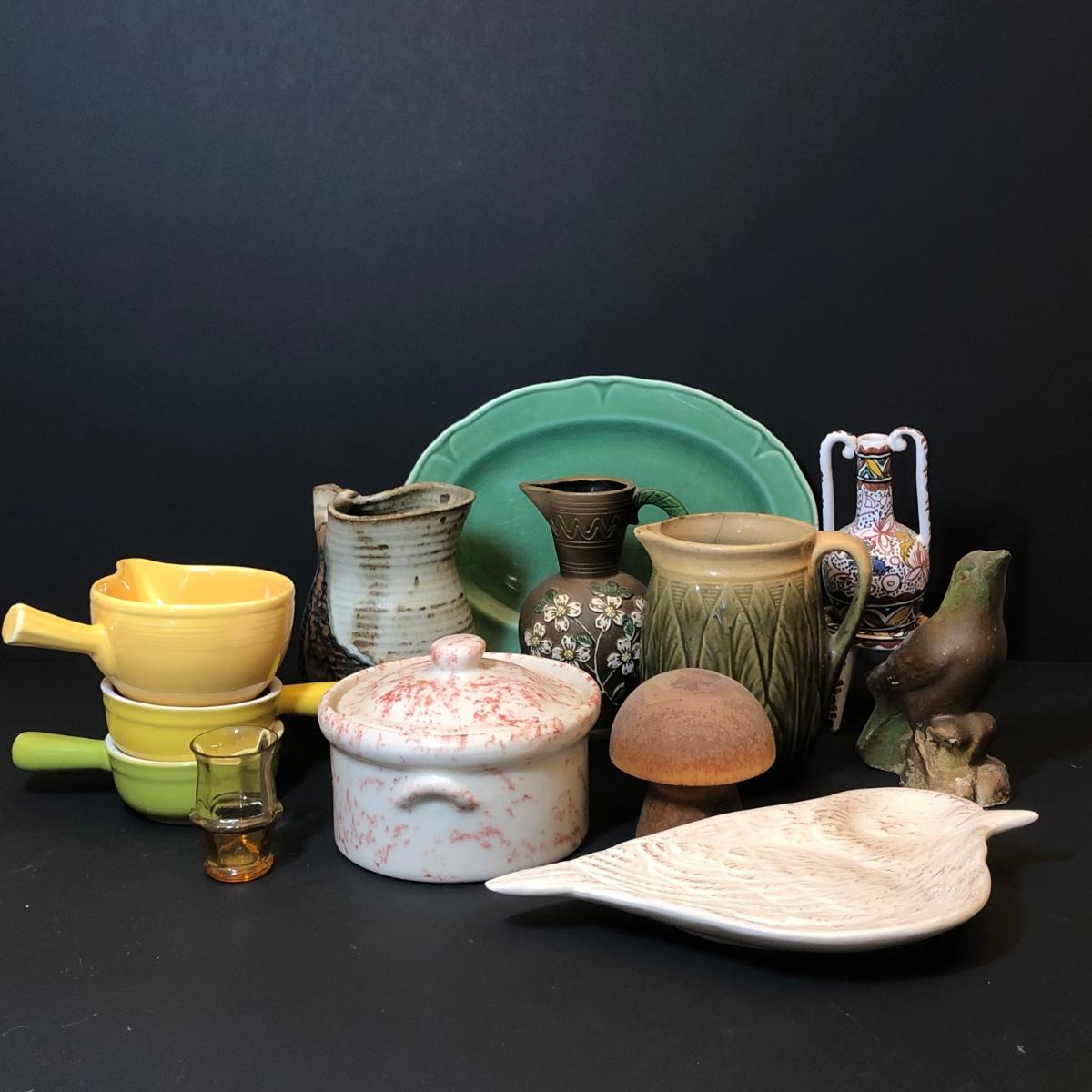 LOT 25L: Vintage Mt. Clemens Pottery Co. Green Oval Platter, Signed 1997 Primitives by San Stoneware Piece, Dennis East Bird Plate, Signed Pottery Piece & More