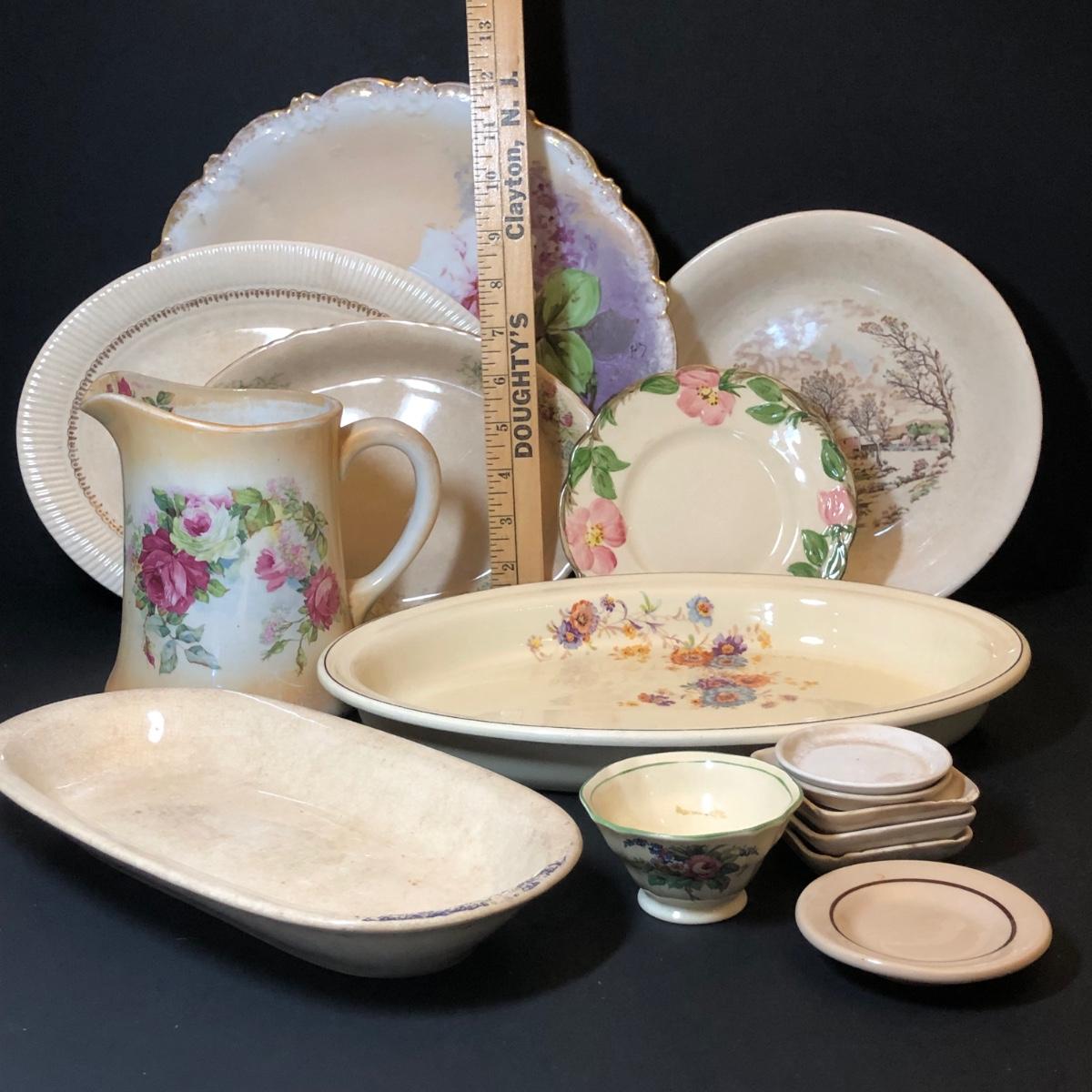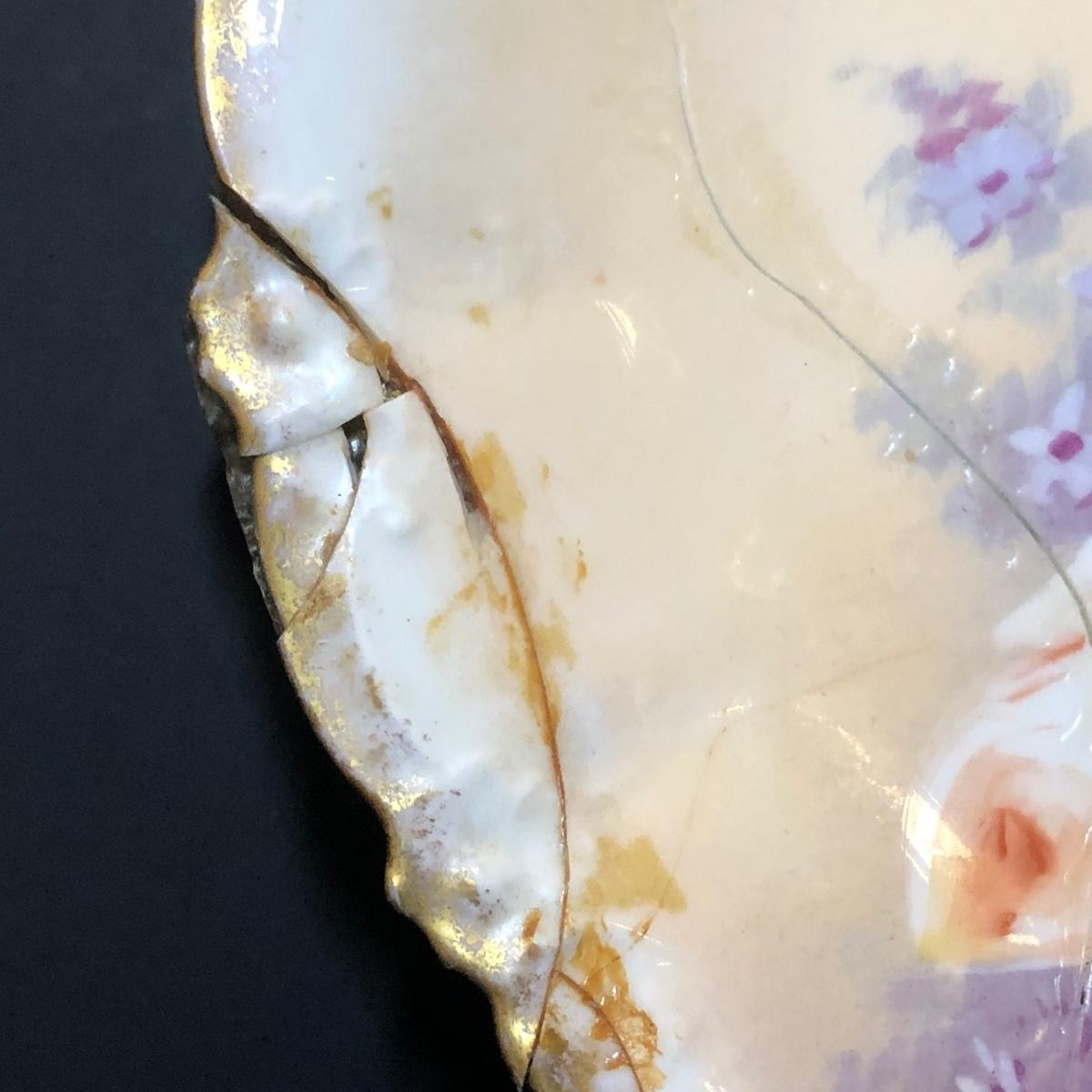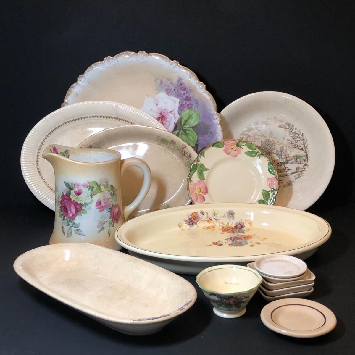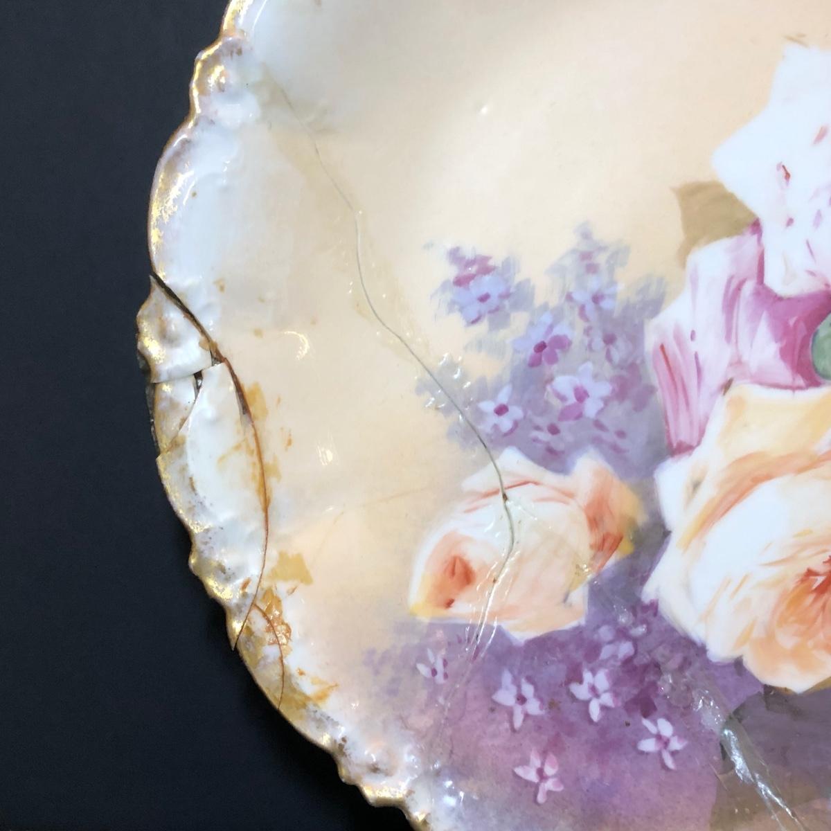 Some pieces have condition issues. Limoges platter is badly damaged.