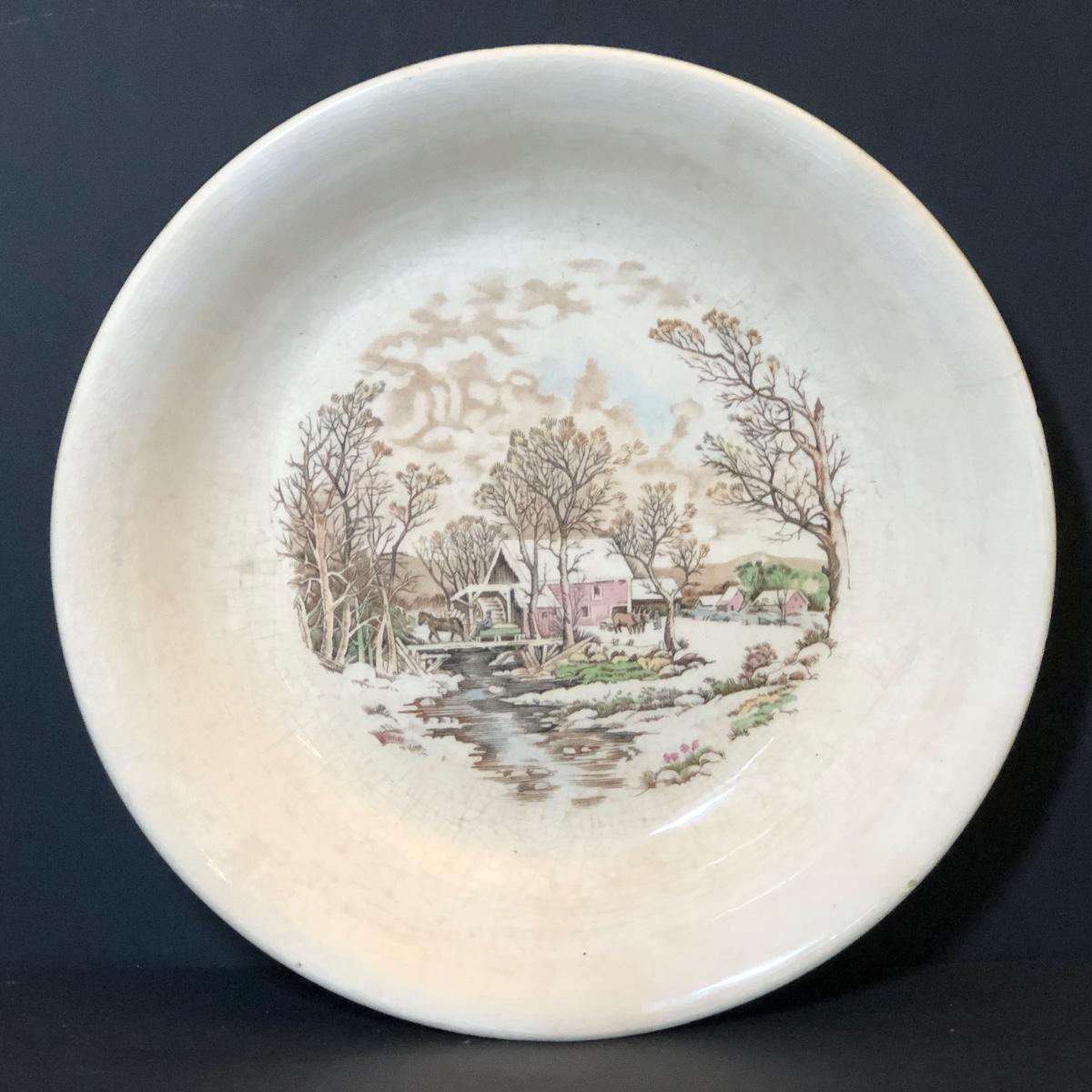 LOT 38L: Hand Painted Limoges France Platter, Cowin M. Knowles Winter Scene Bowl, Victory Salem China Platter, Franciscan Earthware Plate, Royal Winton Grimwades Small Bowl & More