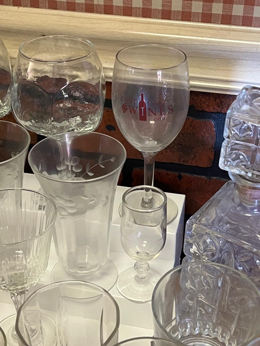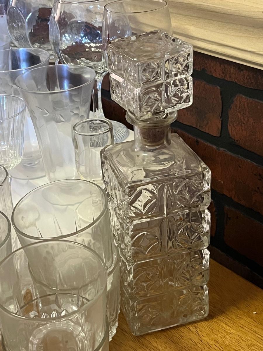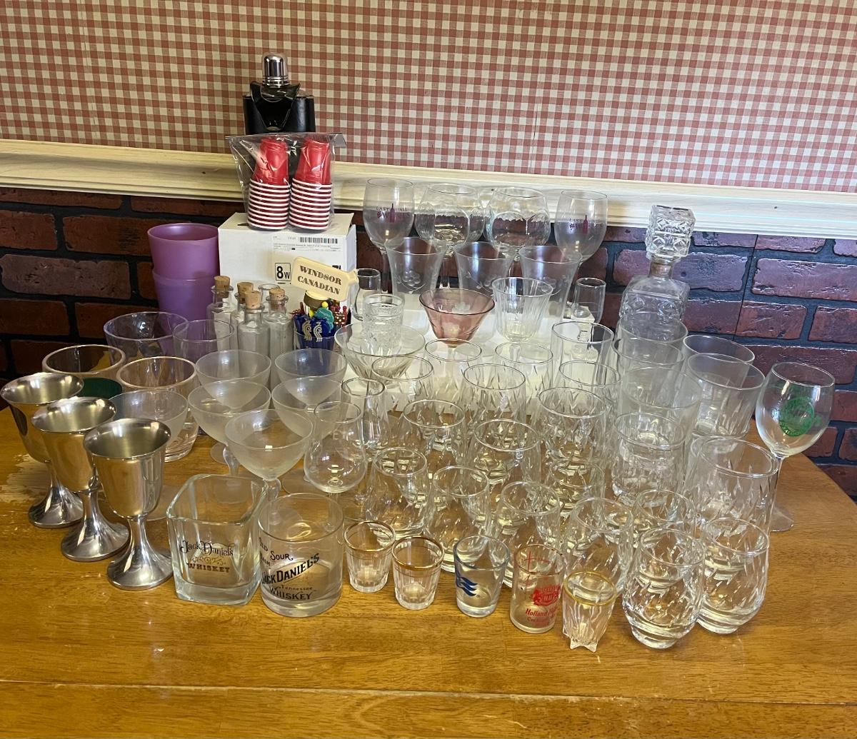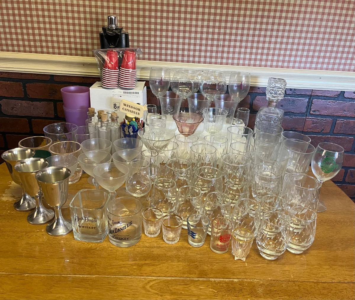 LOT 61K: Barware & Glassware, Stemware, Glasses, Decanter, Flask, Cups