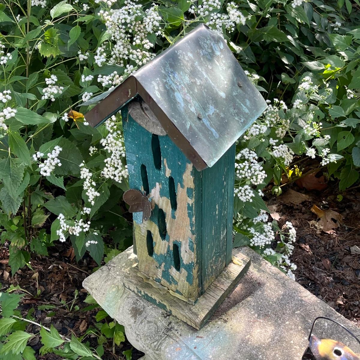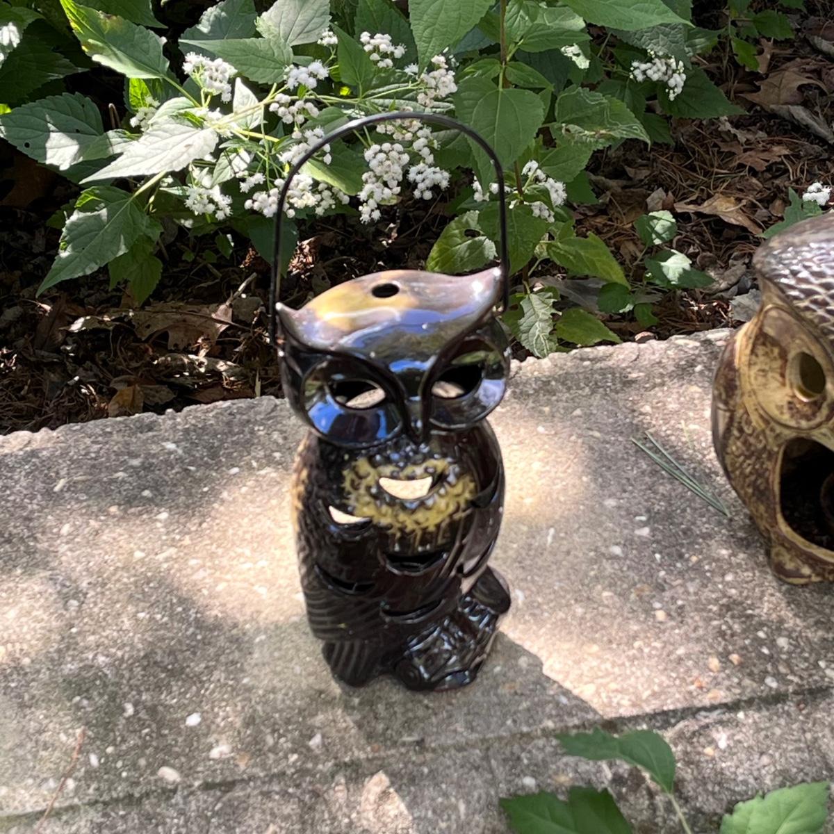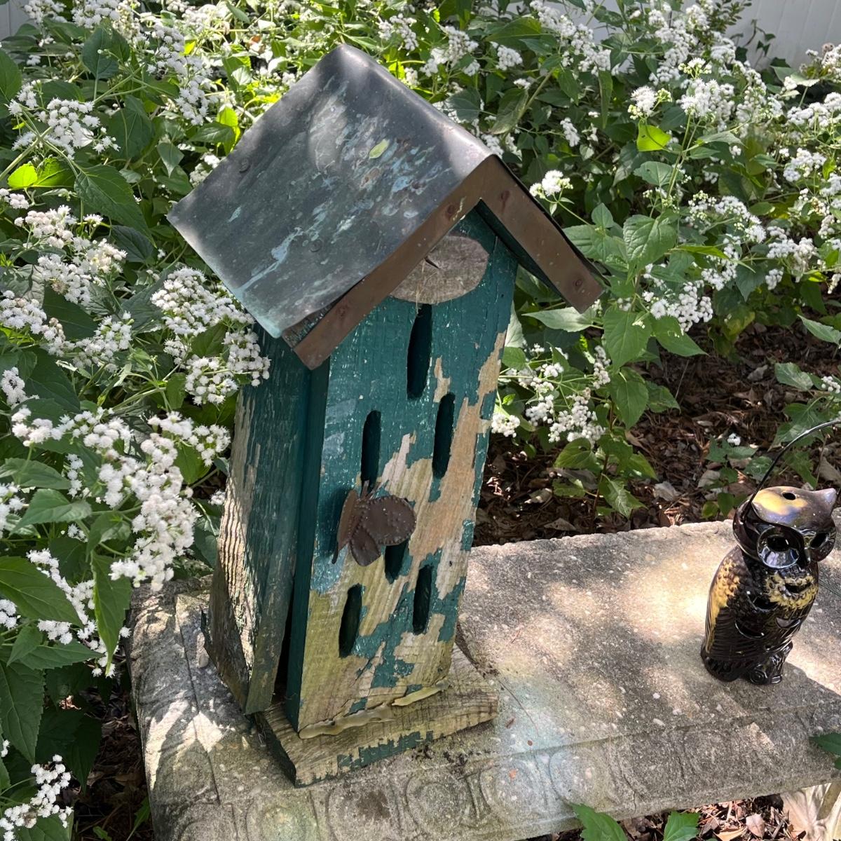LOT 64Y: Concrete Bench and Garden Decor, Birdhouse, Owls