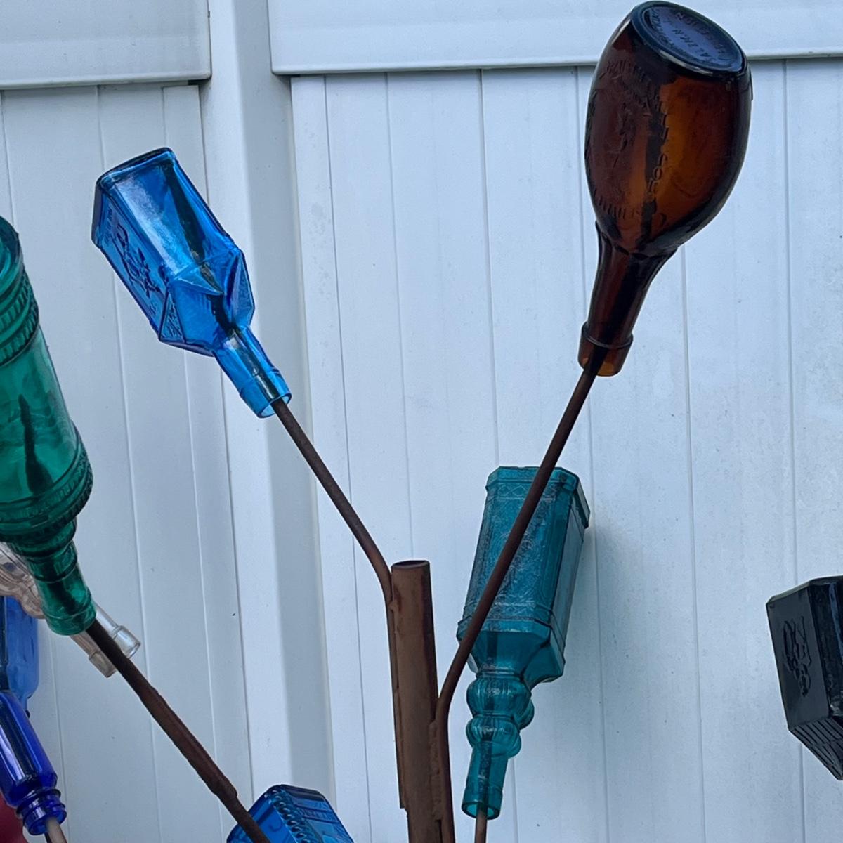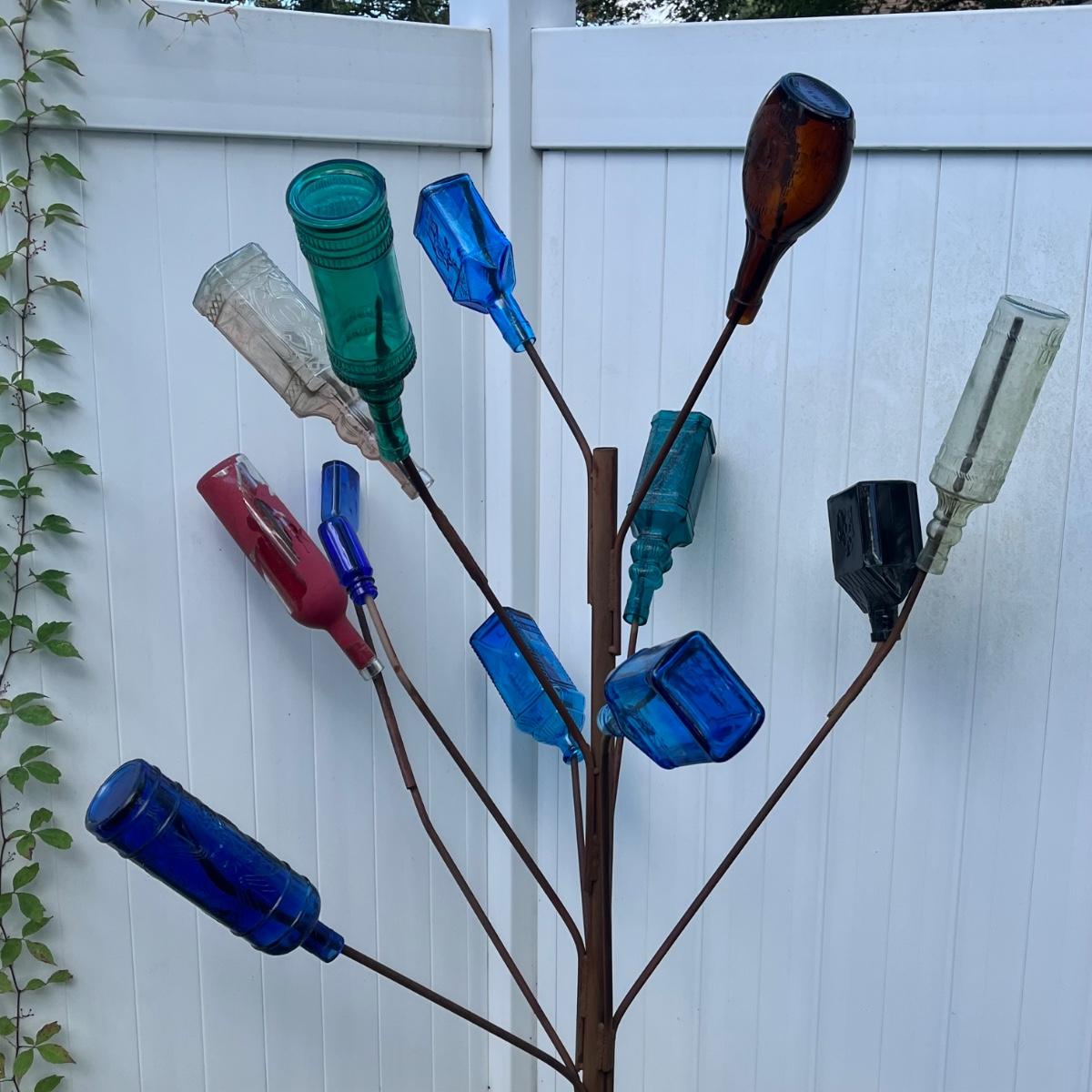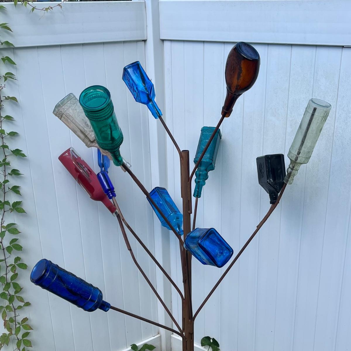 LOT 67Y: Bottle Tree with Local Interest Bottles, Wheaton, Anchor Hocking & More