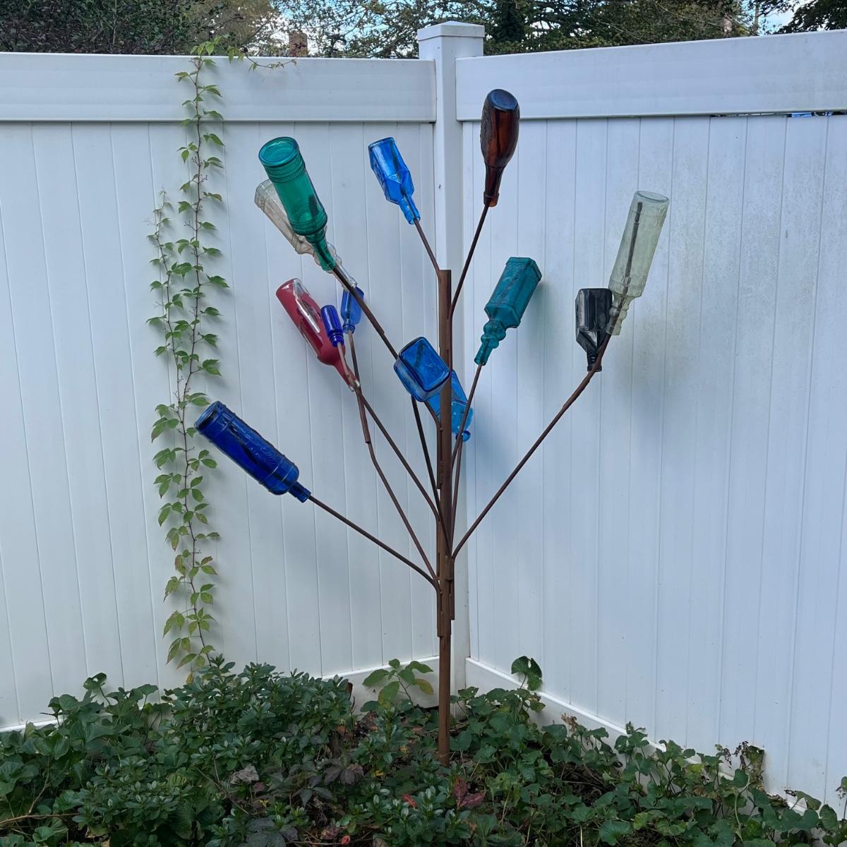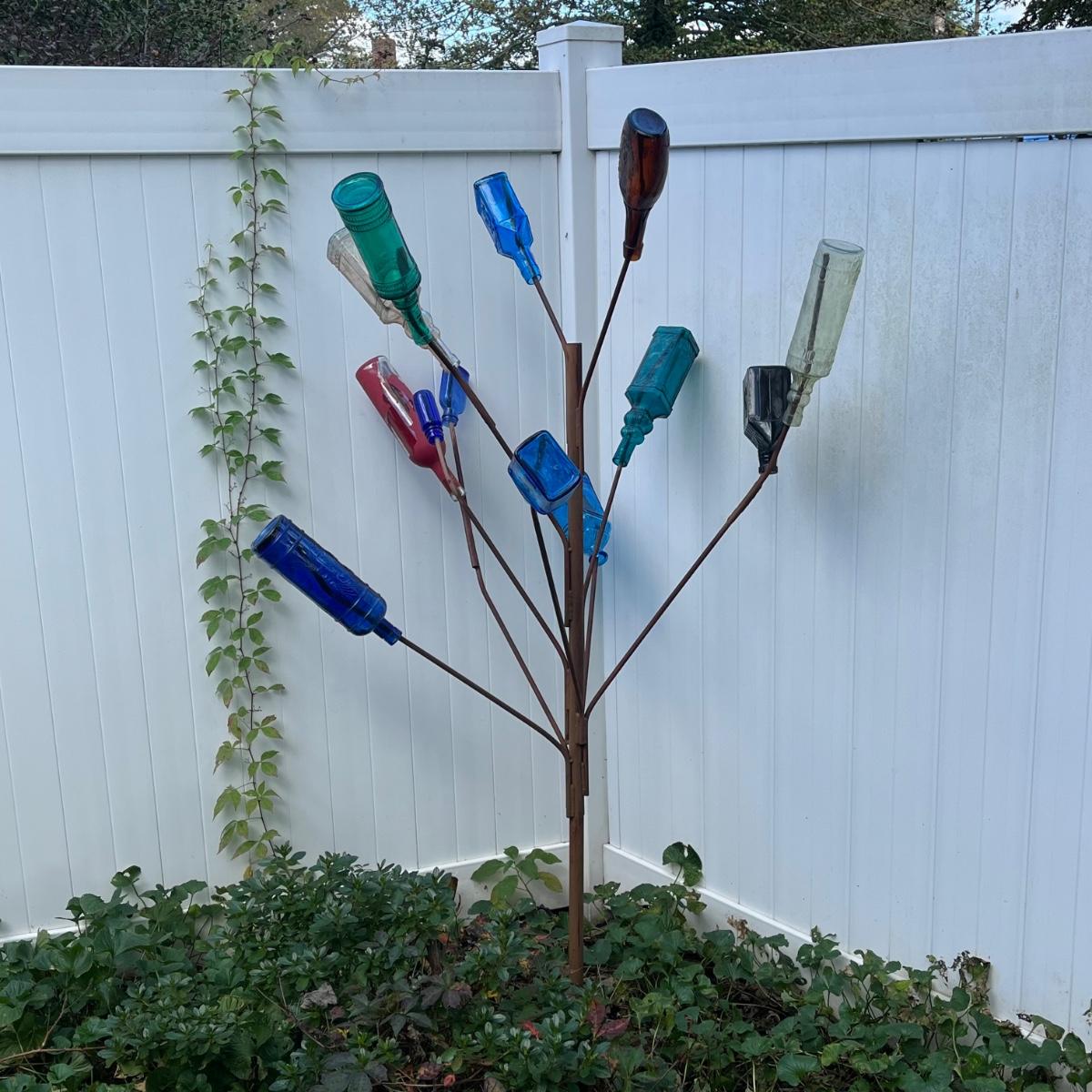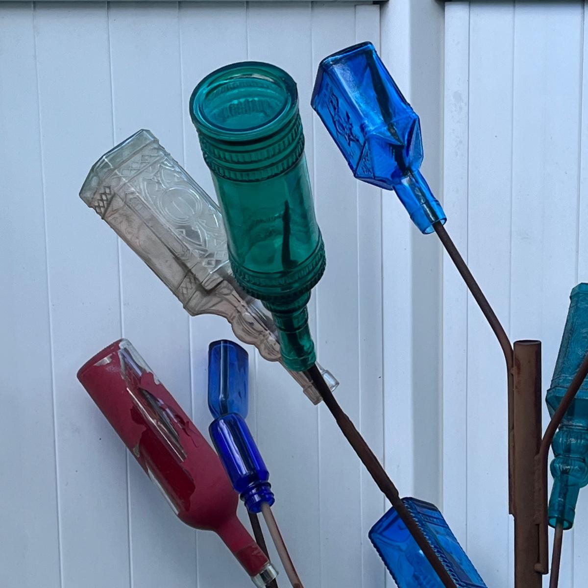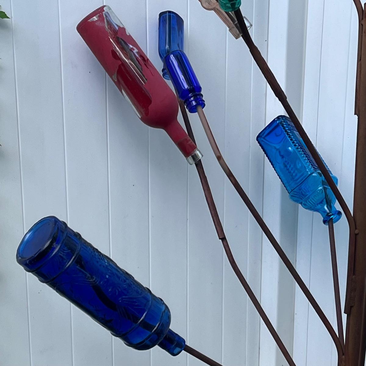 LOT 67Y: Bottle Tree with Local Interest Bottles, Wheaton, Anchor Hocking & More