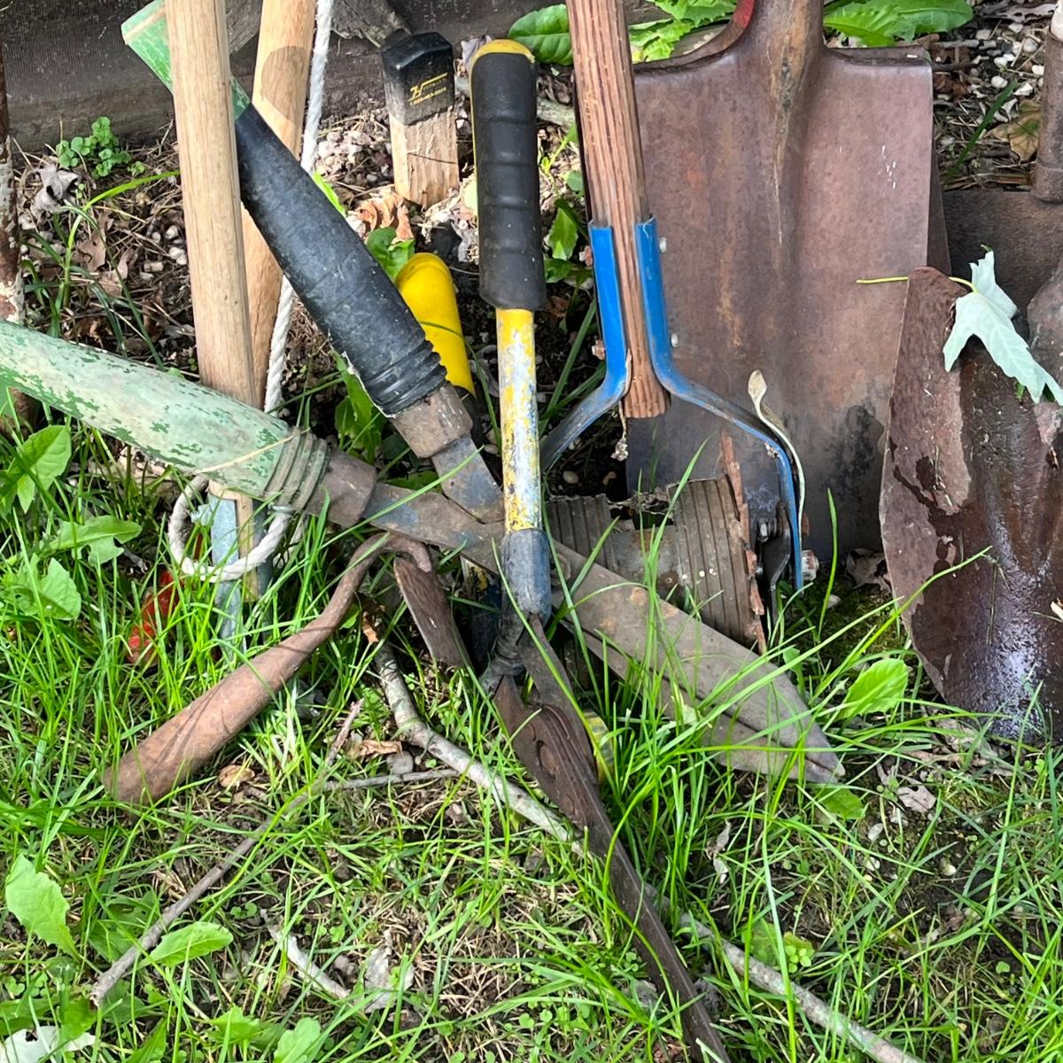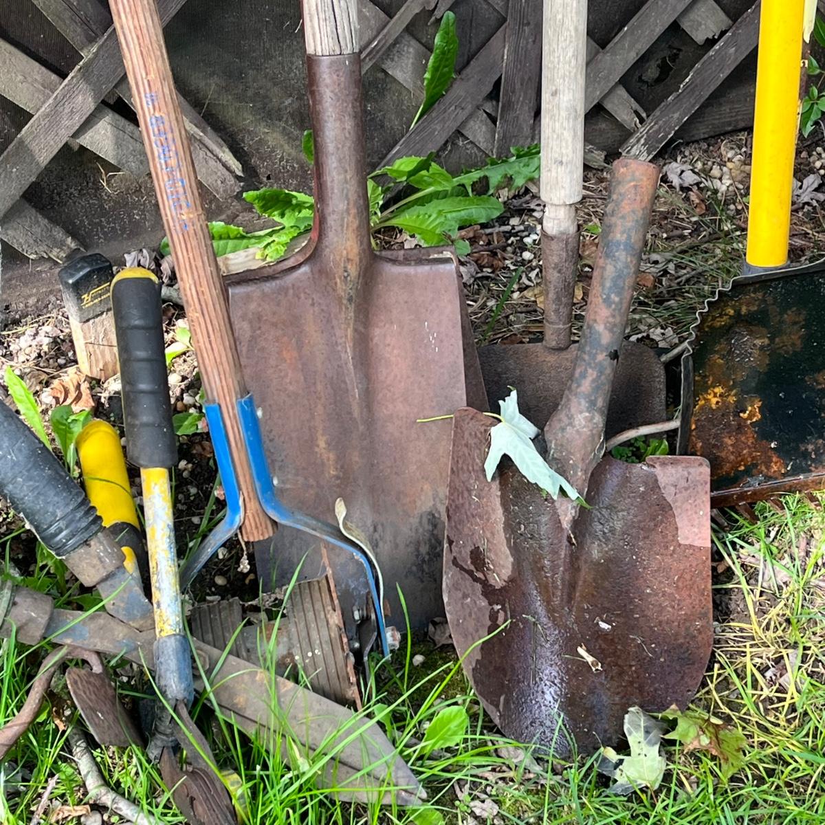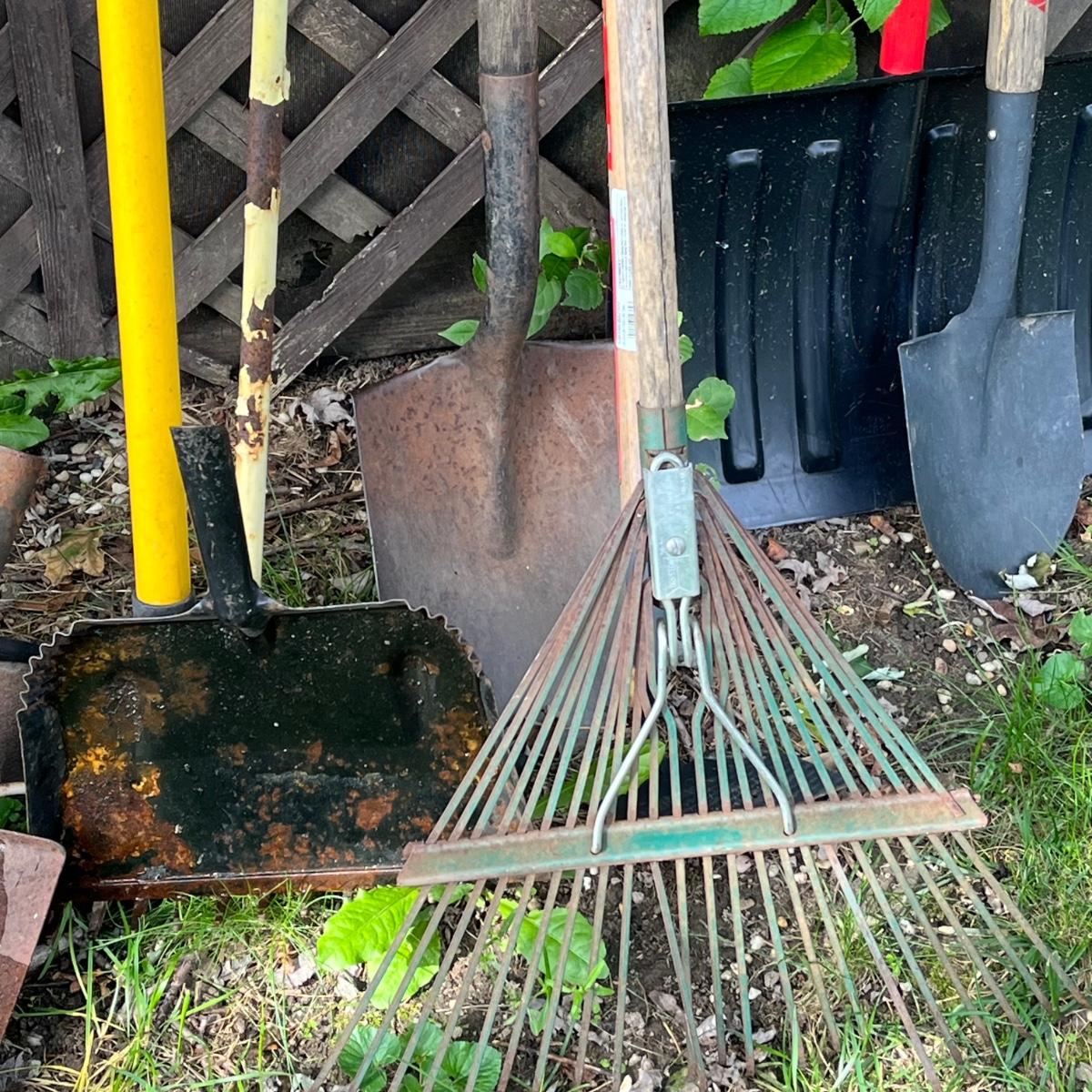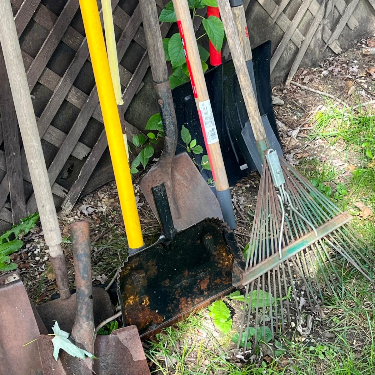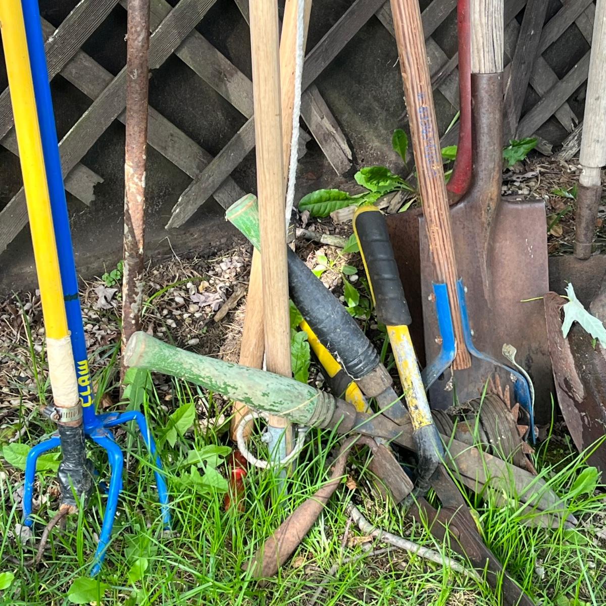 LOT 69S: Garden / Yard Tools, Shovels, Rakes, Pole Saw