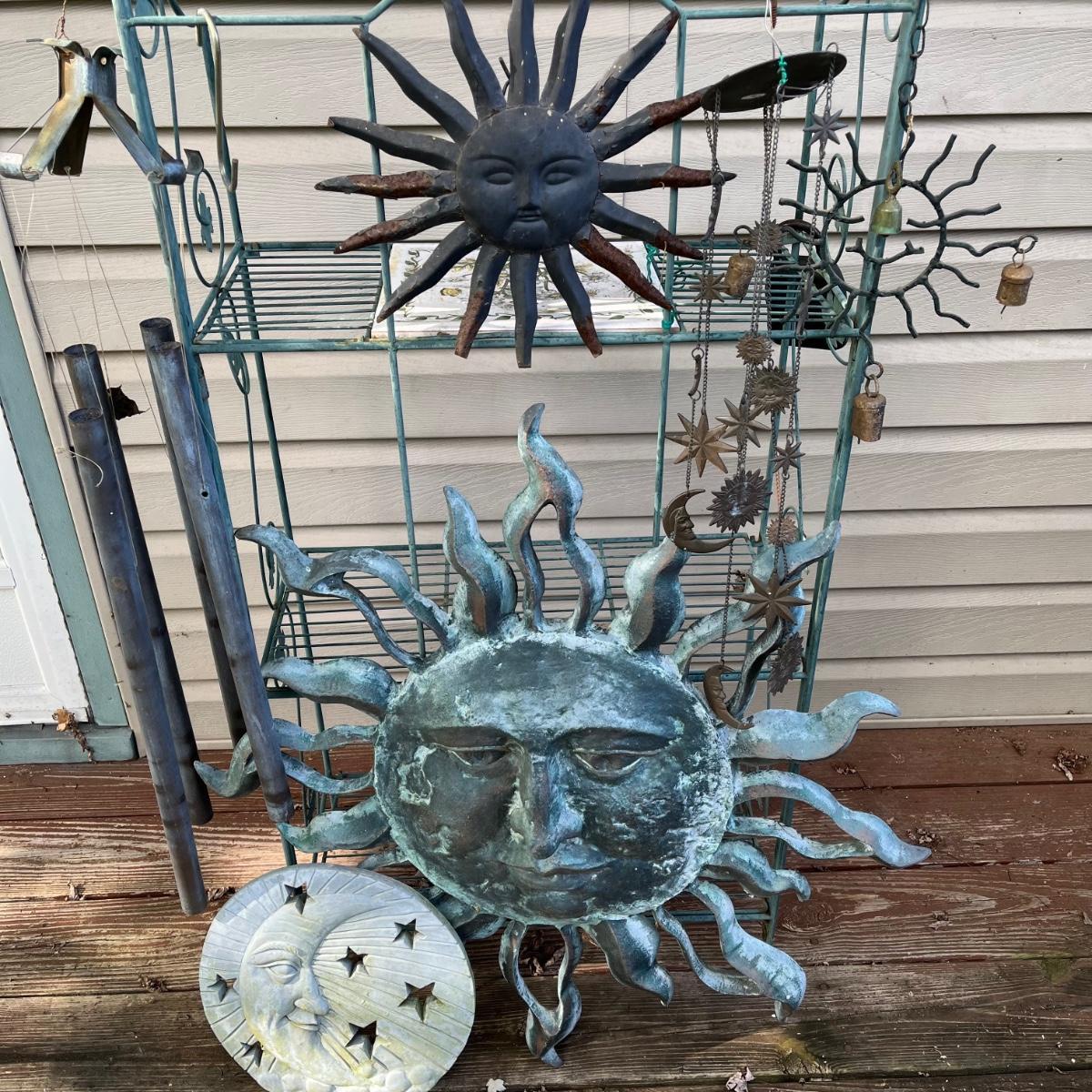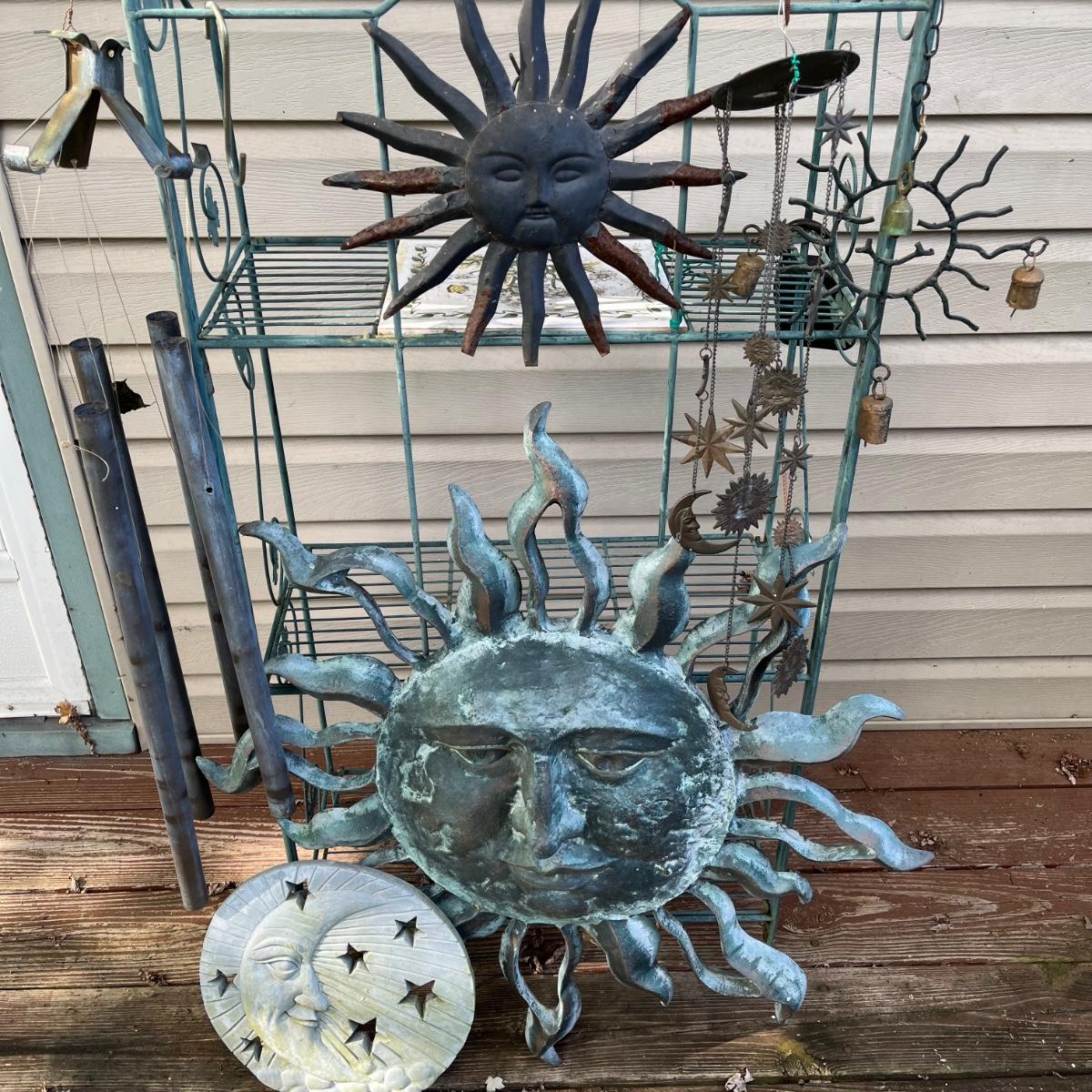 LOT 71P: Sun, Moon and Stars Outdoor Decor - Copper Windchimes