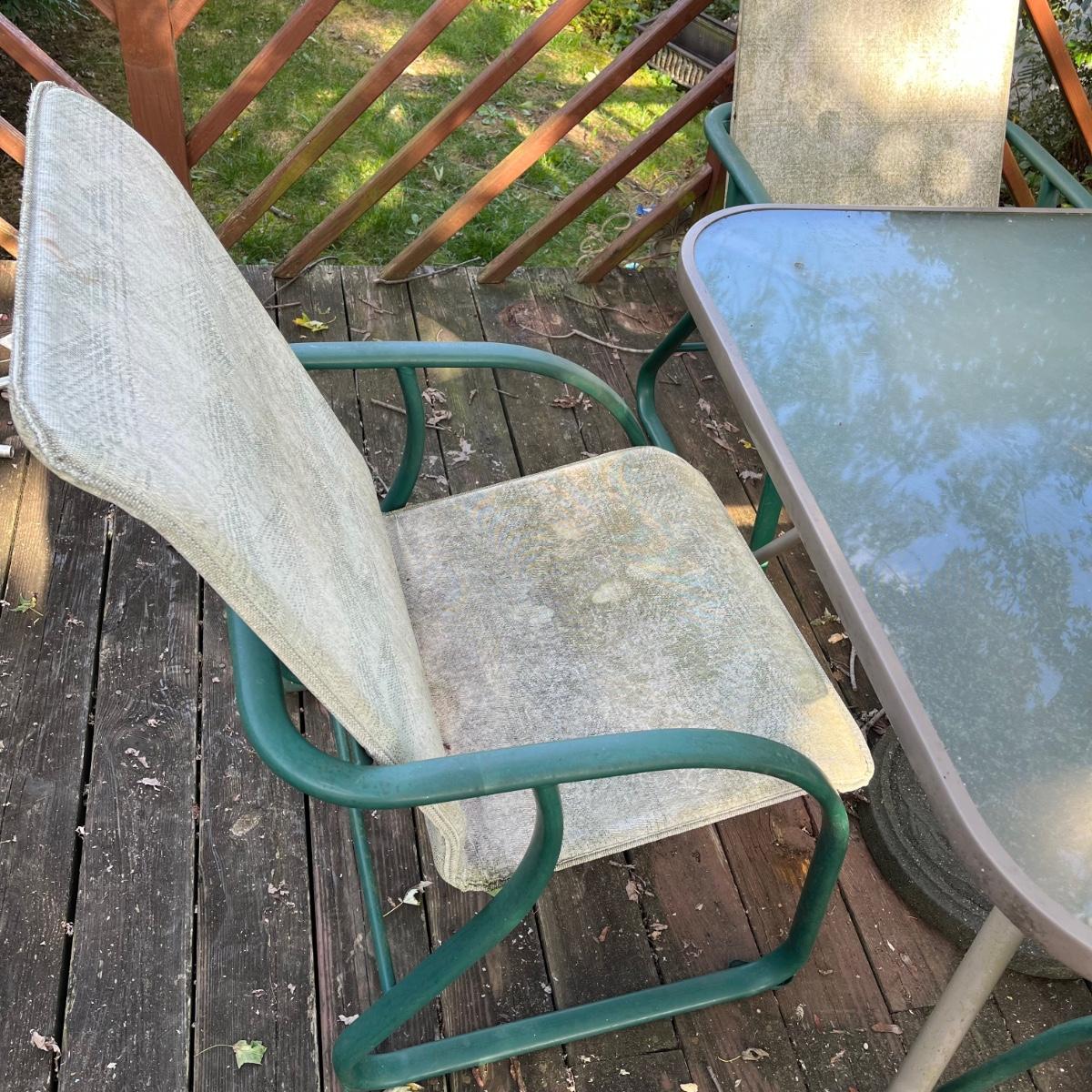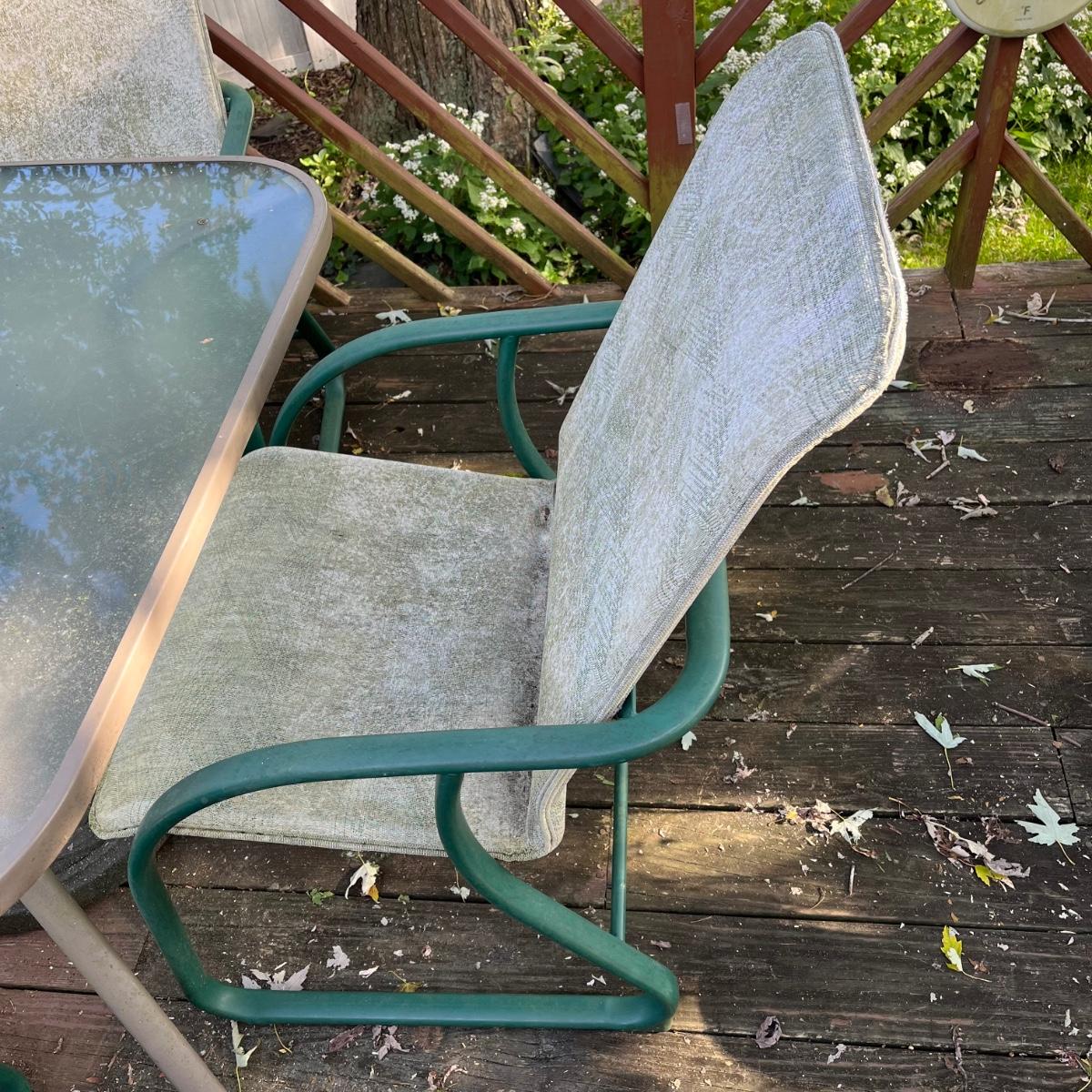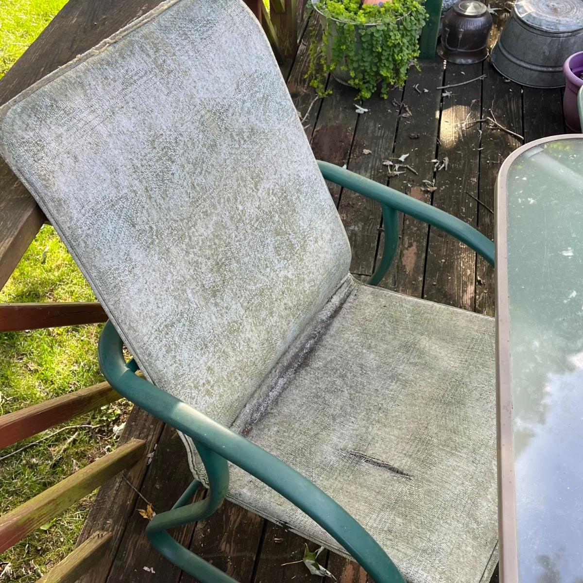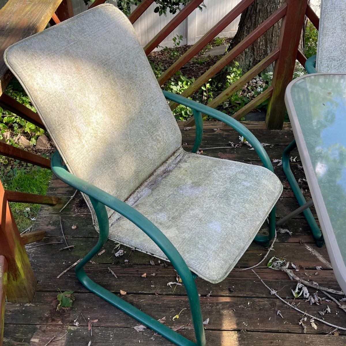 Chair in need of good cleaning and/or repair.