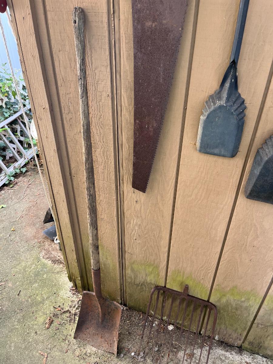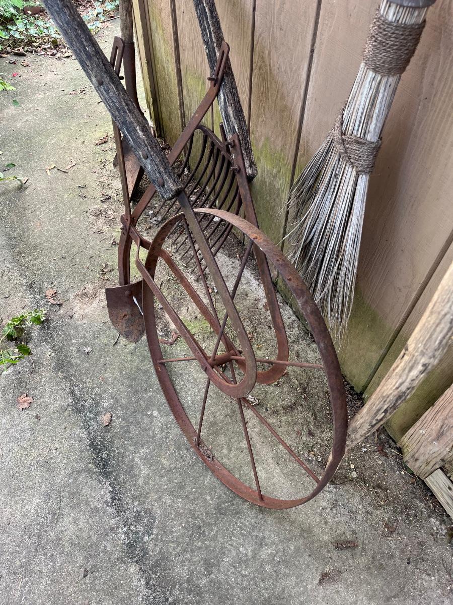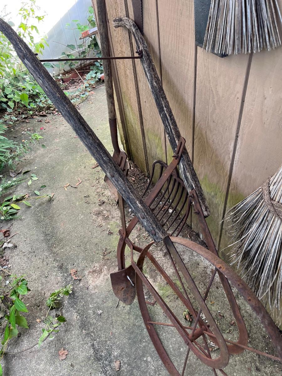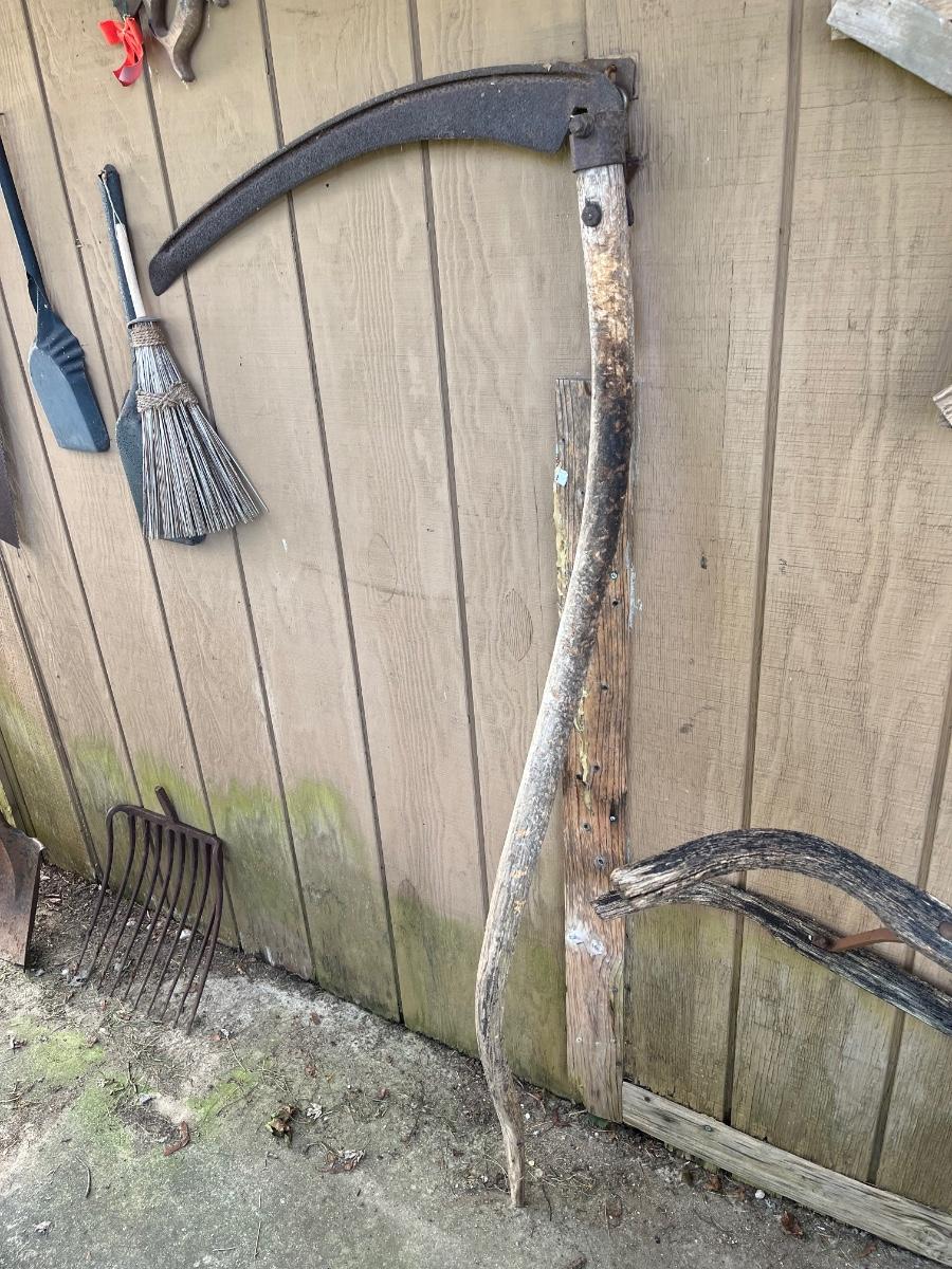 LOT 76S: Vintage / Antique Farmhouse Decor Tools Decorative Pieces - Scythe, Garden Tiller