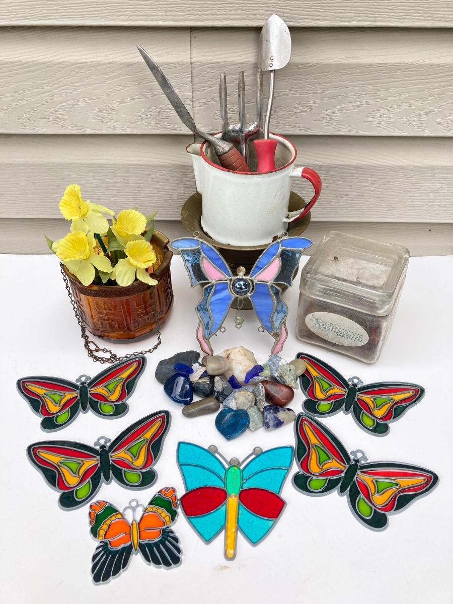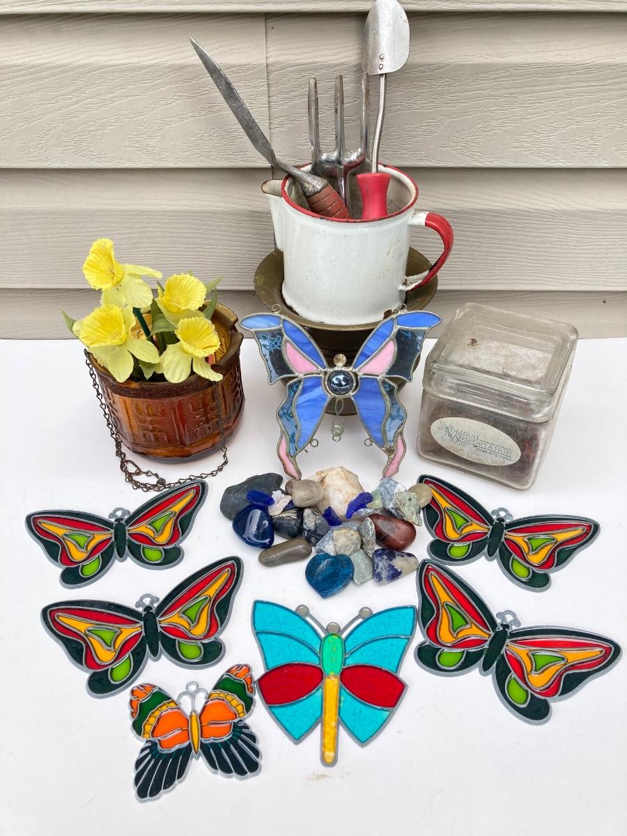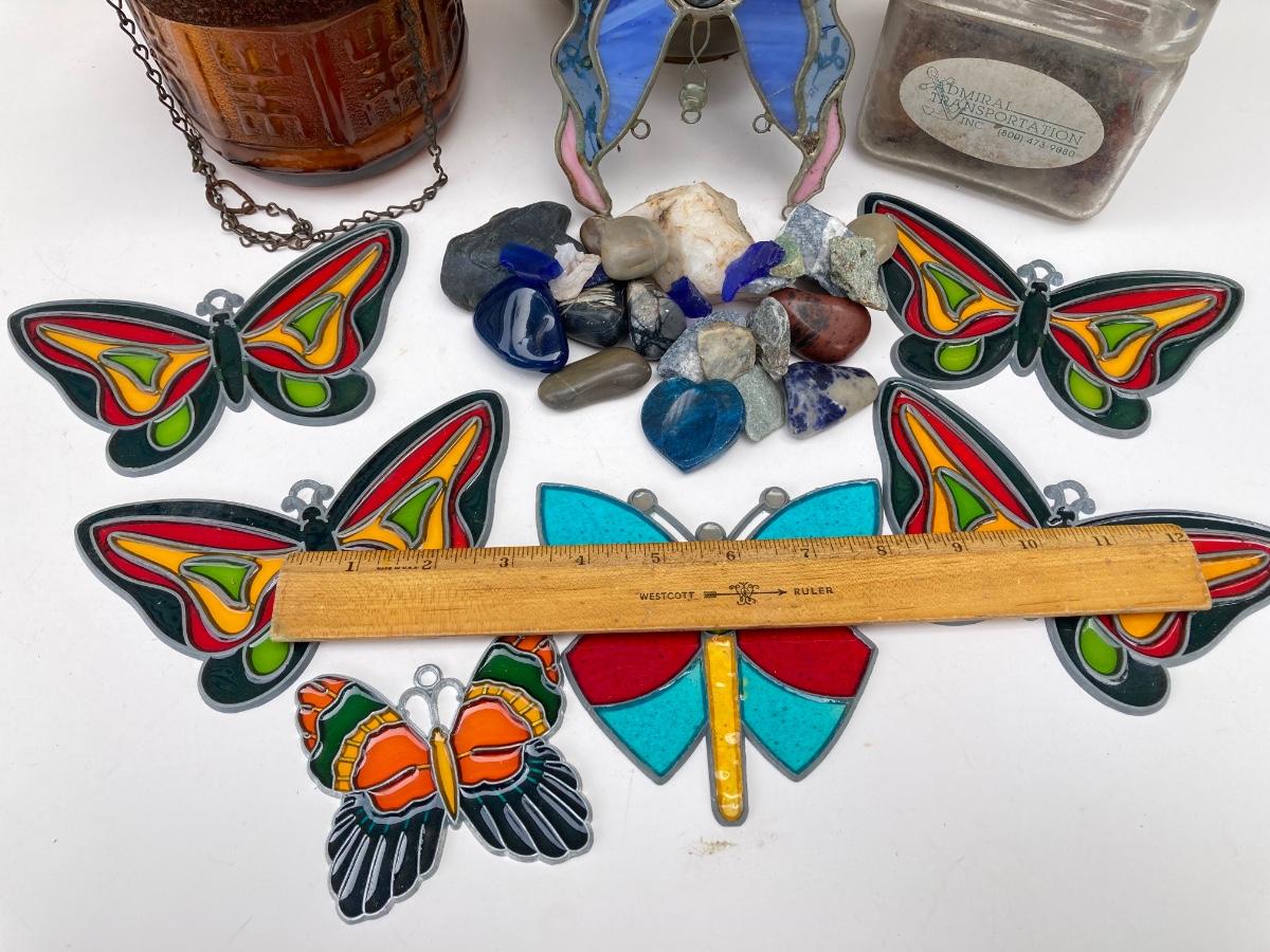 LOT 83S: Vintage Garden Collection - Stained Glass / Plastic Butterflies, Stones and More