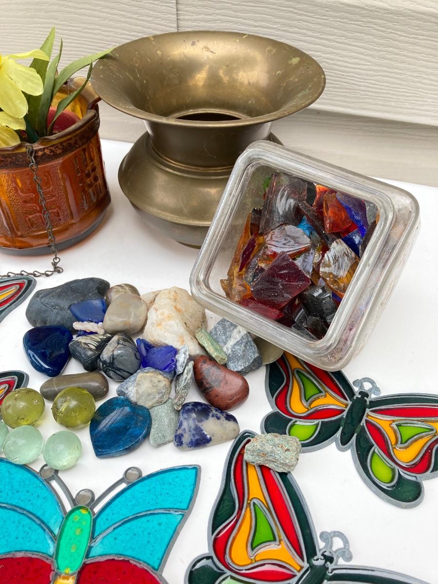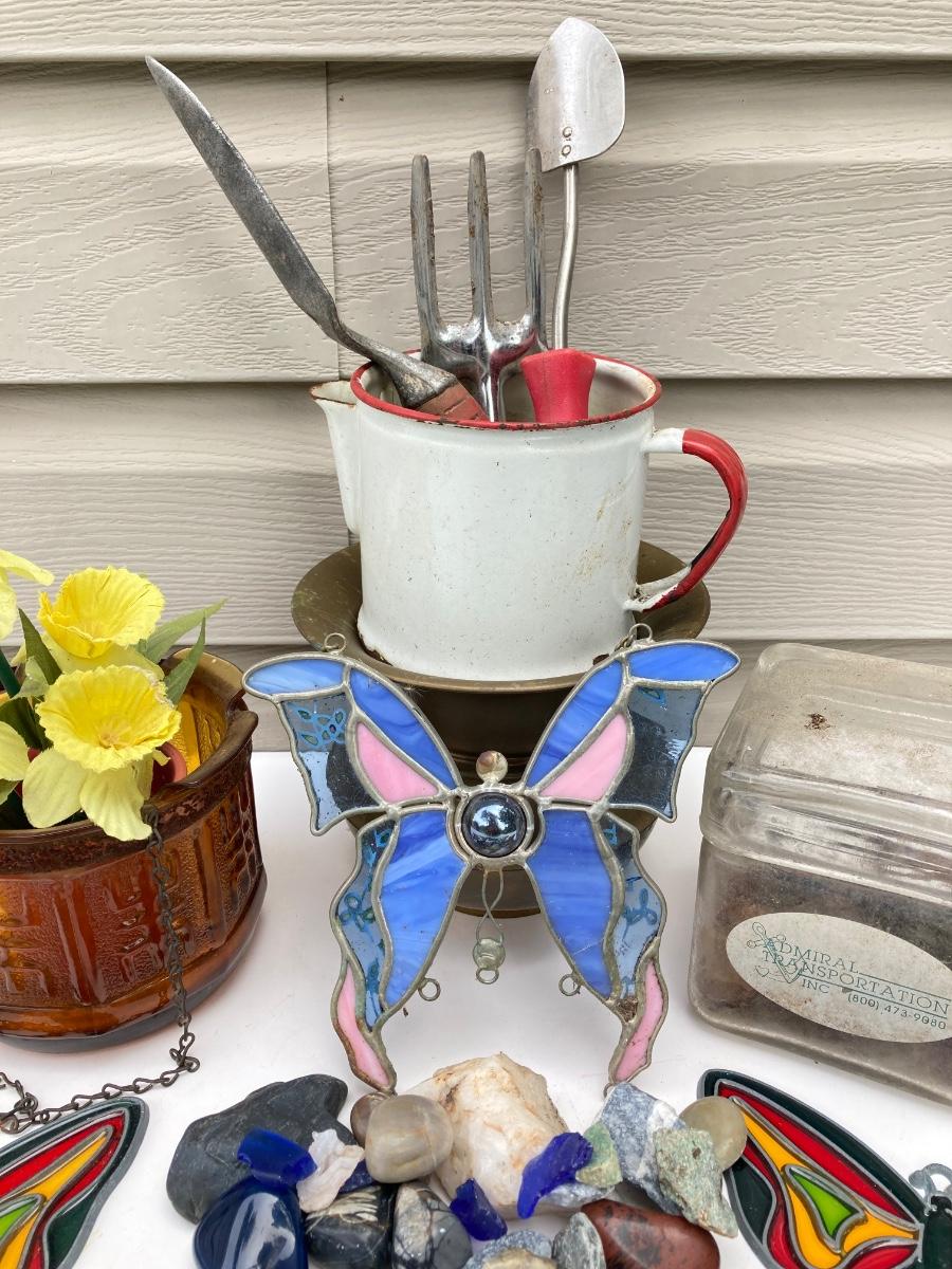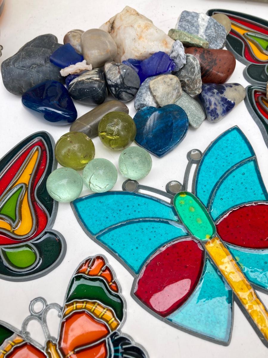 LOT 83S: Vintage Garden Collection - Stained Glass / Plastic Butterflies, Stones and More