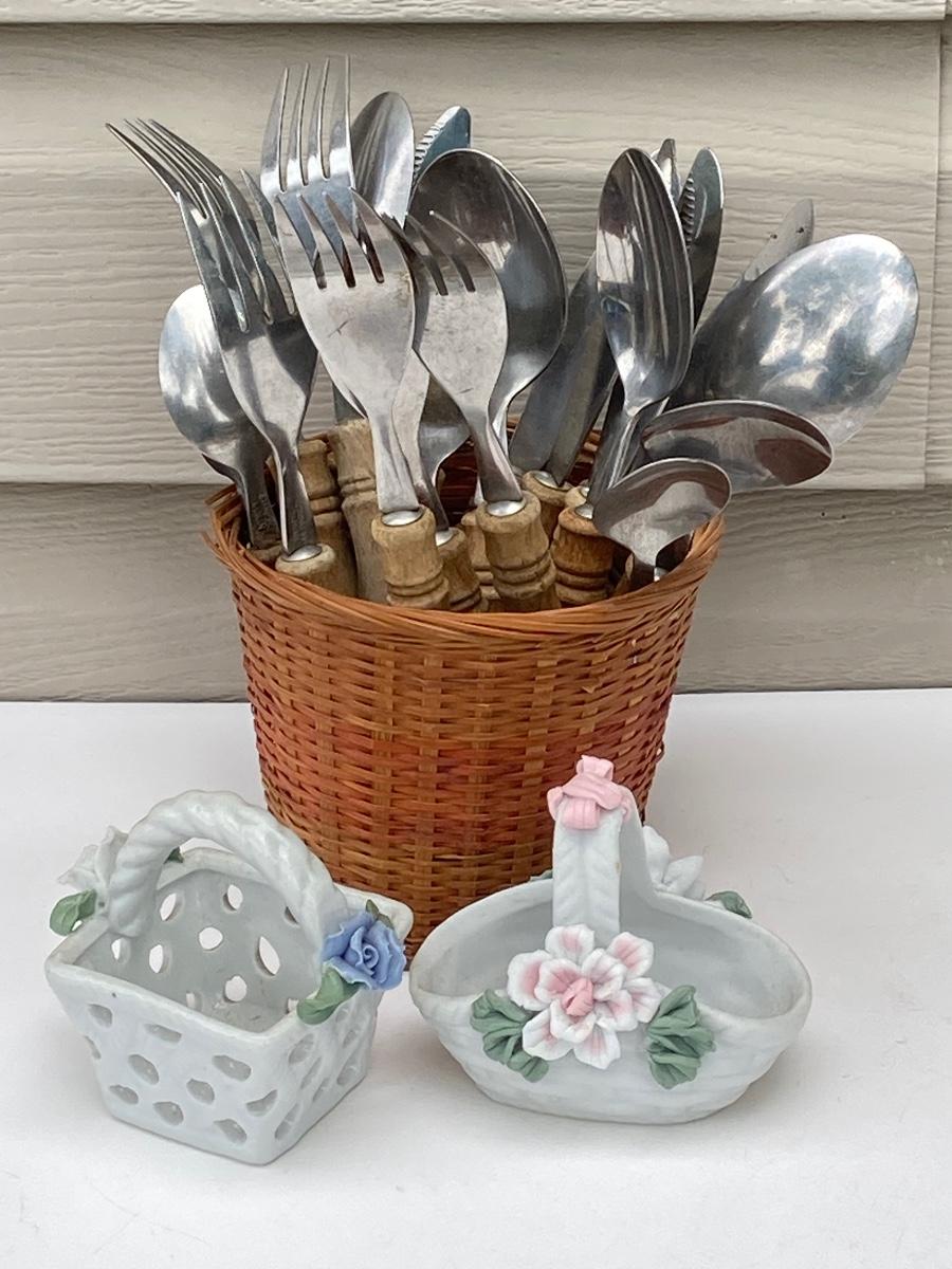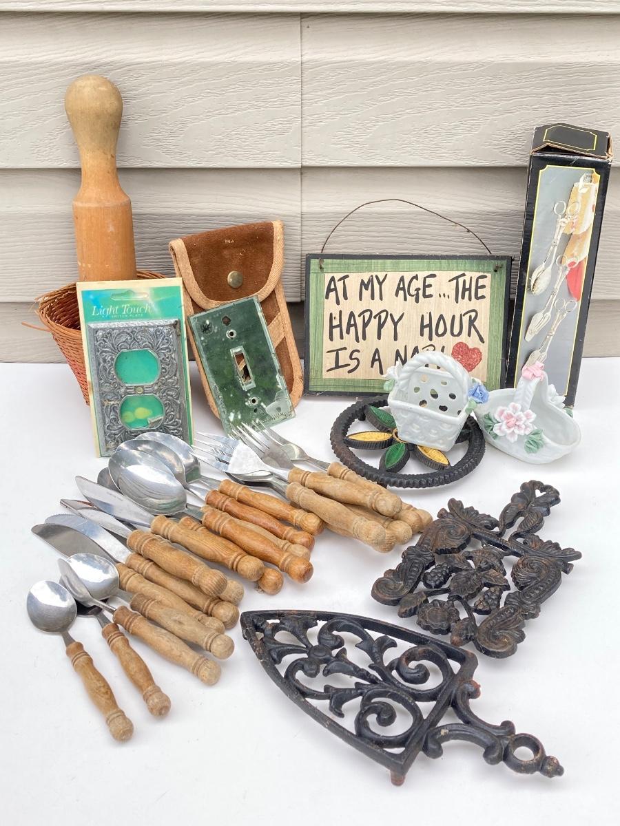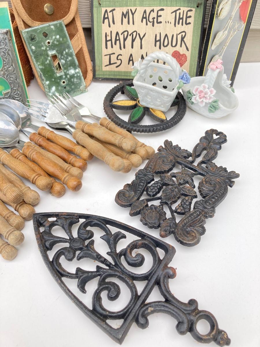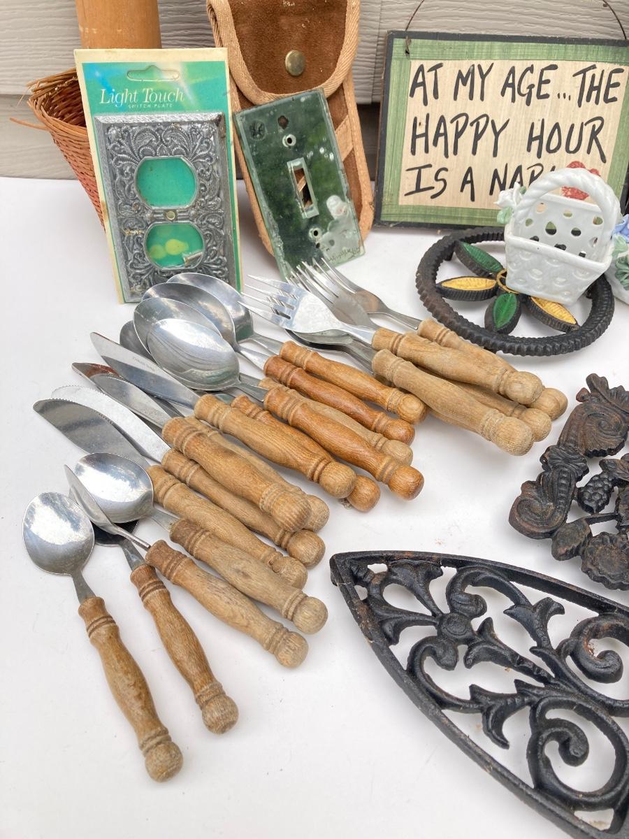 LOT 84S: Vintage Wooden Flatware, Trivets and More