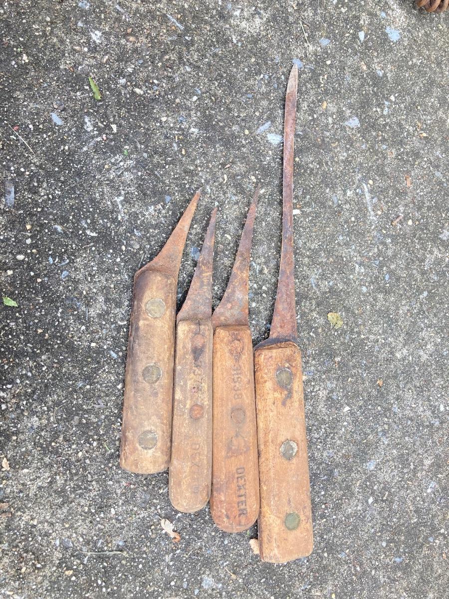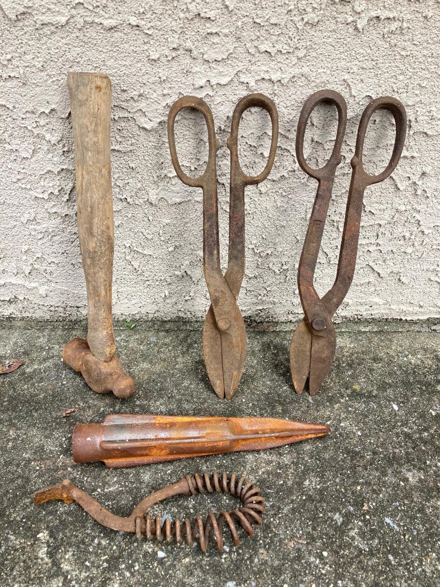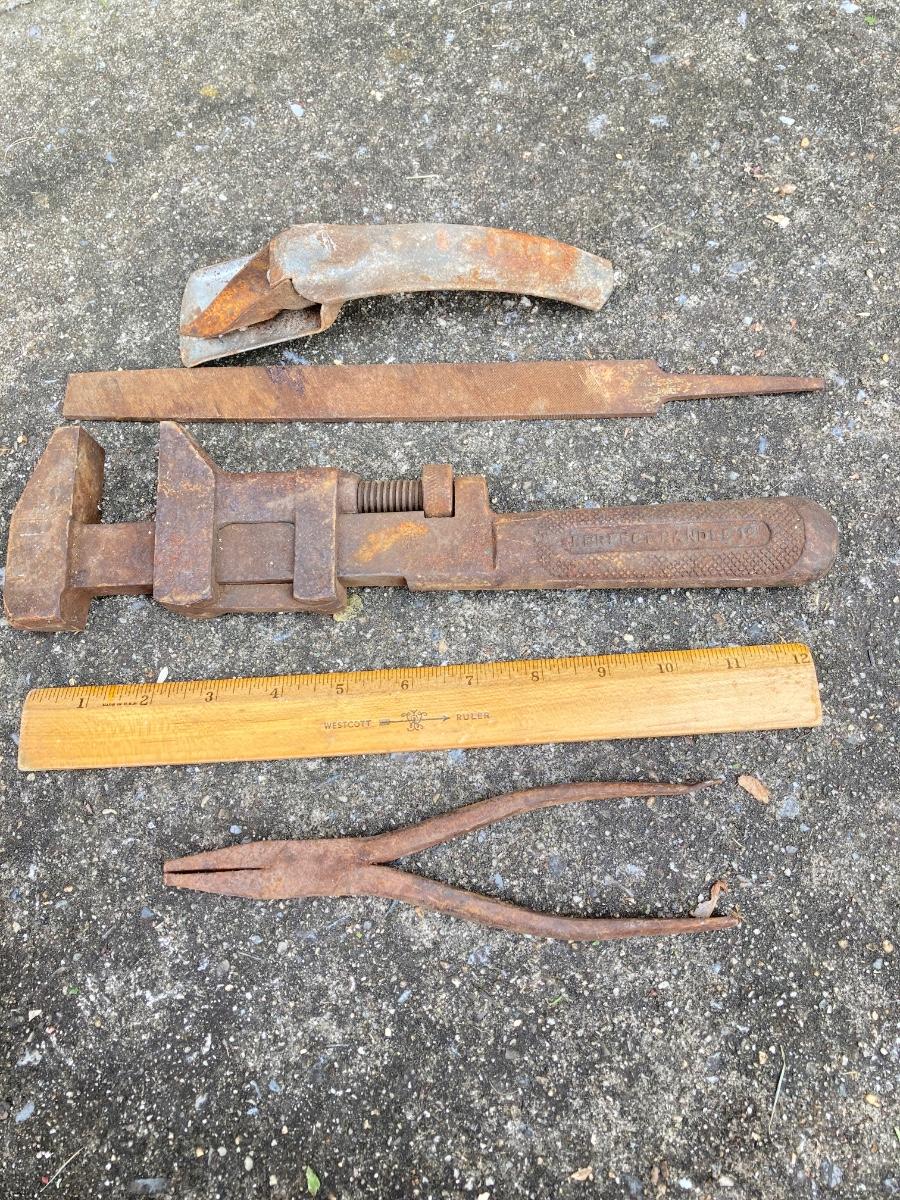 LOT 89S: Crate with Vintage Tools - Cutters, Knives, Perfect Handle Wrench and More