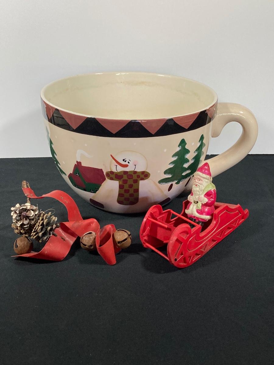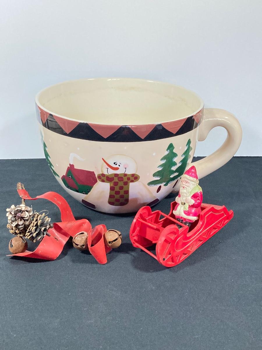 LOT 112L: Large Christmas Decorative Mug and Vintage Decorations
