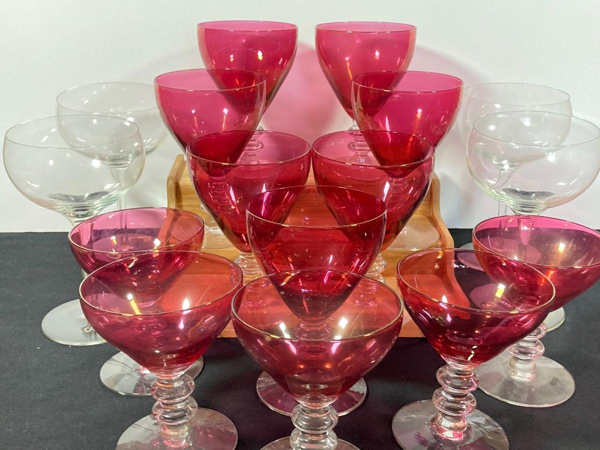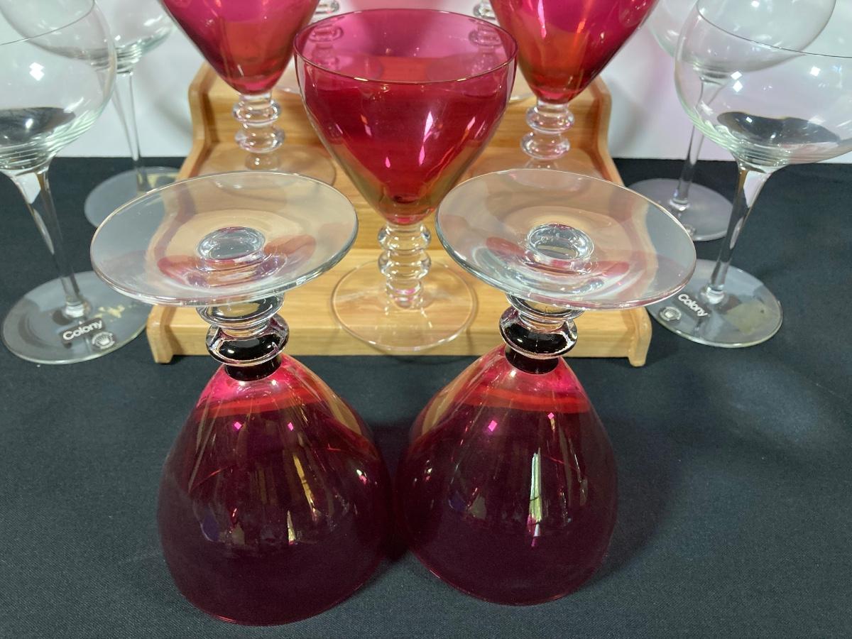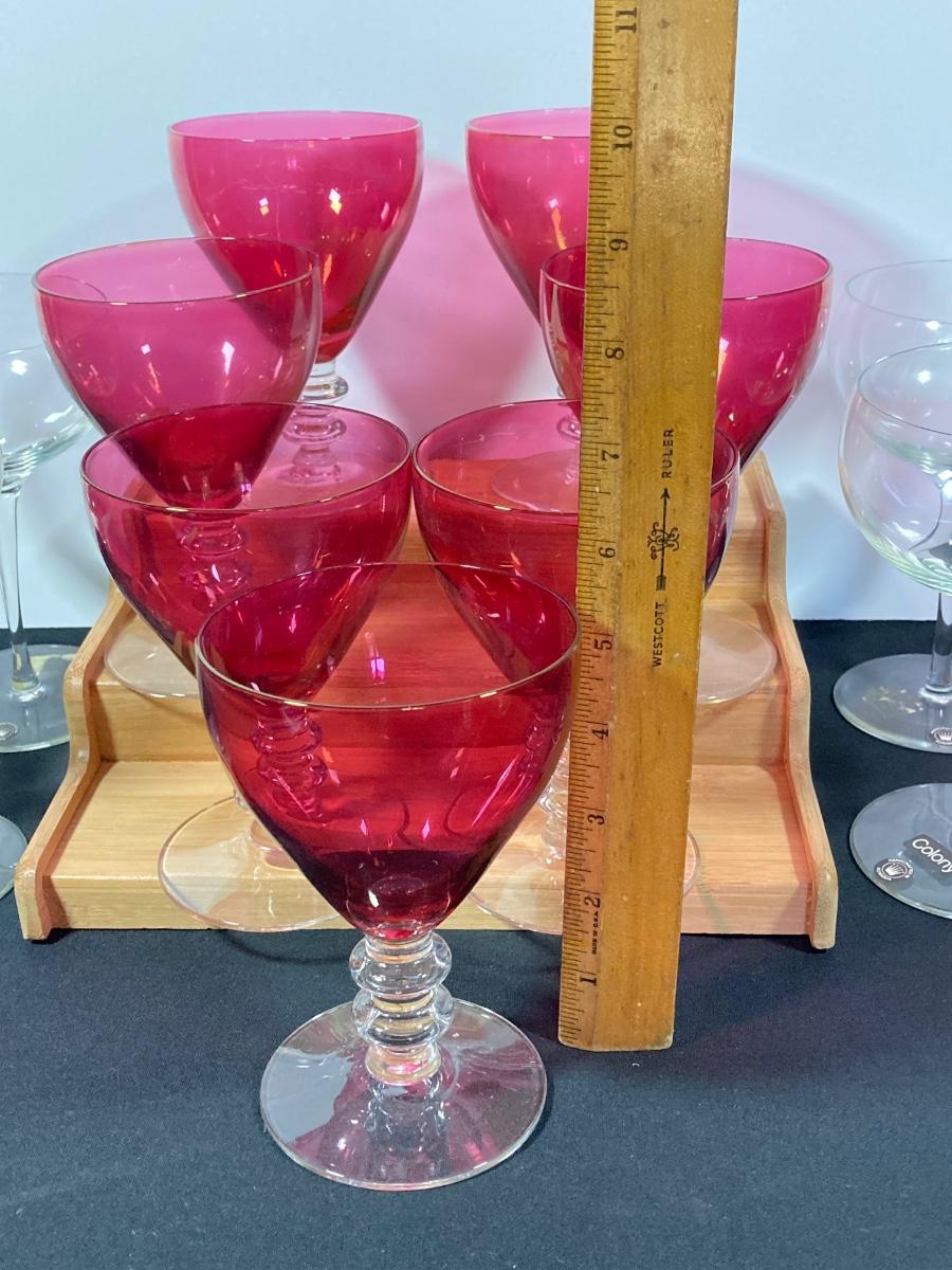 LOT 119L: Red Hand Blown Glass Stemware and More