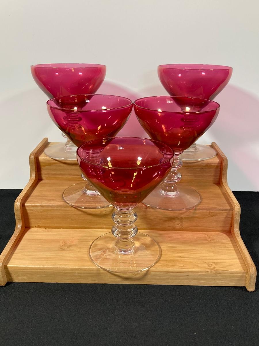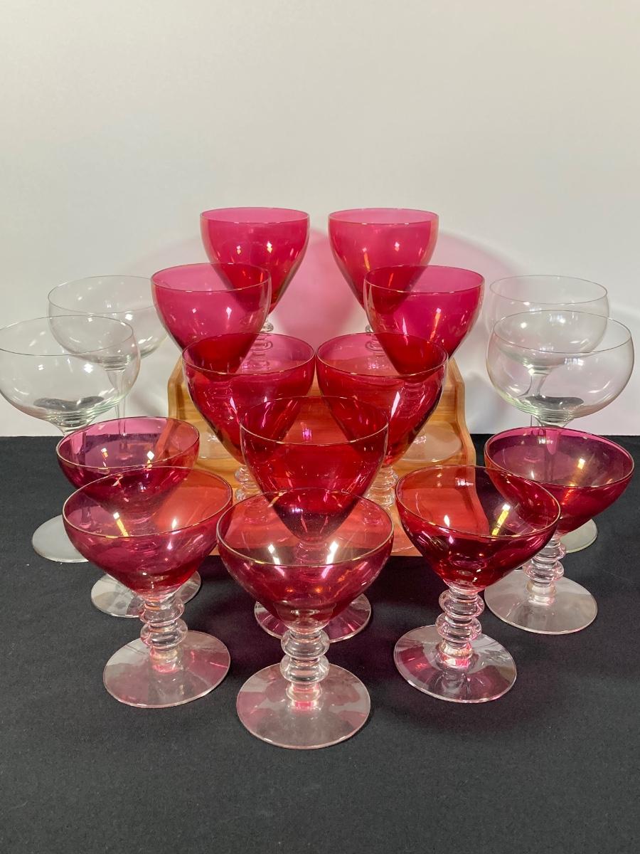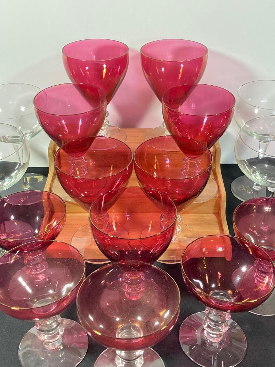 LOT 119L: Red Hand Blown Glass Stemware and More