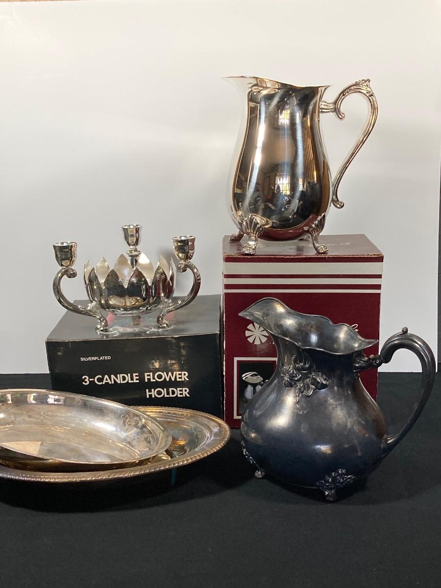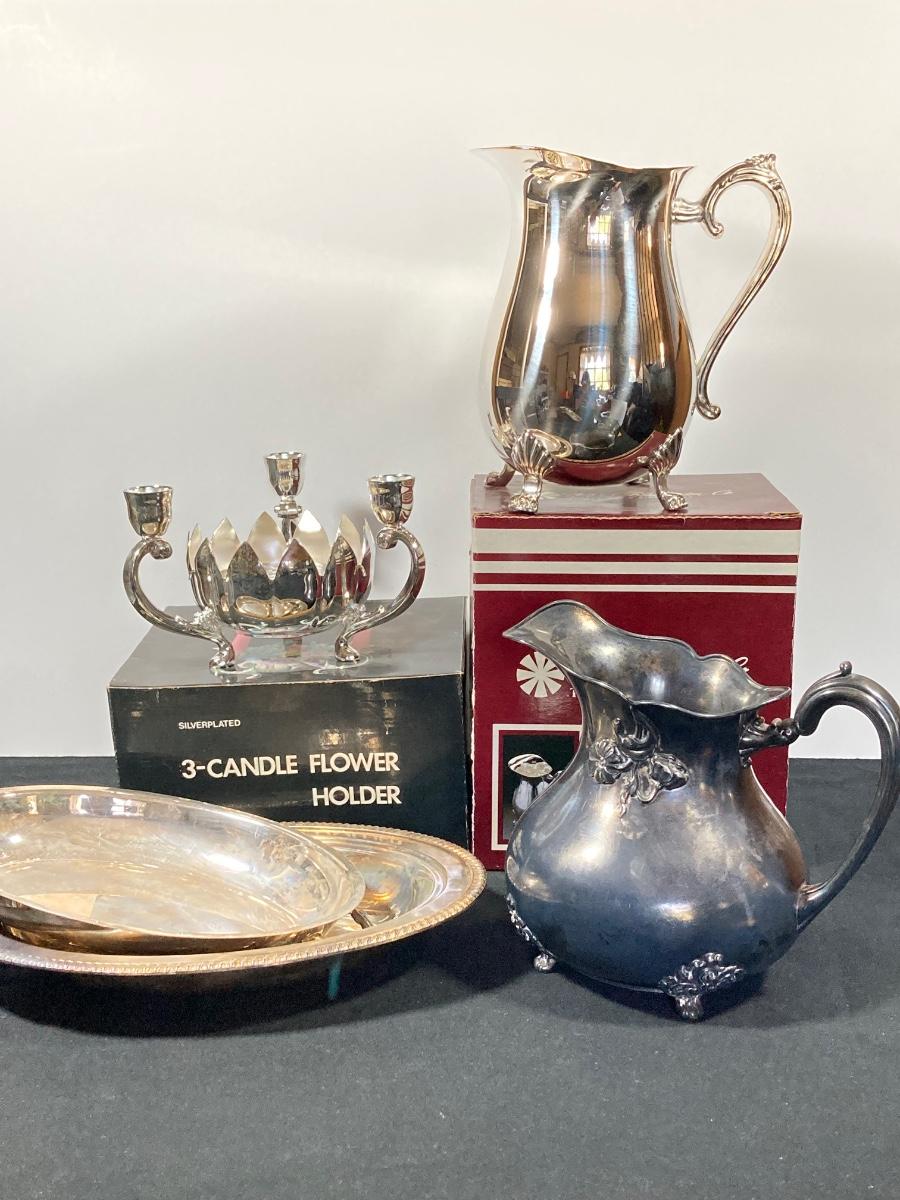 LOT 125L: Silver Plated Collection - Pitchers, Candle Holder and More