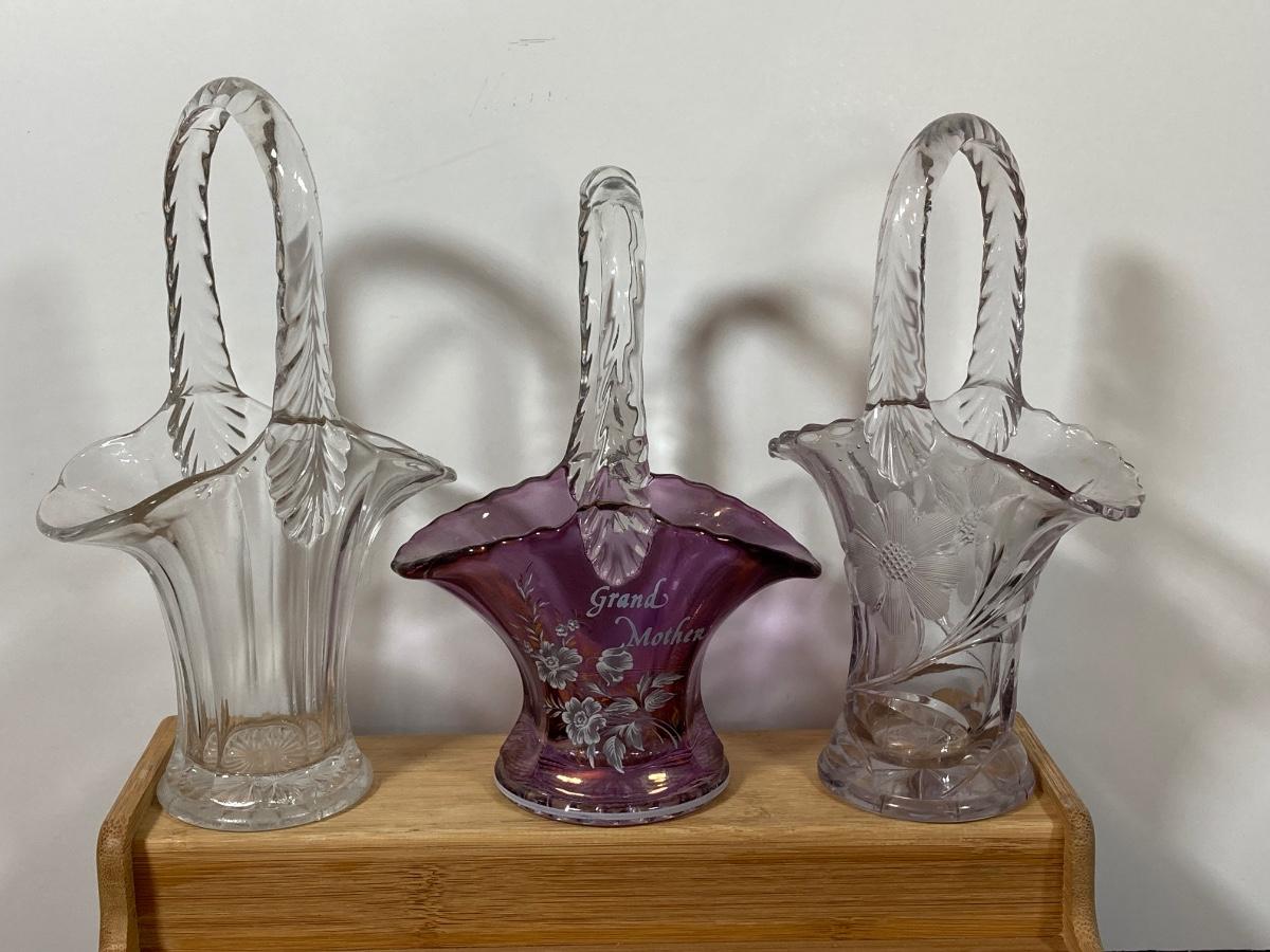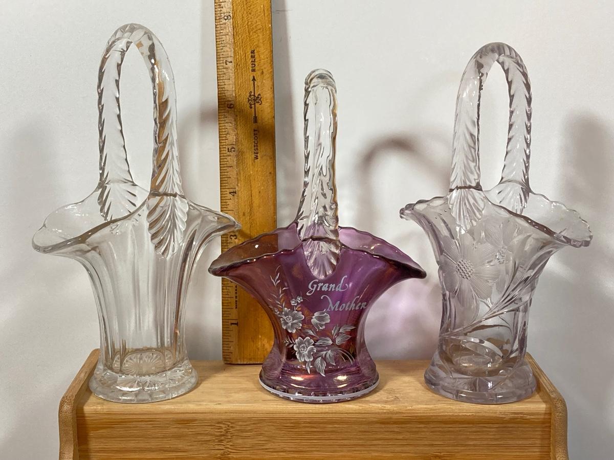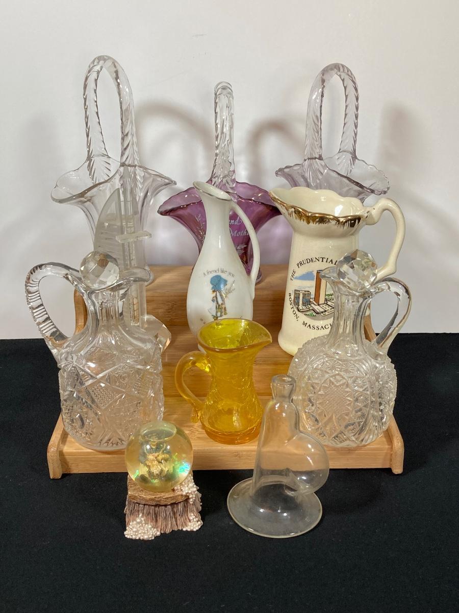 LOT 152D: Glassware Collection - Baskets, Small Sized Decanters and Vases and More