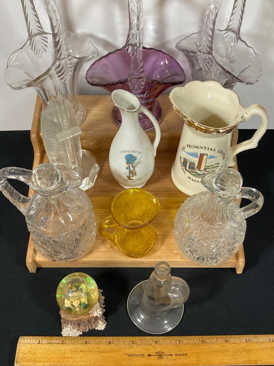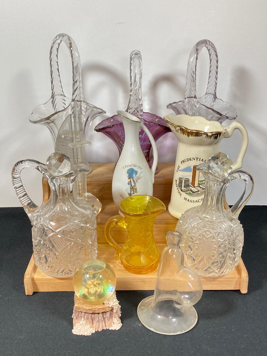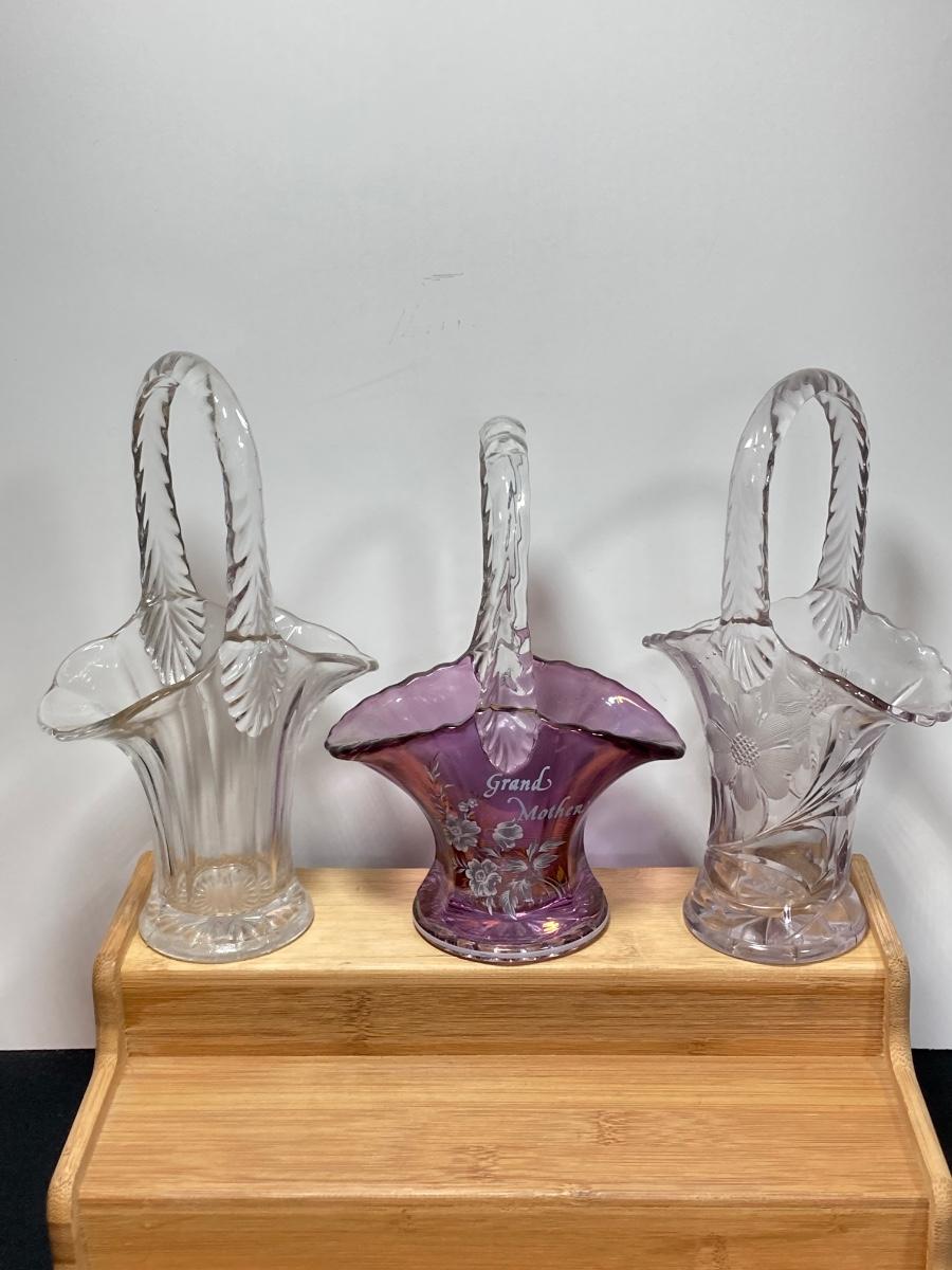 LOT 152D: Glassware Collection - Baskets, Small Sized Decanters and Vases and More