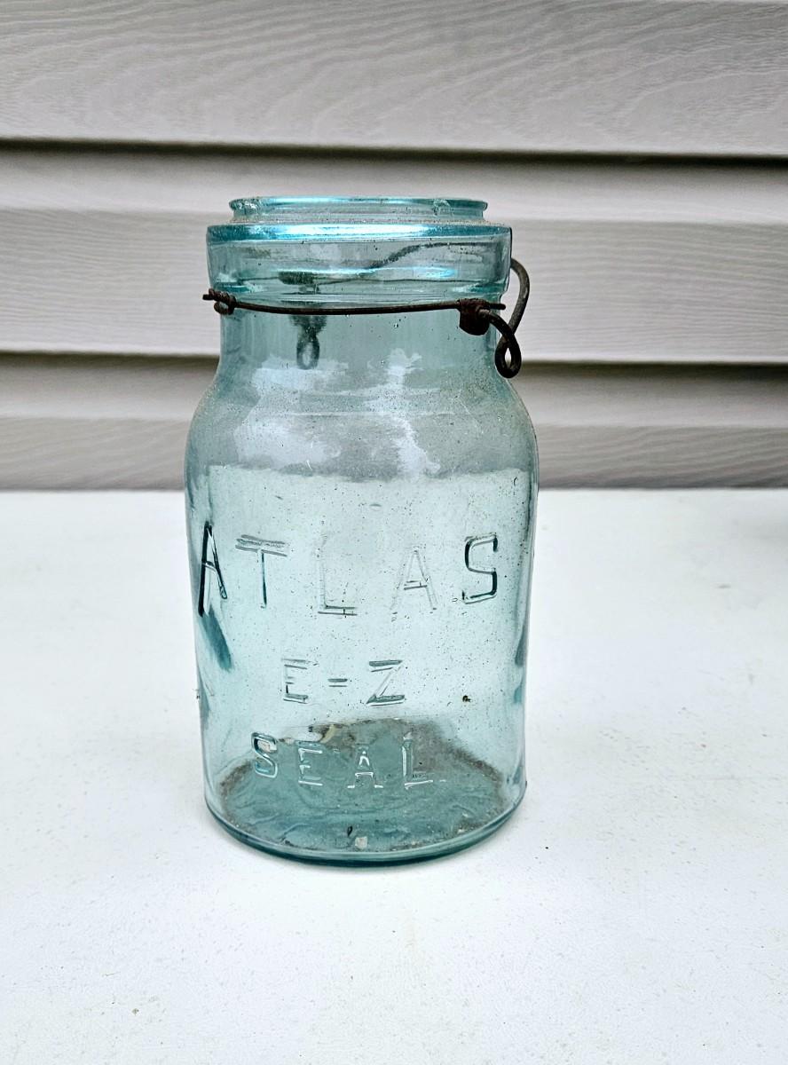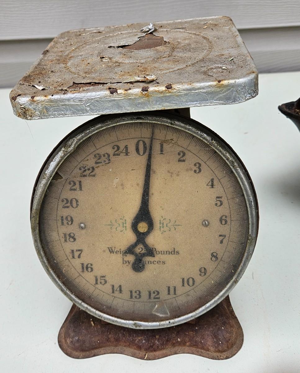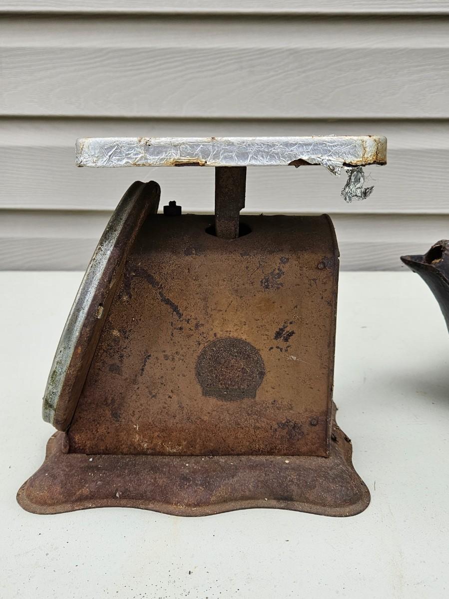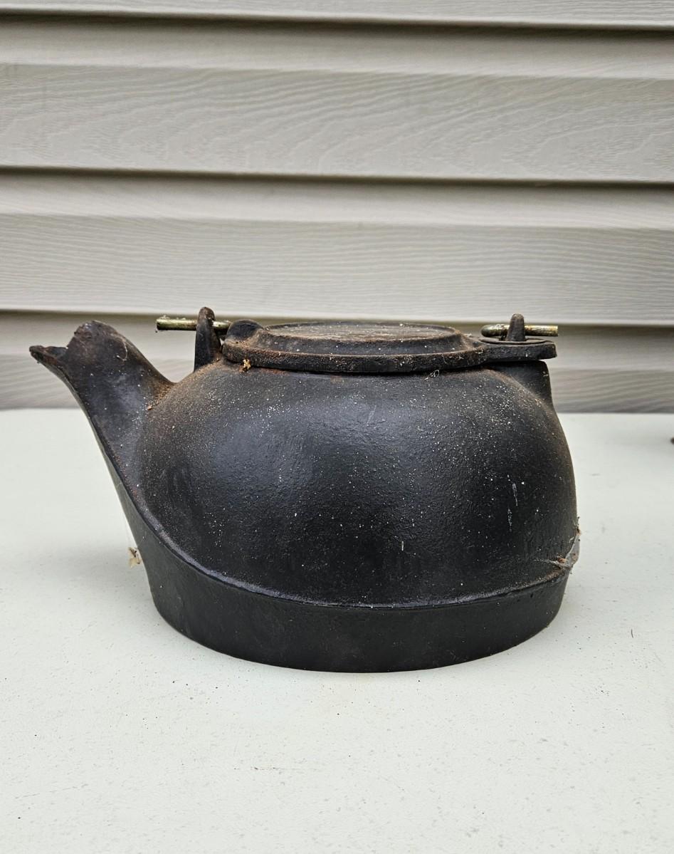 LOT 163S: Collection of Antiques - Cast Iron Kettle, Atlas Mason Jar, Scale & Iron Stand