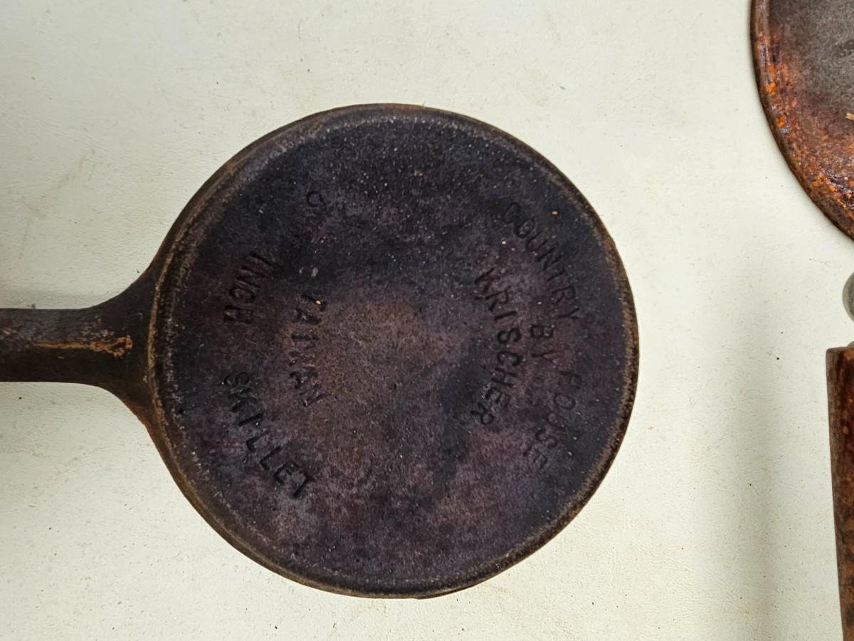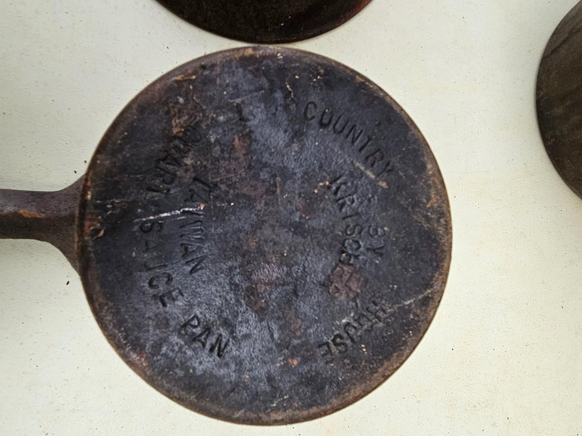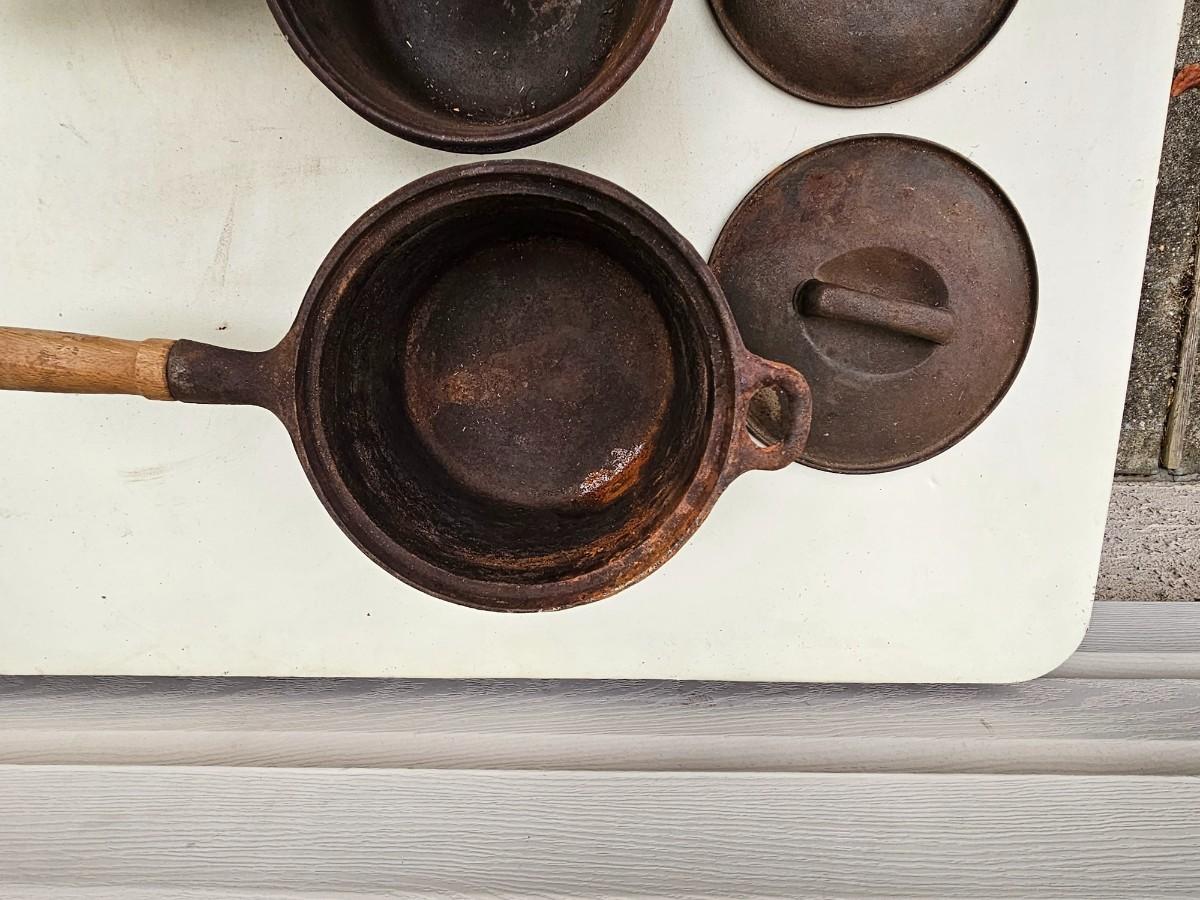 LOT 171S: Set of 4 Wood Handled Cast Iron Pots with Lids