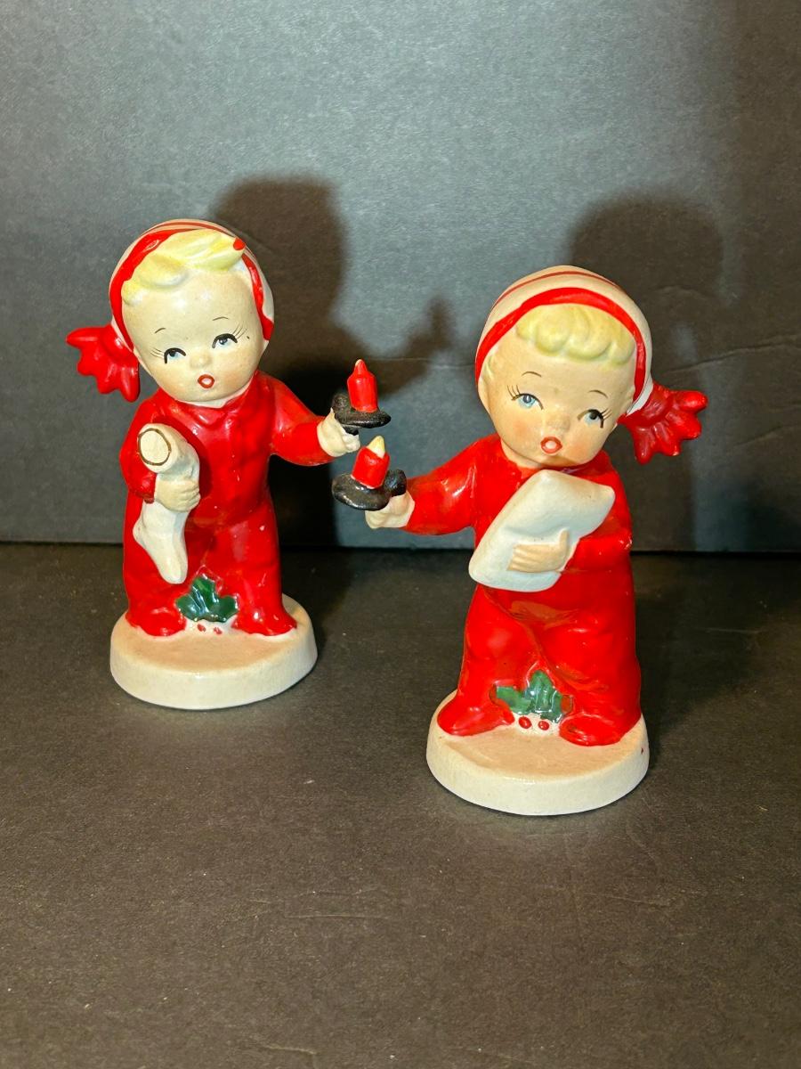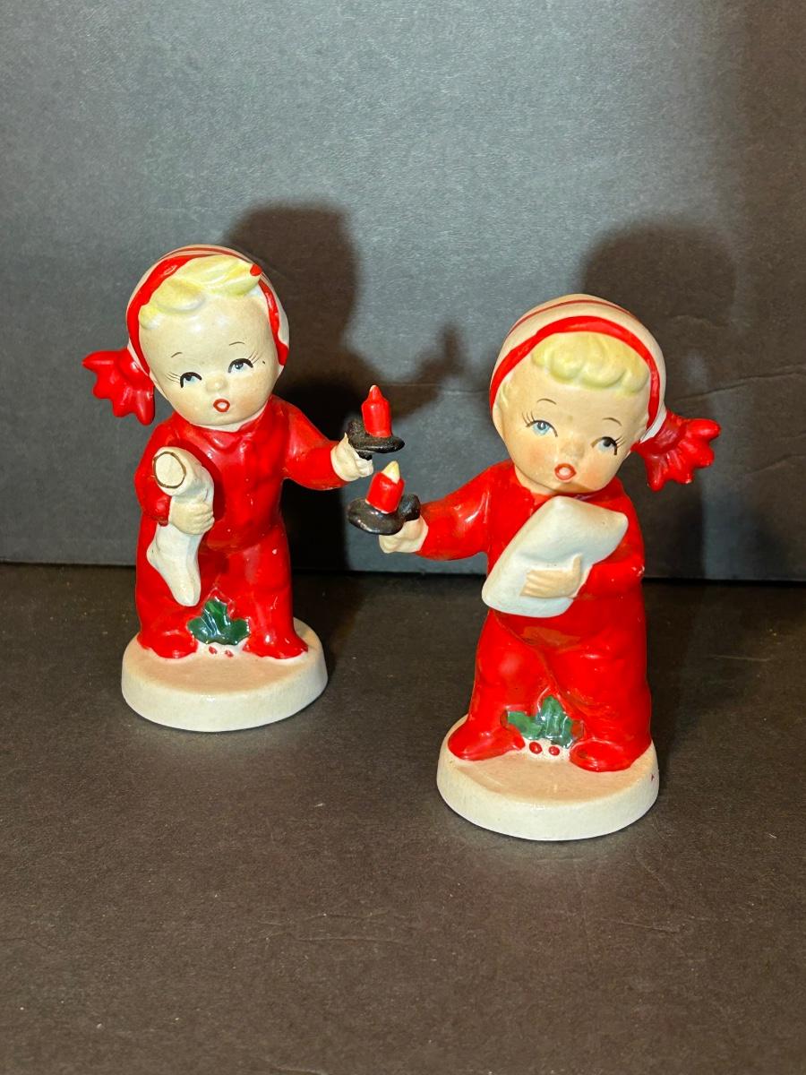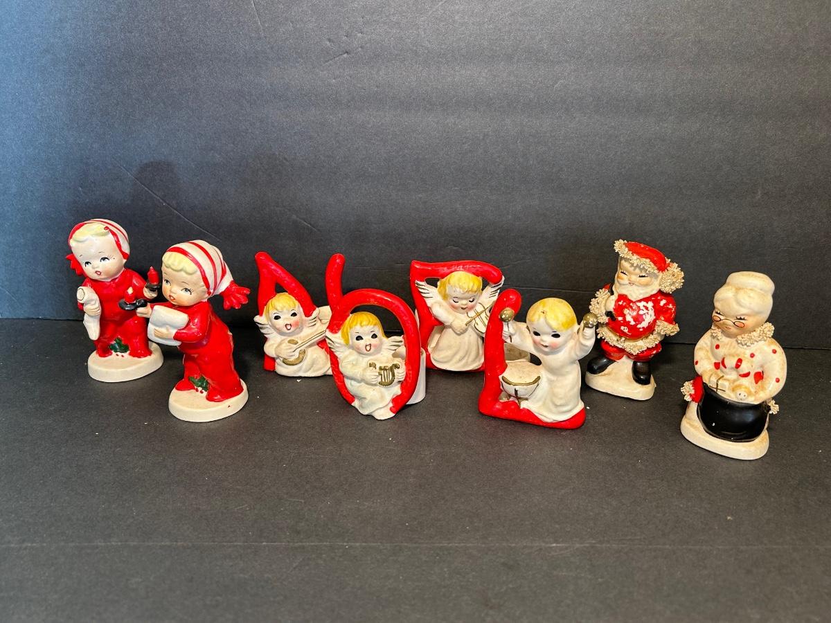 Vintage angels holding letters to spell NOEL, Napco Mr. &Mrs Clause salt and pepper shakers, Christmas children salt and pepper shakers by Napco.