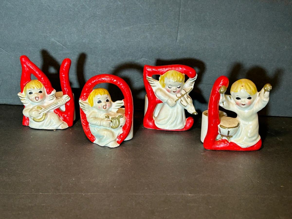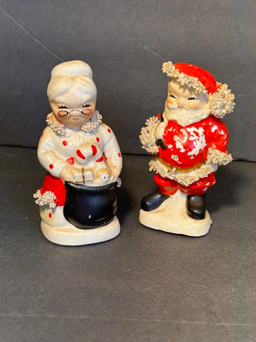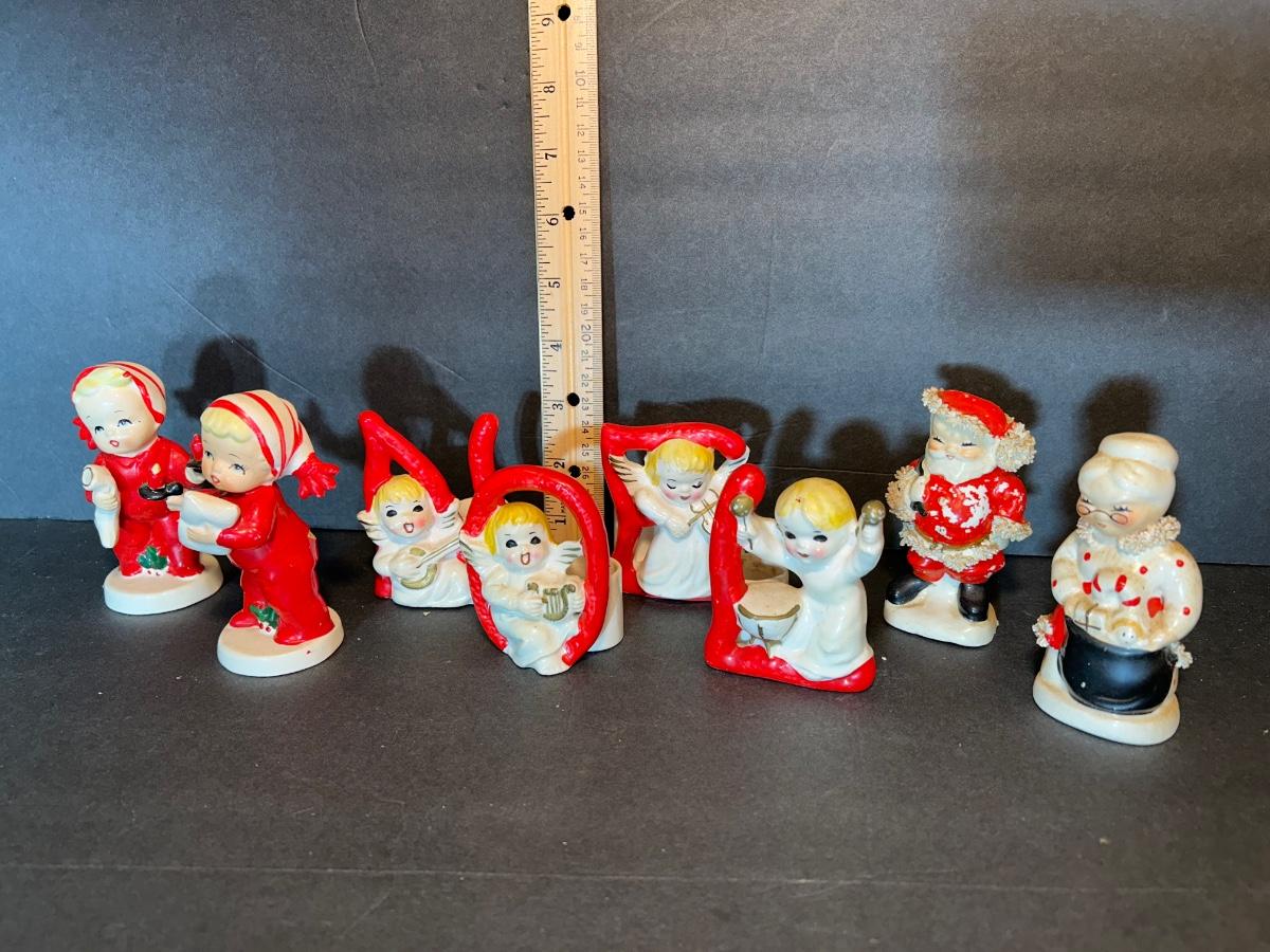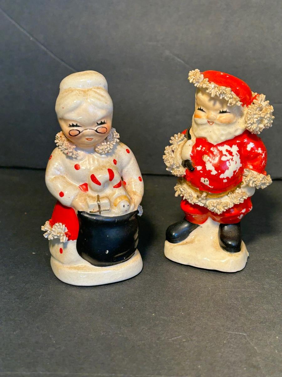 Vintage angels holding letters to spell NOEL, Napco Mr. &Mrs Clause salt and pepper shakers, Christmas children salt and pepper shakers by Napco.