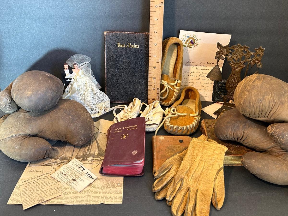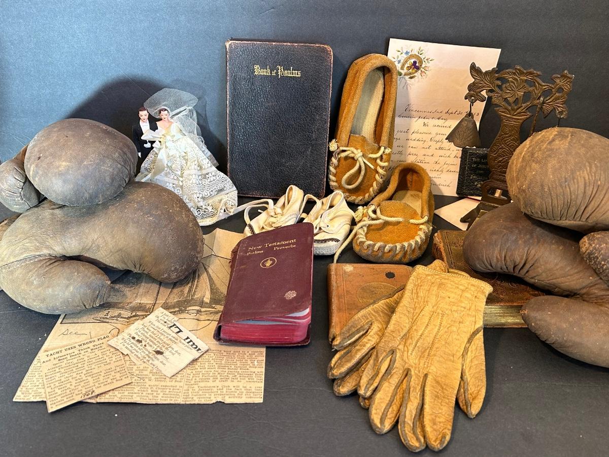 Boxing Gloves, Bibles, gloves, moccasins, booties and more.