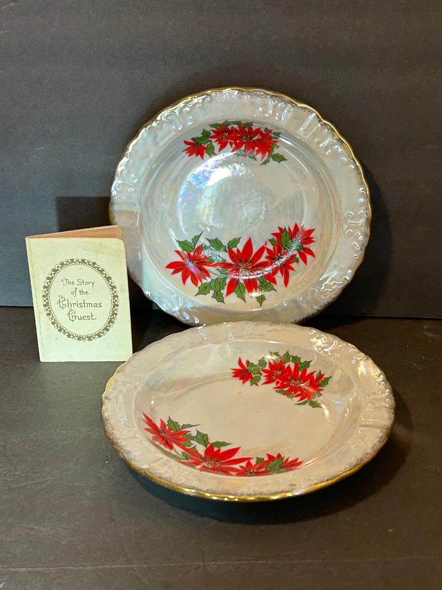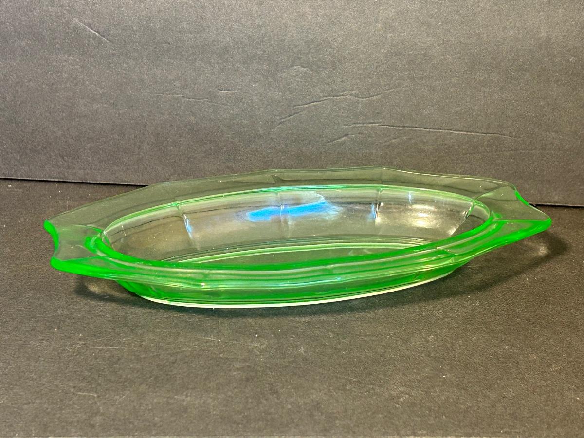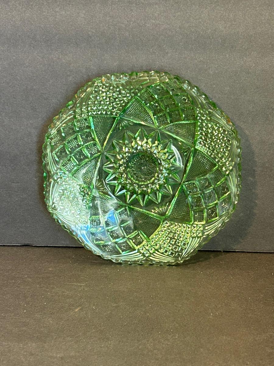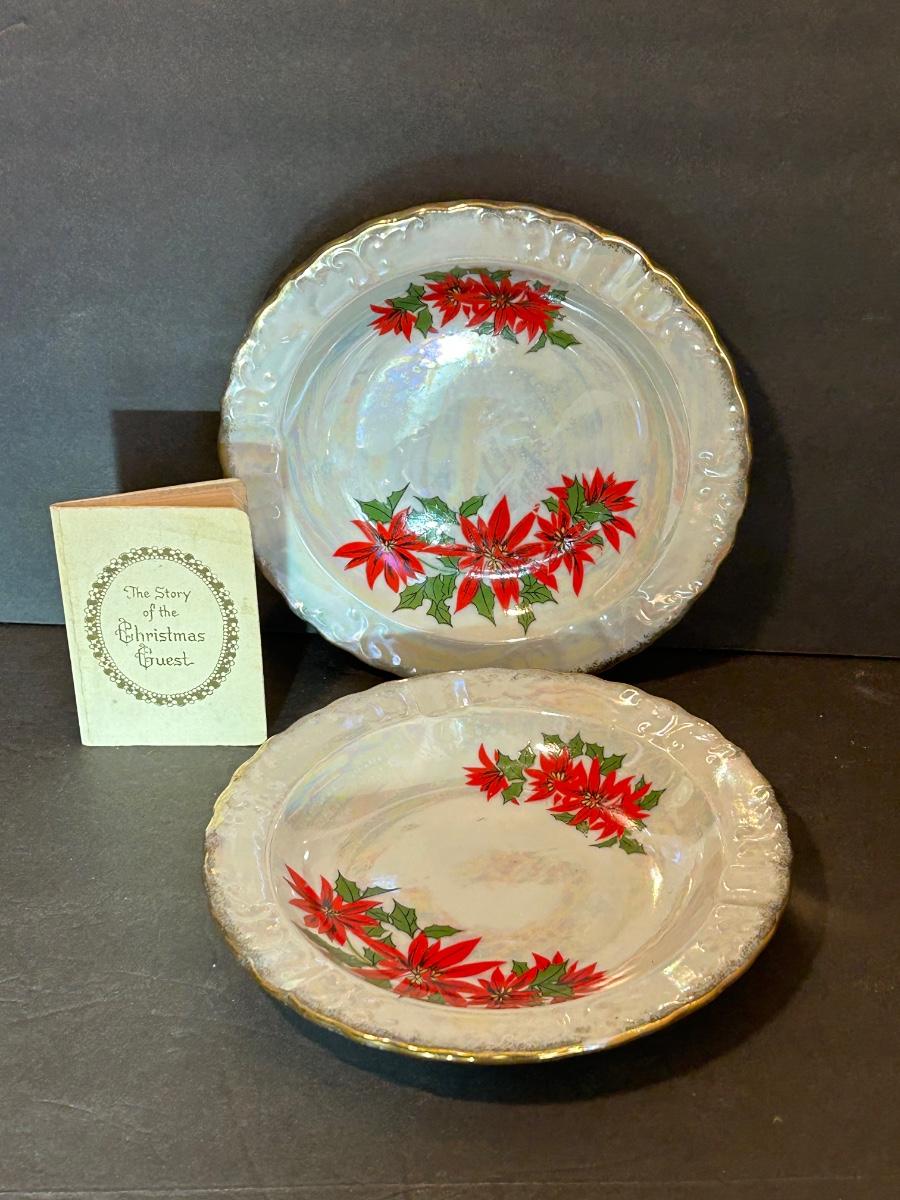Uranium Glass dish, red dishes, green covered dish, vintage poinsettia dishes, vase and more.