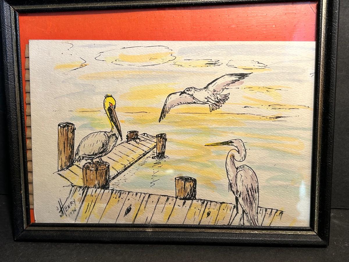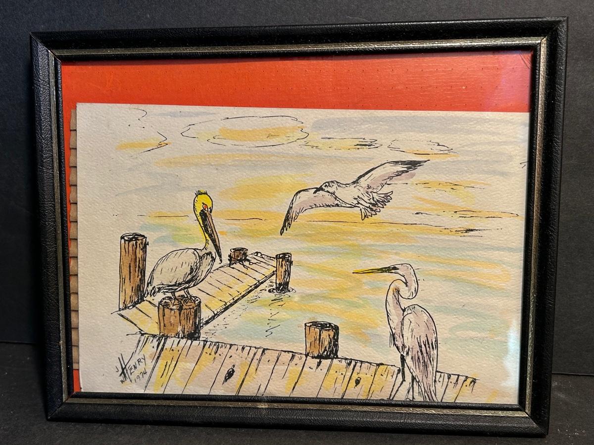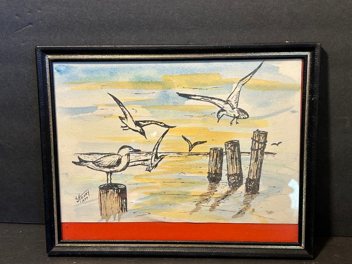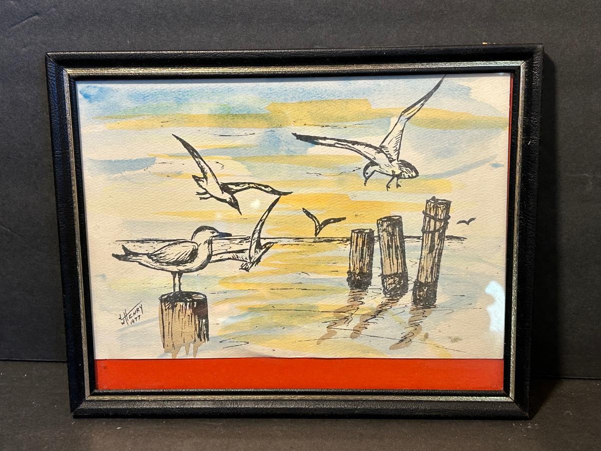 Local artist singed and dated framed prints. Songs Of The Sea Candleholder in original box, starfish and more.