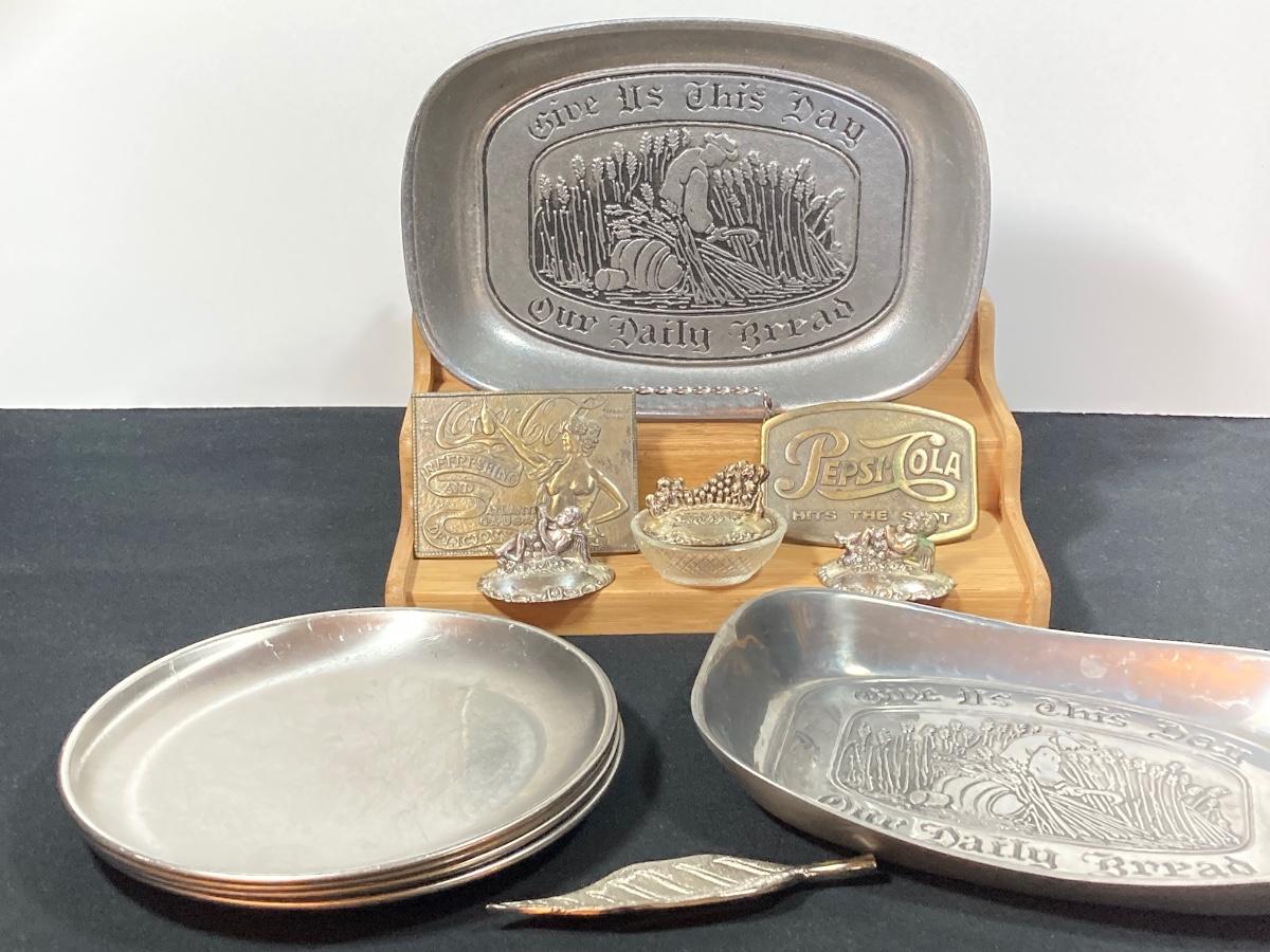 LOT 222D: Pewter, Stainess Steel Collection - Coca Cola and Pepsi Belt Buckles and More