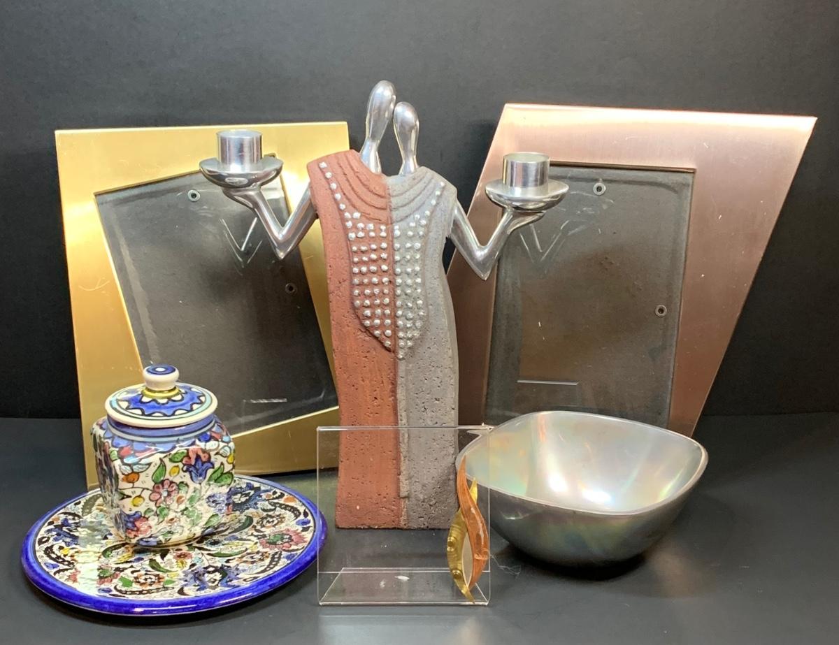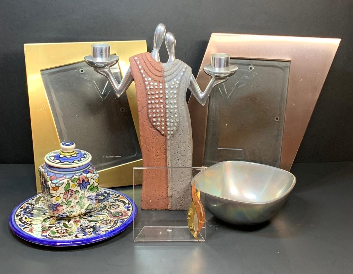 LOT 301R: Copa Judaica Betrothed Candleholder, Steel Square Bowl, Picture Frames & More