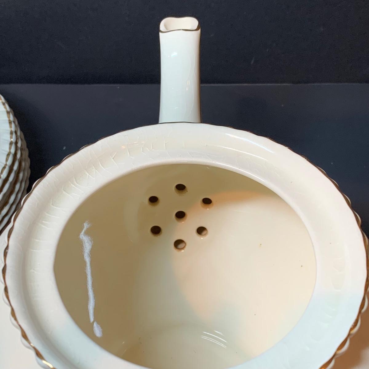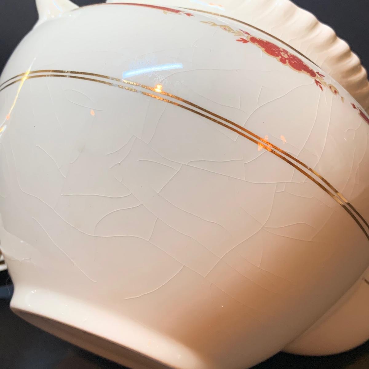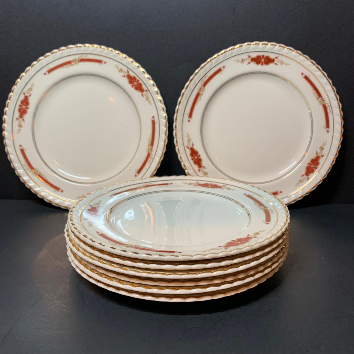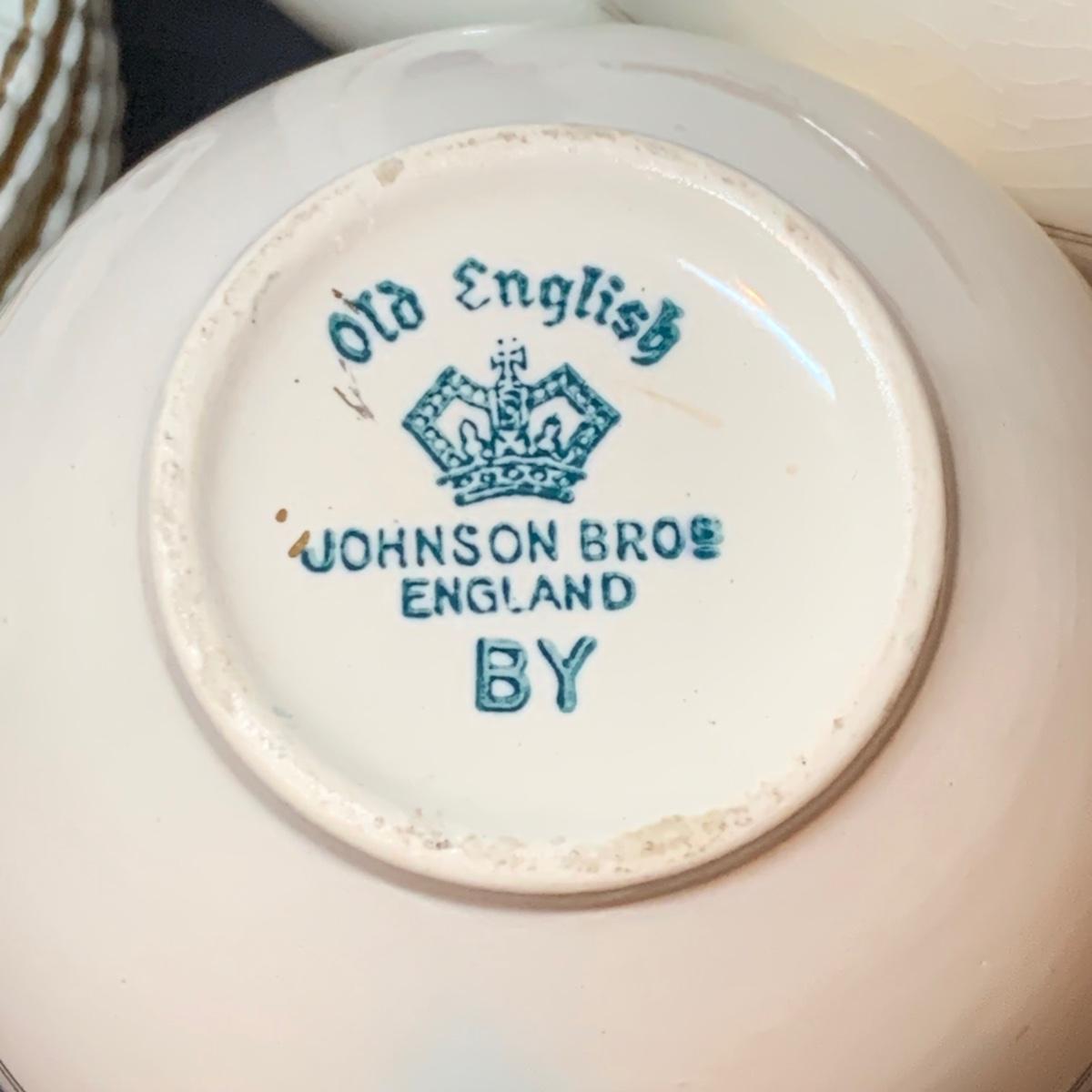 LOT 302R: Vintage Johnson Brothers Old English Guildford Maroon Tea Pot, Dessert Dishes, Sugar & Creamer