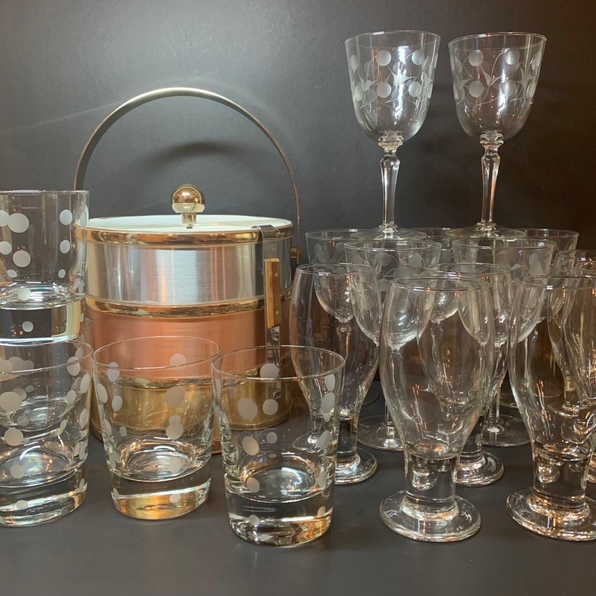 310R: Vintage Tri-Color Ice Bucket, Etched Crystal Glasses & More