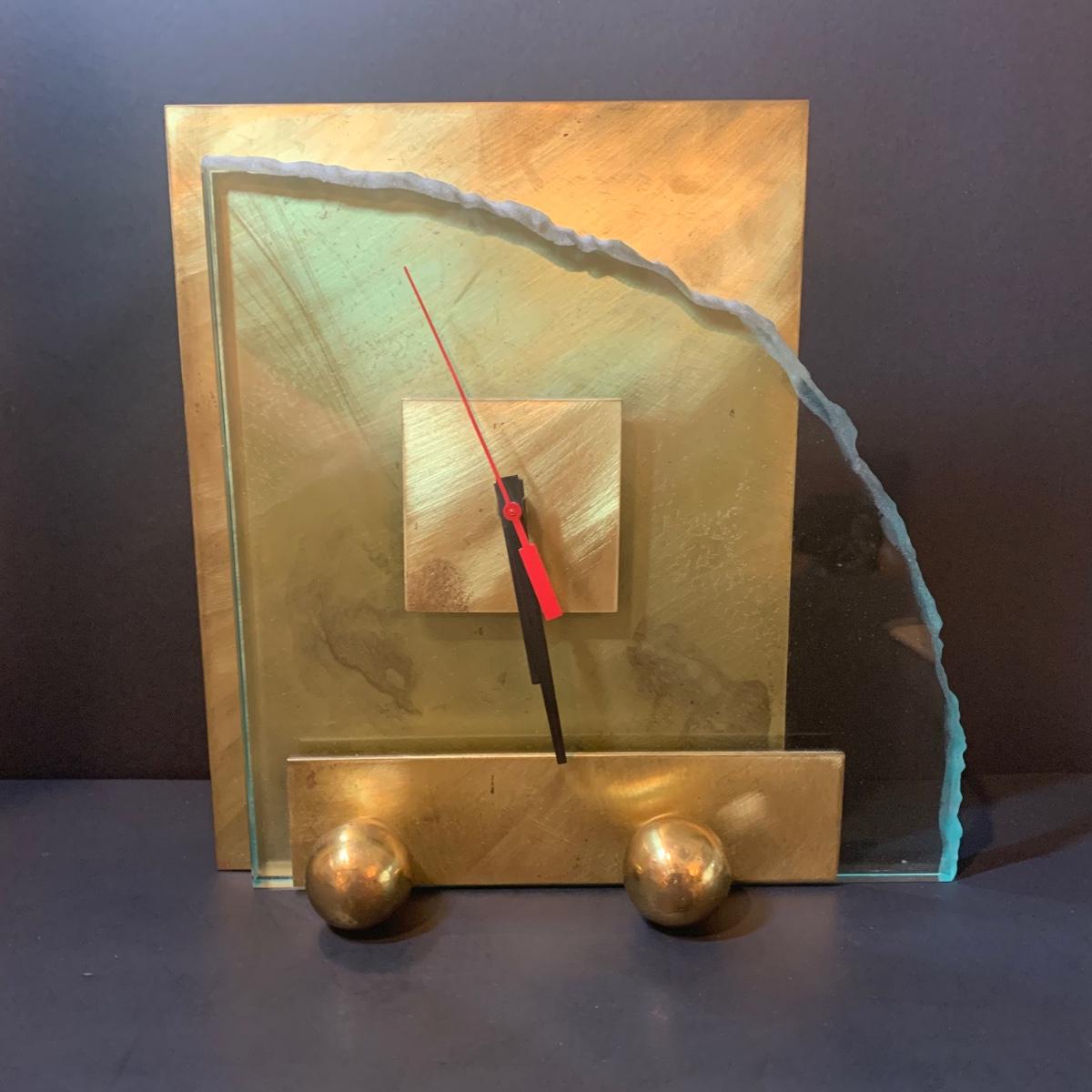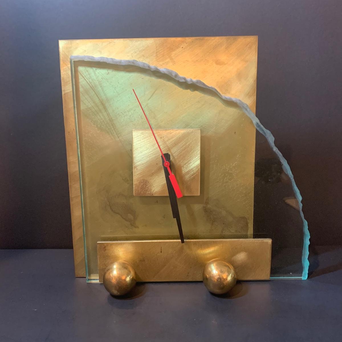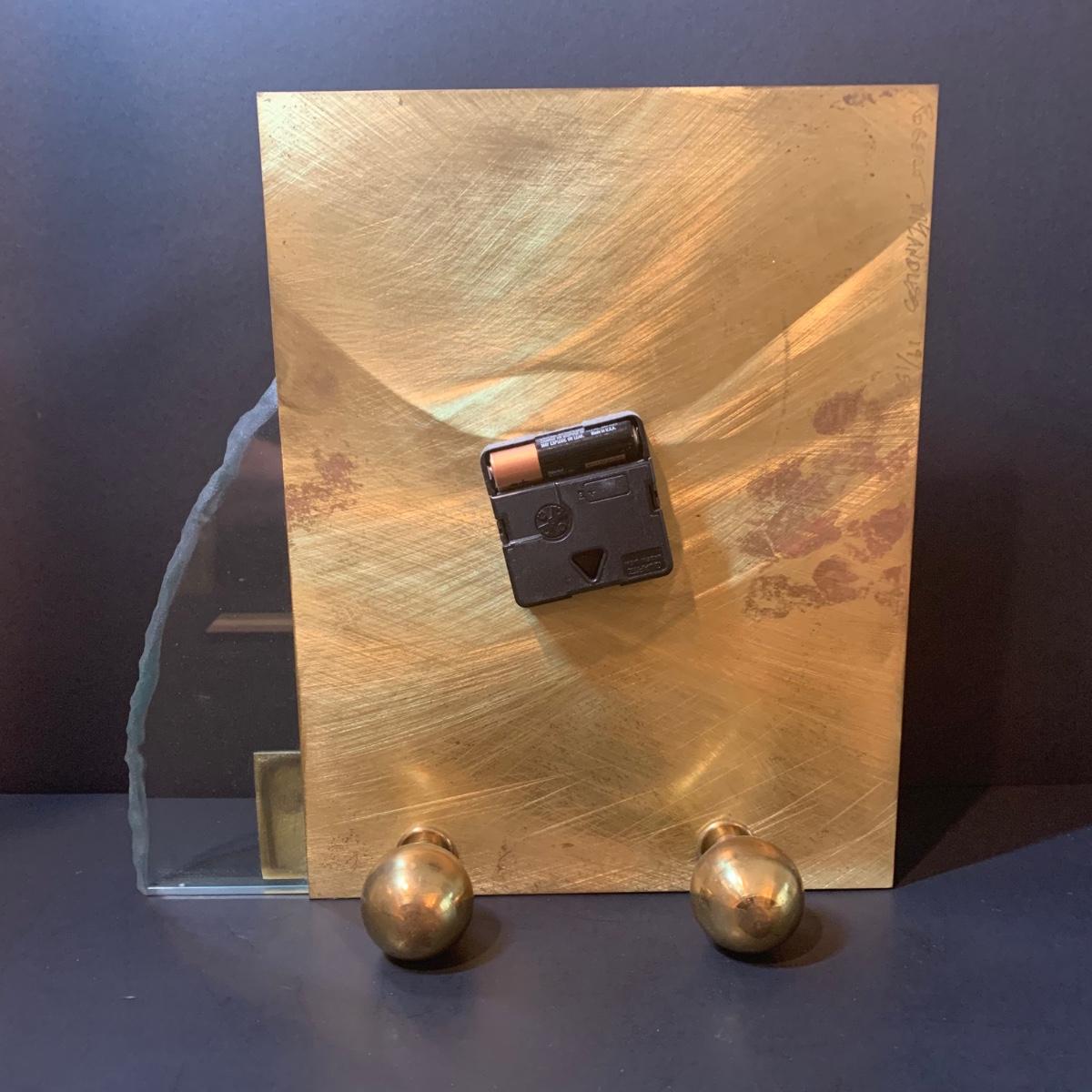 LOT 311R: Brass & Glass Mantle/Desk Clock: Signed & Numbered