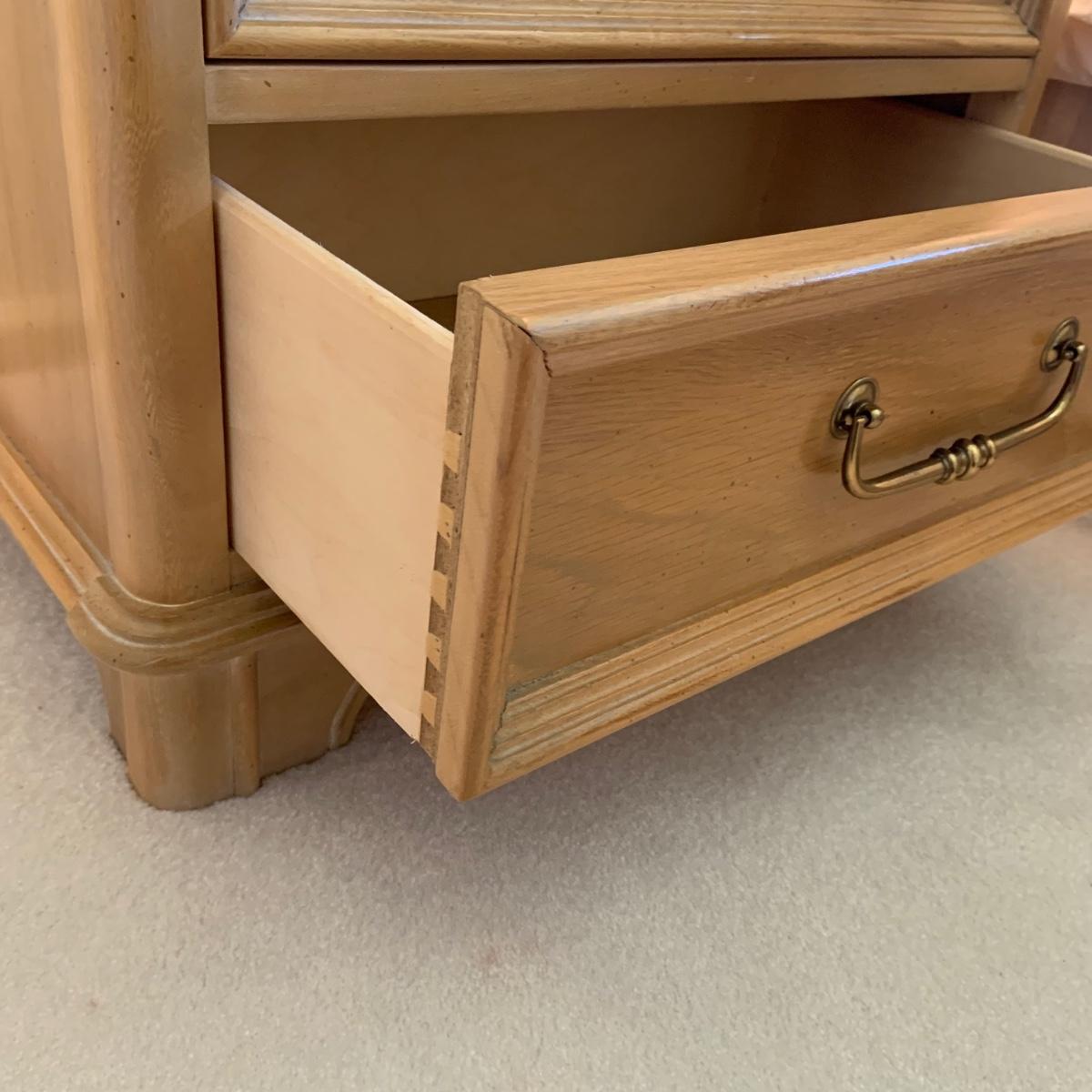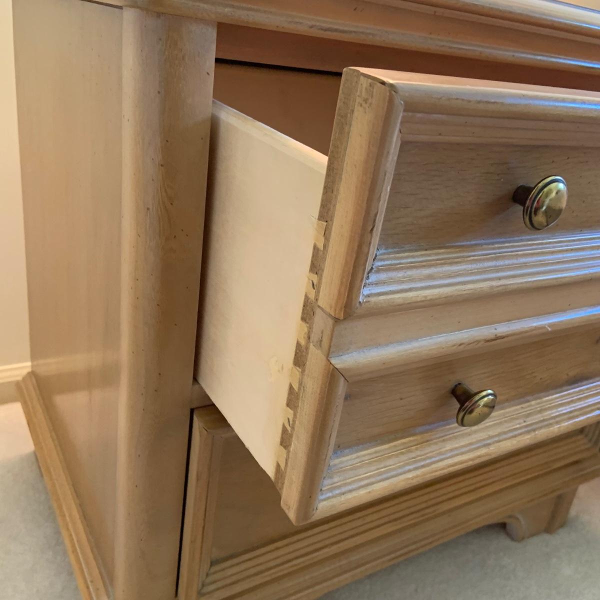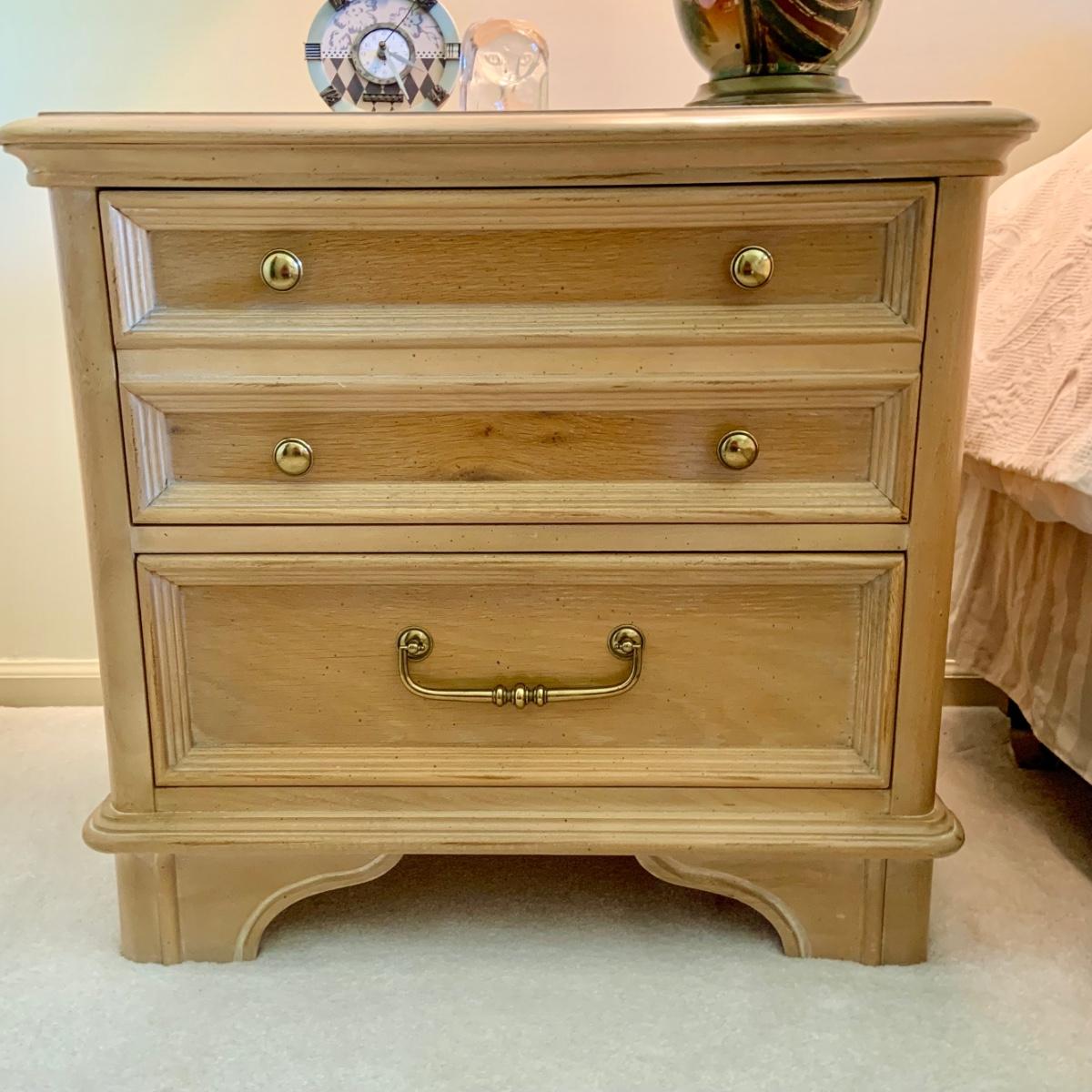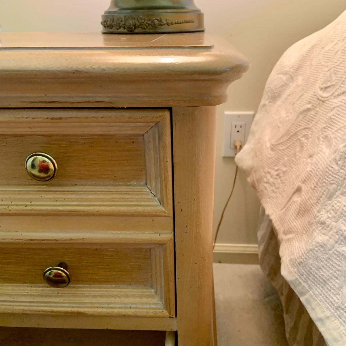 The nightstand measures 26 x 18 x 25. Please see all pictures as they are the best representation of the items. The pictures show condition, measurements if taken, and what is included in the lot. Due to the large amount that we photograph and the time frame, we are not always able to take measurements. All items unless noted, are pre-owned and have been used. If you purchased furniture, you must bring help. We do not allow one person to carry large furniture out on their own. Bring help, tools and a truck for the safety of our client’s homes, and your personal safety. Any damages that result to the property including walls, and floors due to moving of the furniture will be charged to the buyer. Company policy. Thank you.