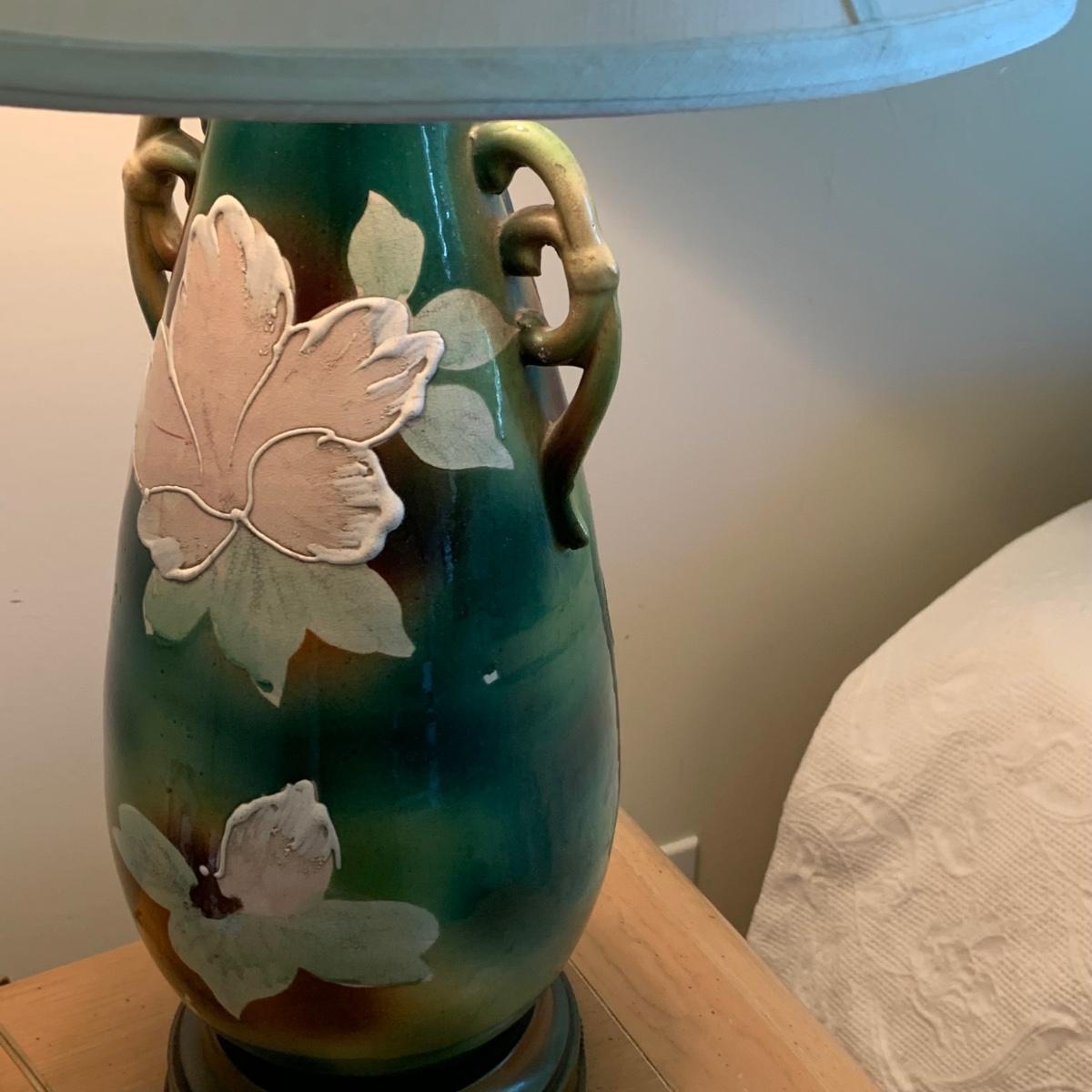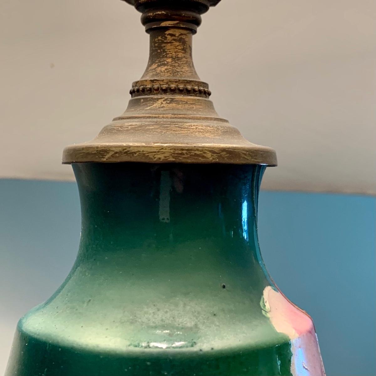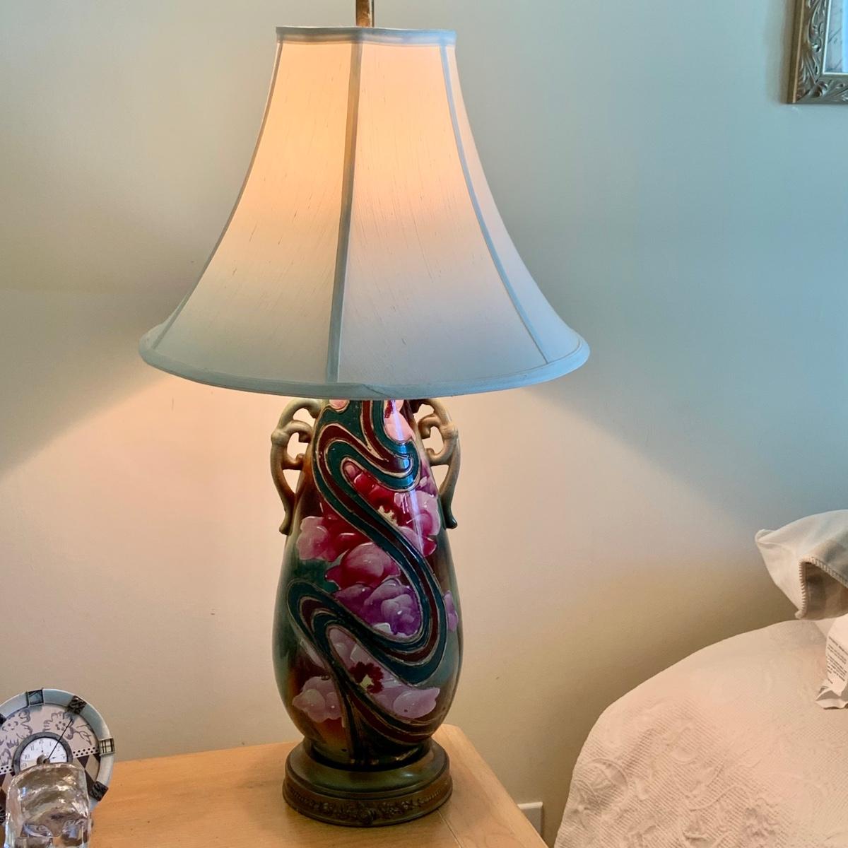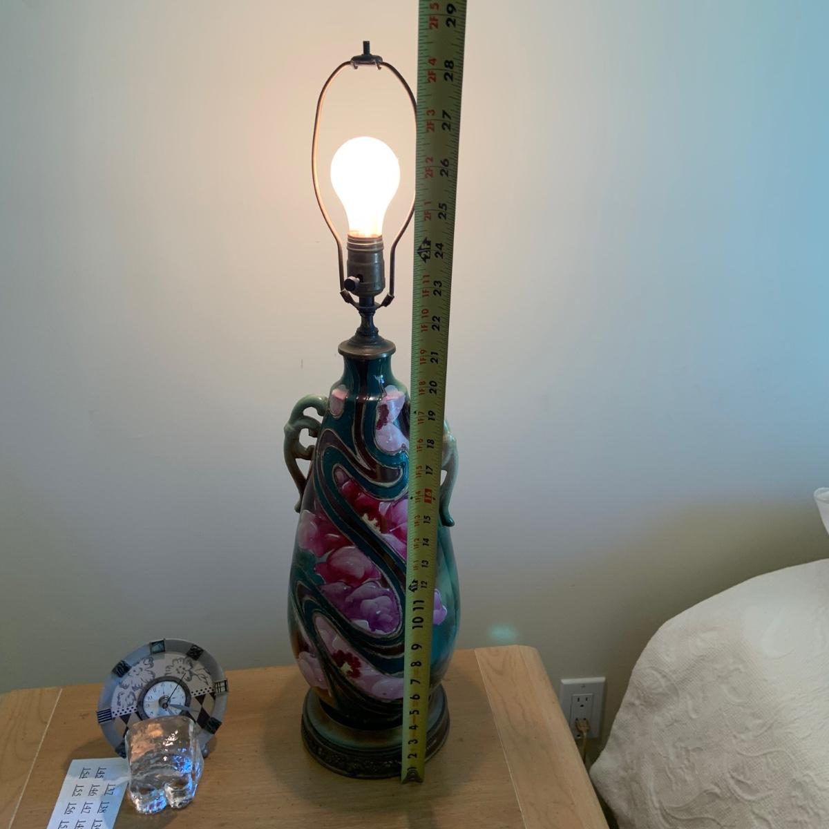LOT:137G: Vintage Painted Porcelean Lamp with Shade.