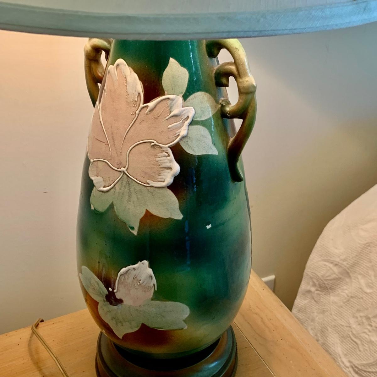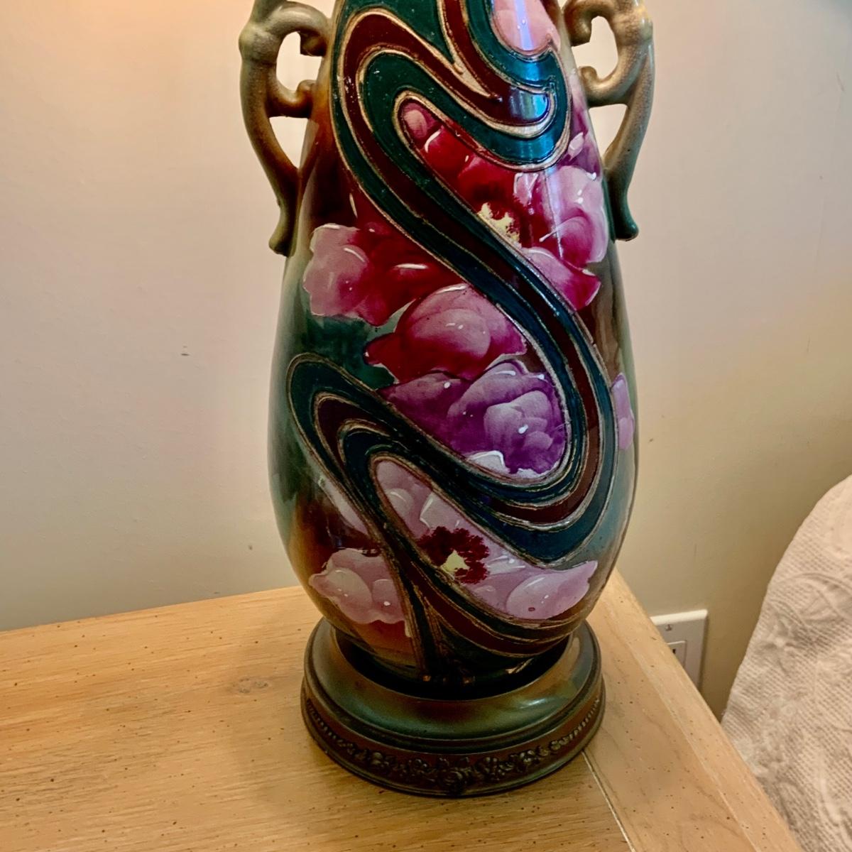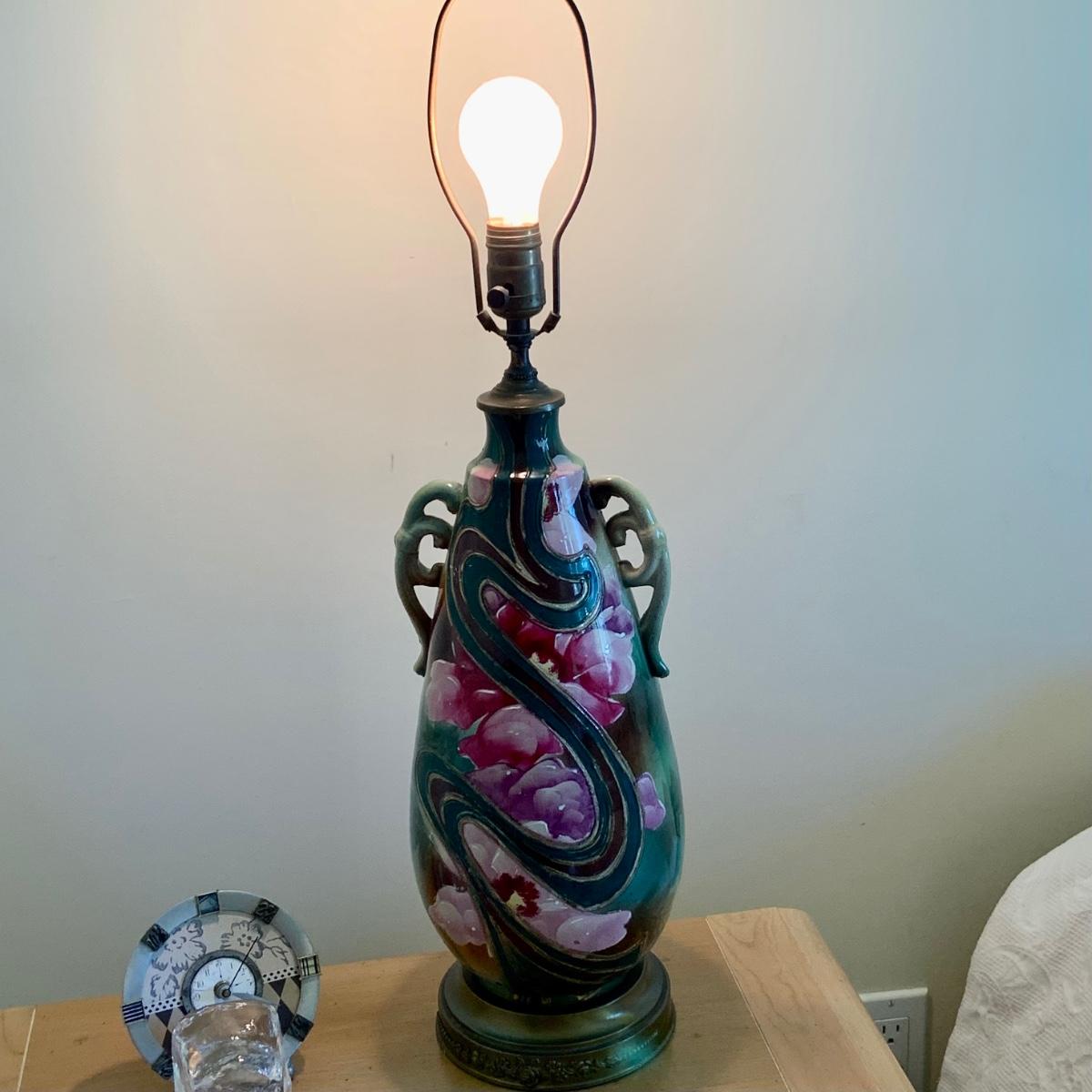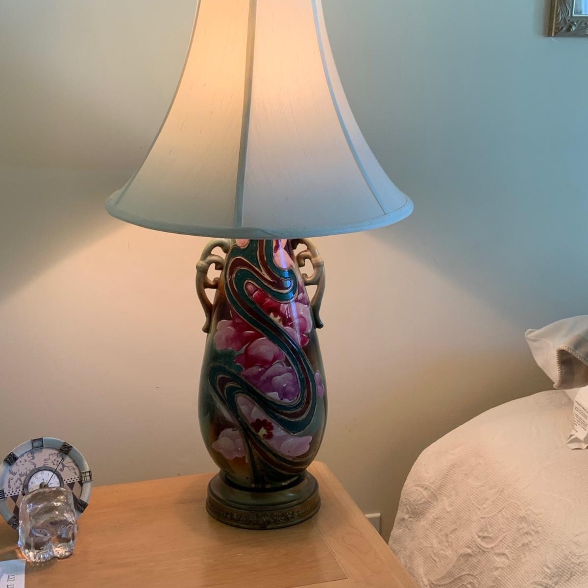 LOT:137G: Vintage Painted Porcelean Lamp with Shade.