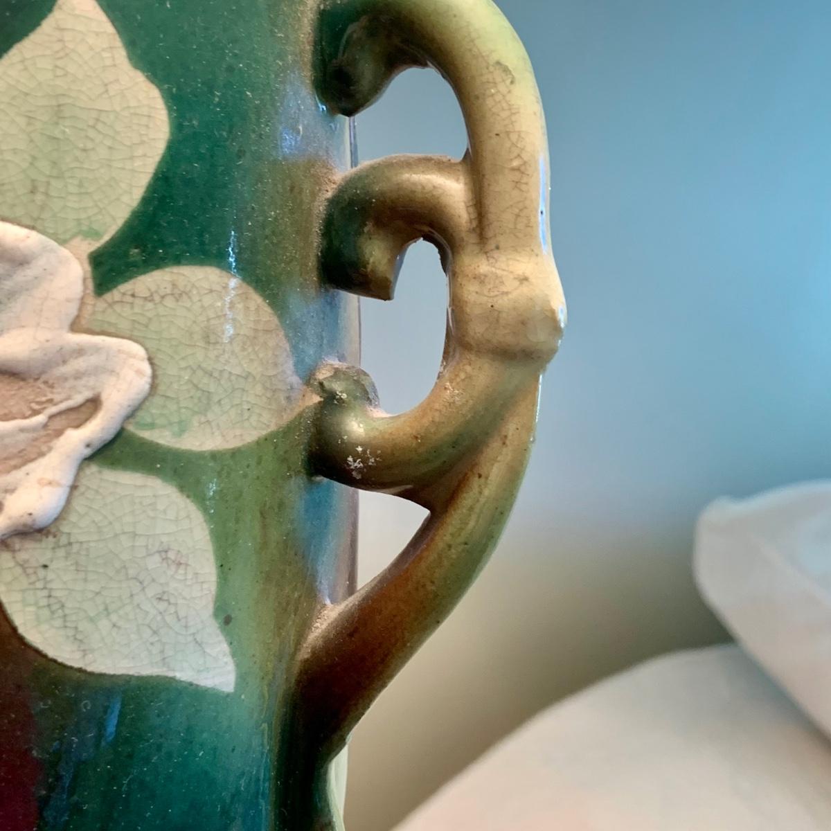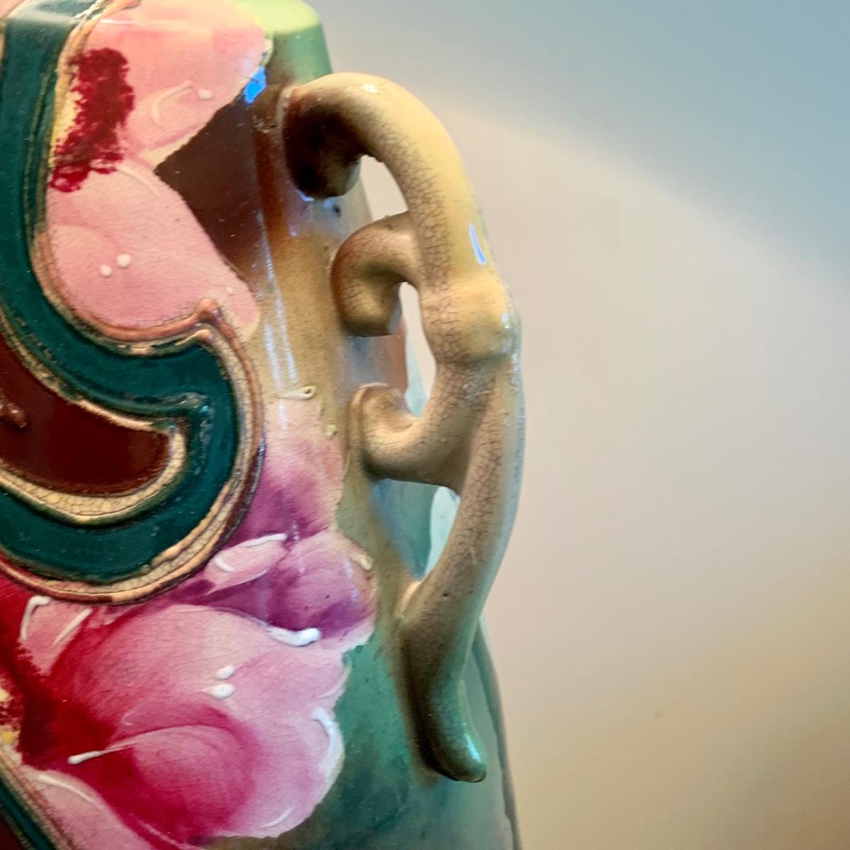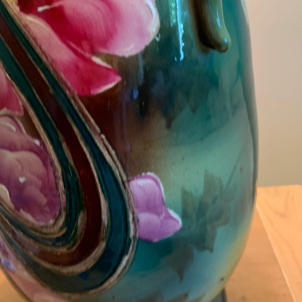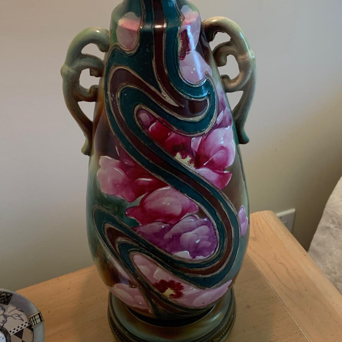 LOT:137G: Vintage Painted Porcelean Lamp with Shade.