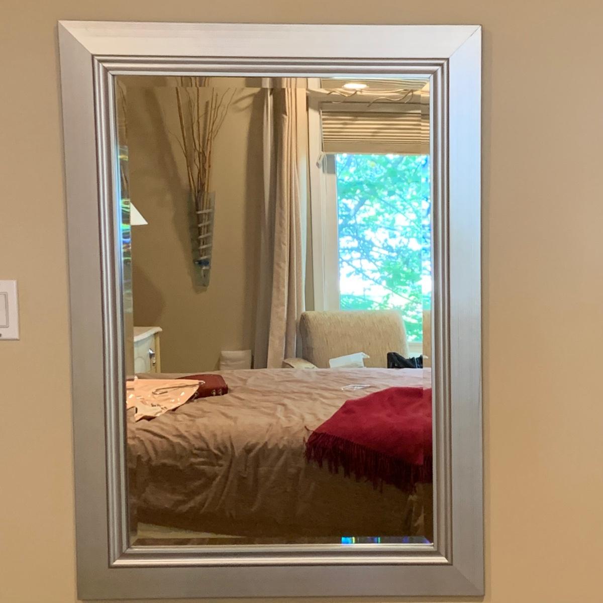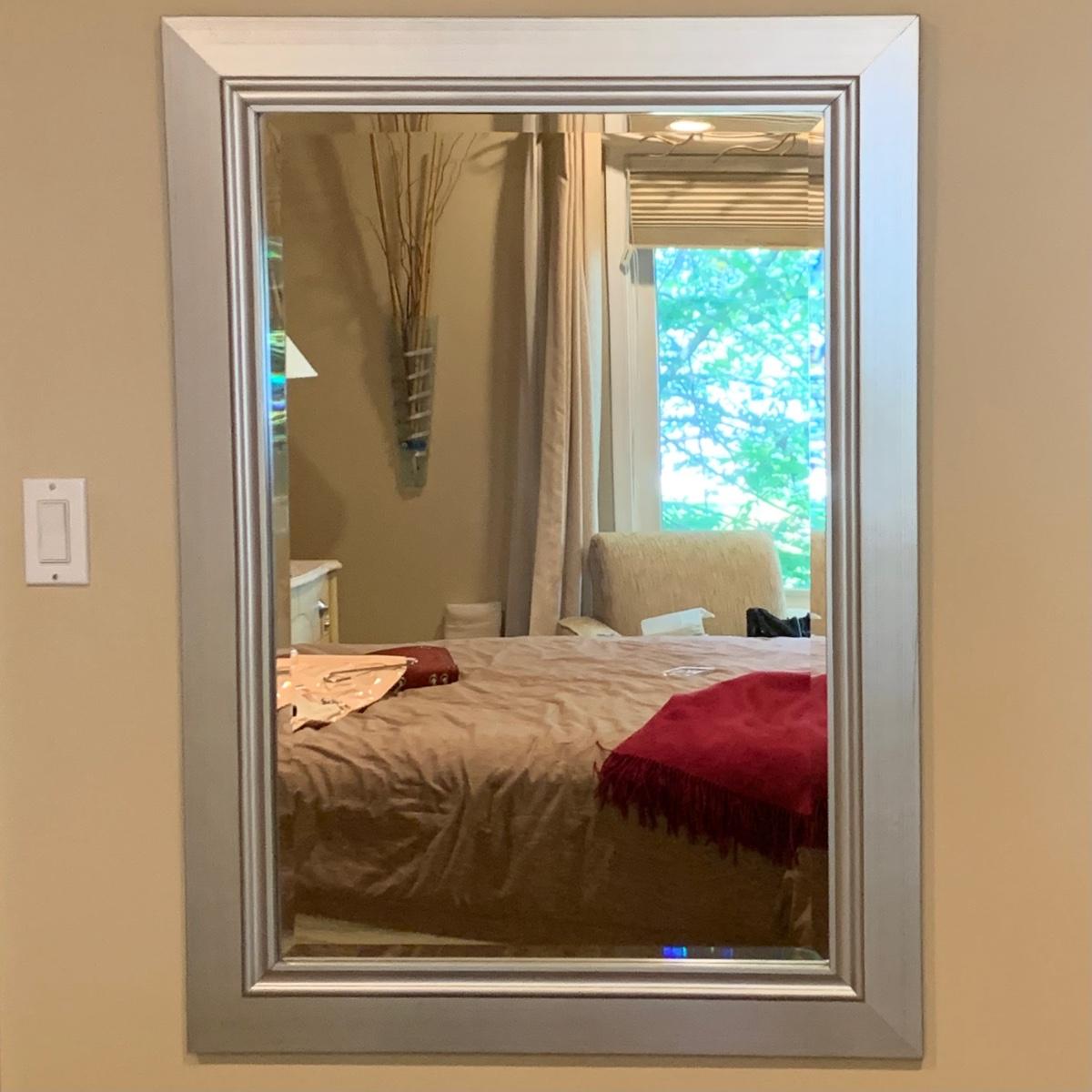 The mirror is 32 x 43" Please see all pictures as they are the best representation of the items. The pictures show condition, measurements if taken, and what is included in the lot. Due to the large amount that we photograph and the time frame, we are not always able to take measurements. All items unless noted, are pre-owned and have been used. If you purchased furniture, you must bring help. We do not allow one person to carry large furniture out on their own. Bring help, tools and a truck for the safety of our client’s homes, and your personal safety. Any damages that result to the property including walls, and floors due to moving of the furniture will be charged to the buyer. Company policy. Thank you.