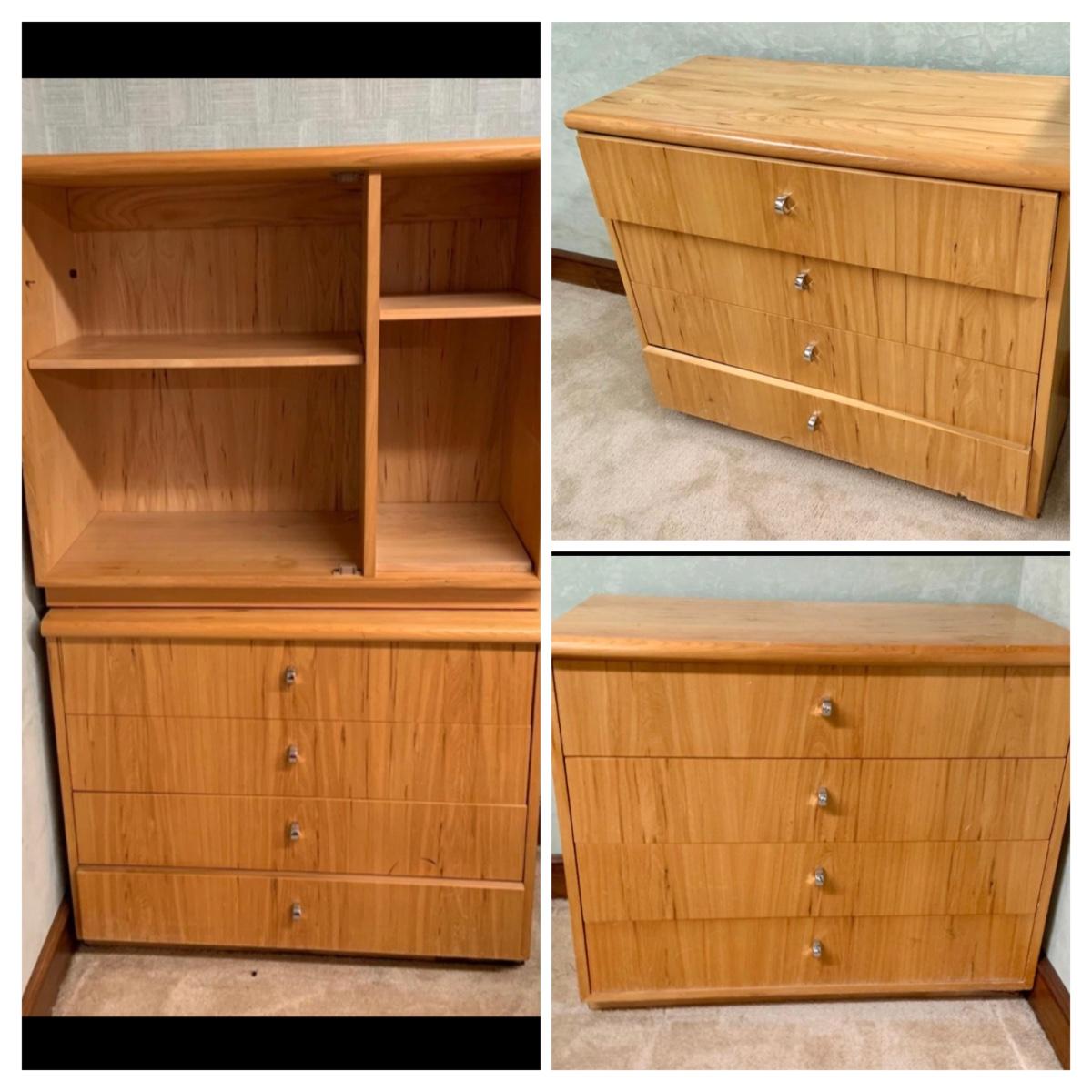 The dressers are 33 x 16 x 29 and the book shelf is 33 x 16 x 28. There are some condition issue with this lot. Please see all pictures as they are the best representation of the items. The pictures show condition, measurements if taken, and what is included in the lot. Due to the large amount that we photograph and the time frame, we are not always able to take measurements. All items unless noted, are pre-owned and have been used. If you purchased furniture, you must bring help. We do not allow one person to carry large furniture out on their own. Bring help, tools and a truck for the safety of our client’s homes, and your personal safety. Any damages that result to the property including walls, and floors due to moving of the furniture will be charged to the buyer. Company policy. Thank you.