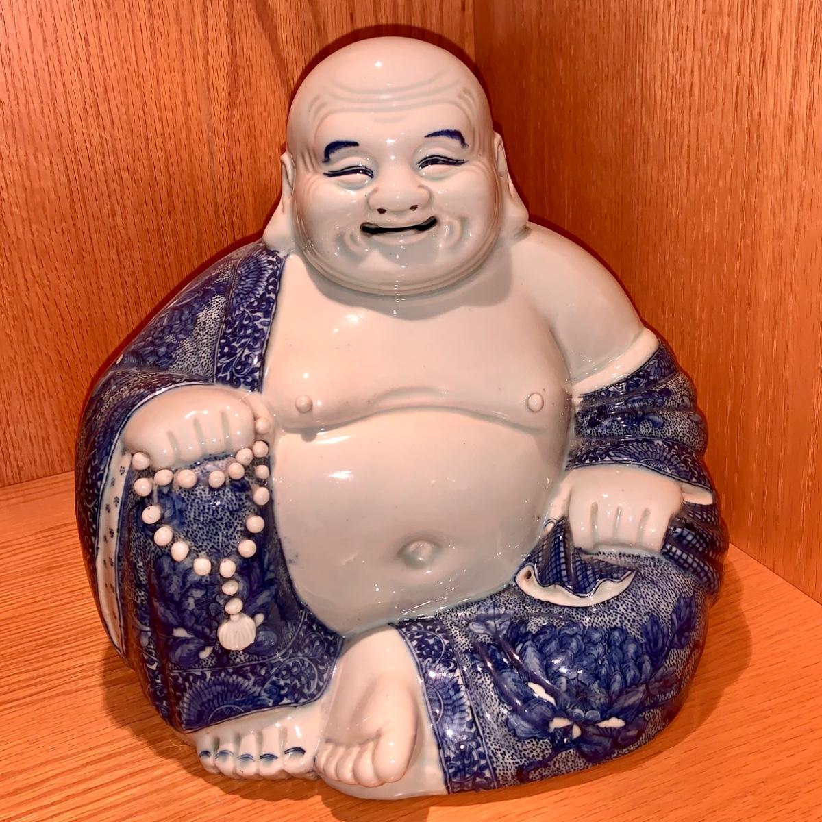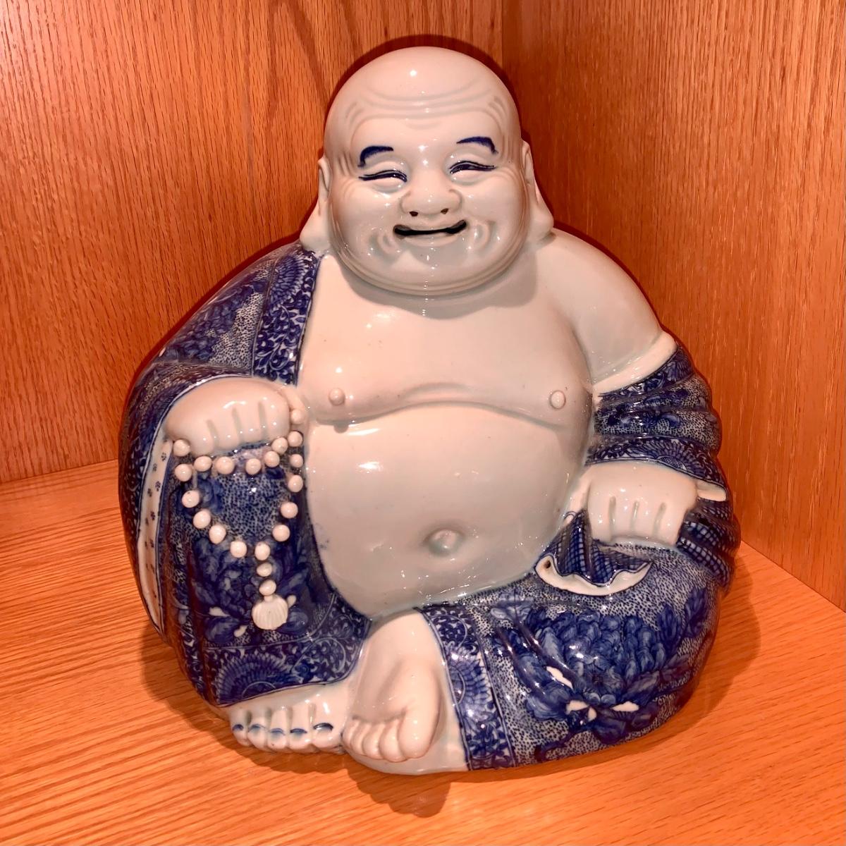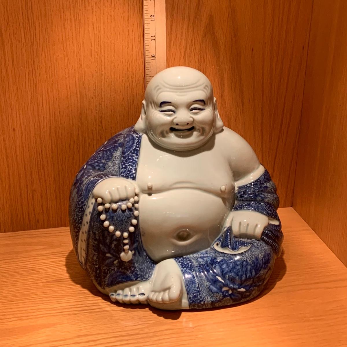 LOT:155G: Vintage Blue and White Laughing Buddha