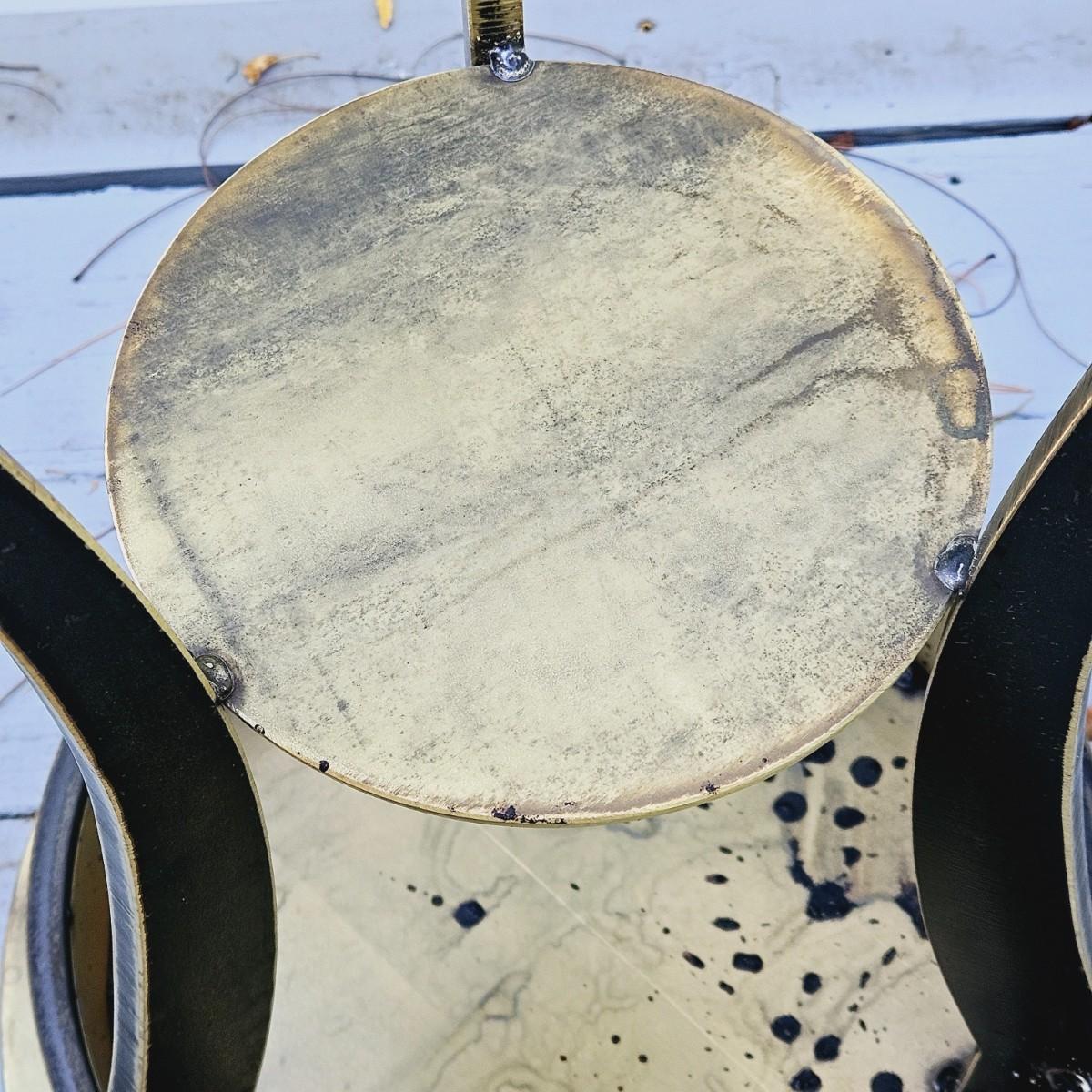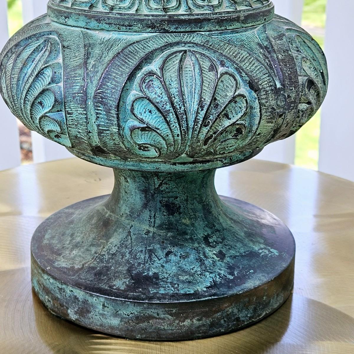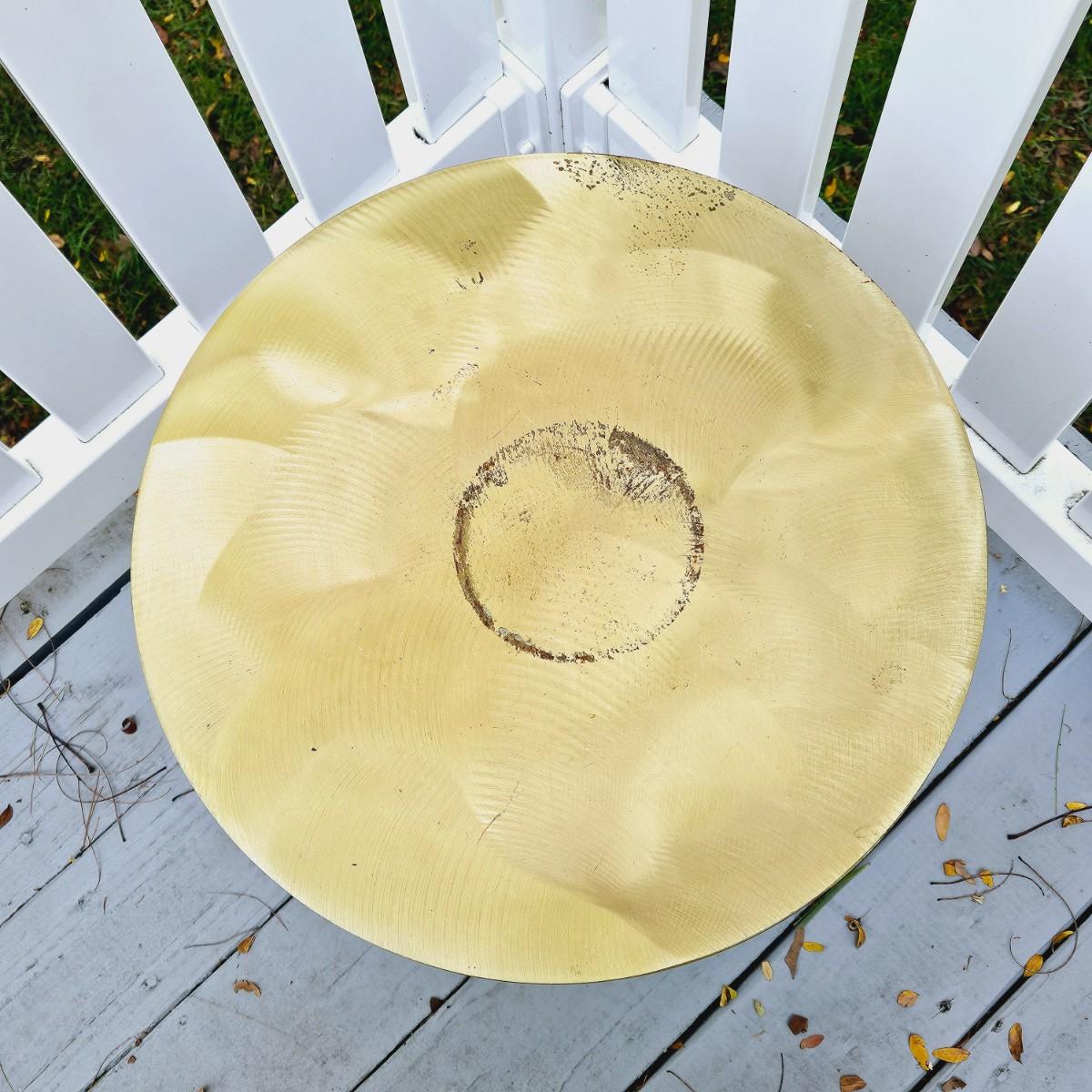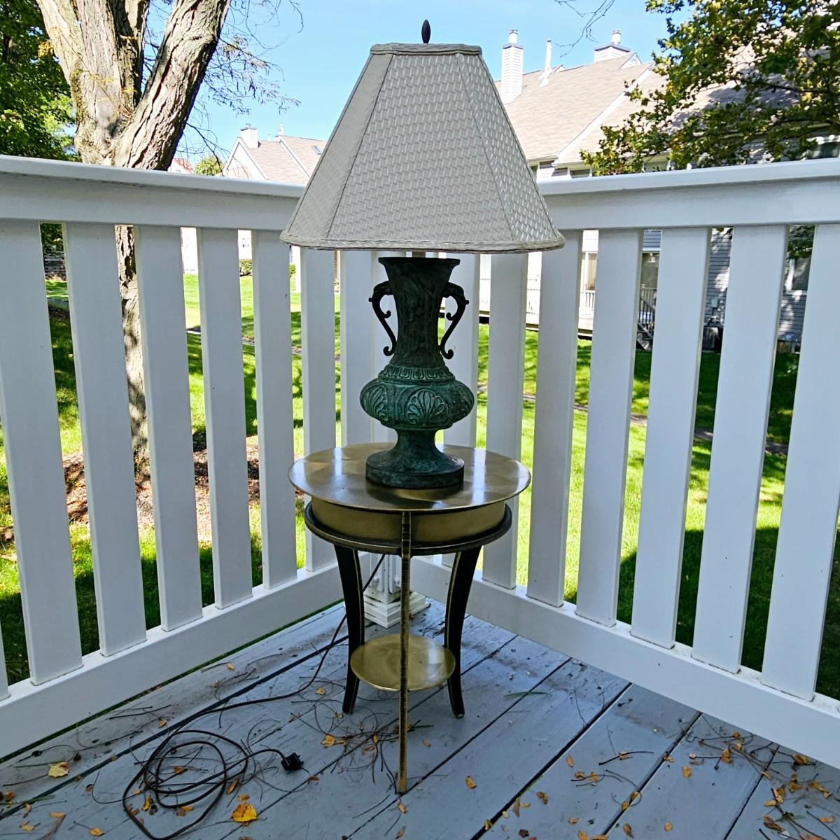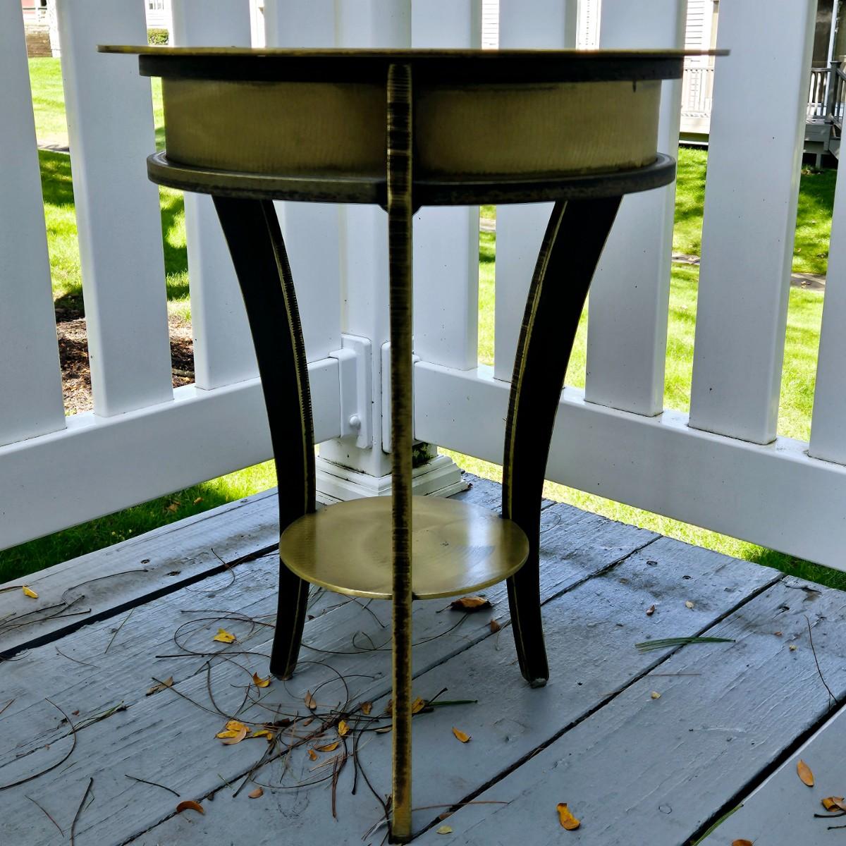 LOT 167S: Small Industrial John Visey Style Solid Brass Side Table & Urn Style Metal Lamp