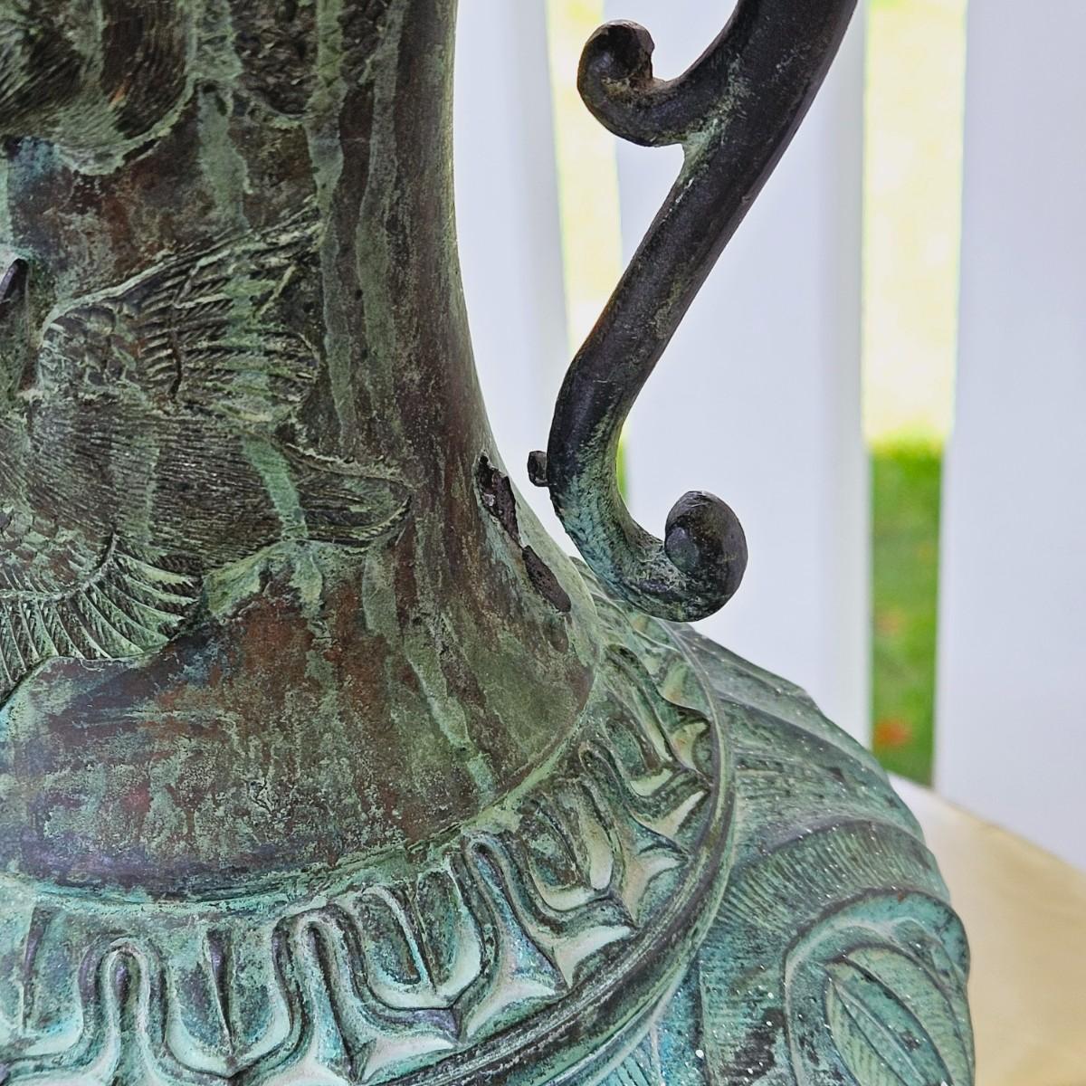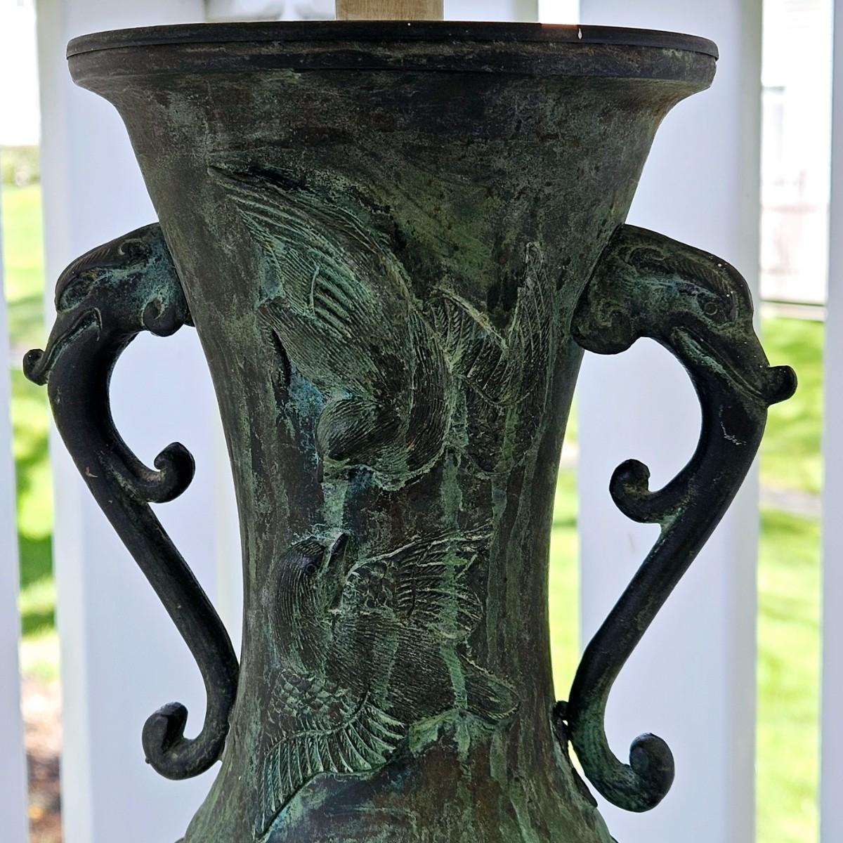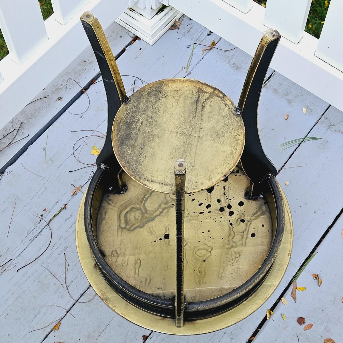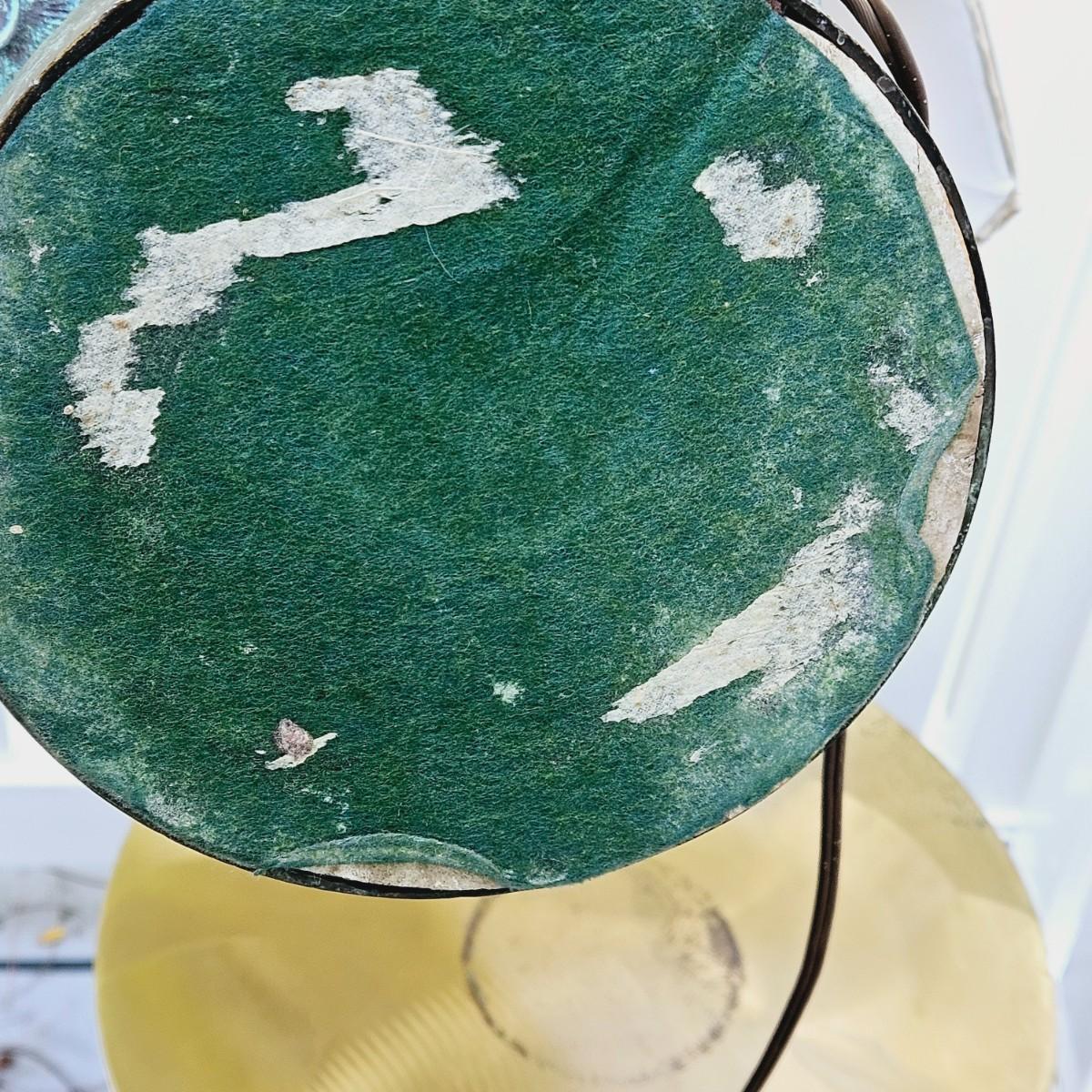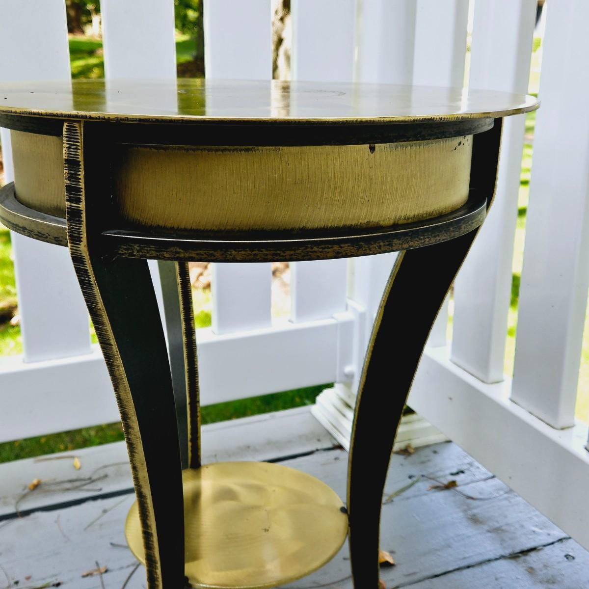 LOT 167S: Small Industrial John Visey Style Solid Brass Side Table & Urn Style Metal Lamp
