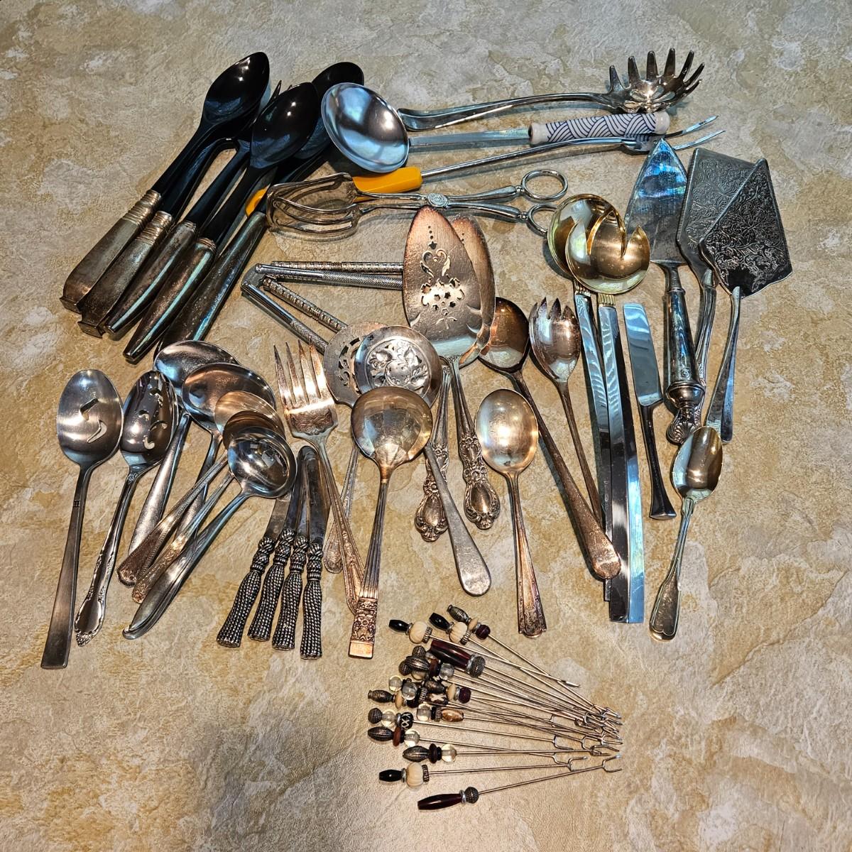 LOT 178S: Large Collection of Kitchen Serving Utensils & Flatware