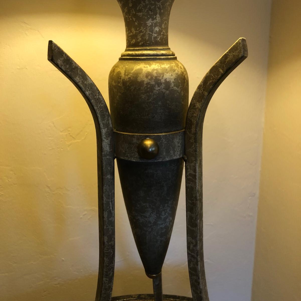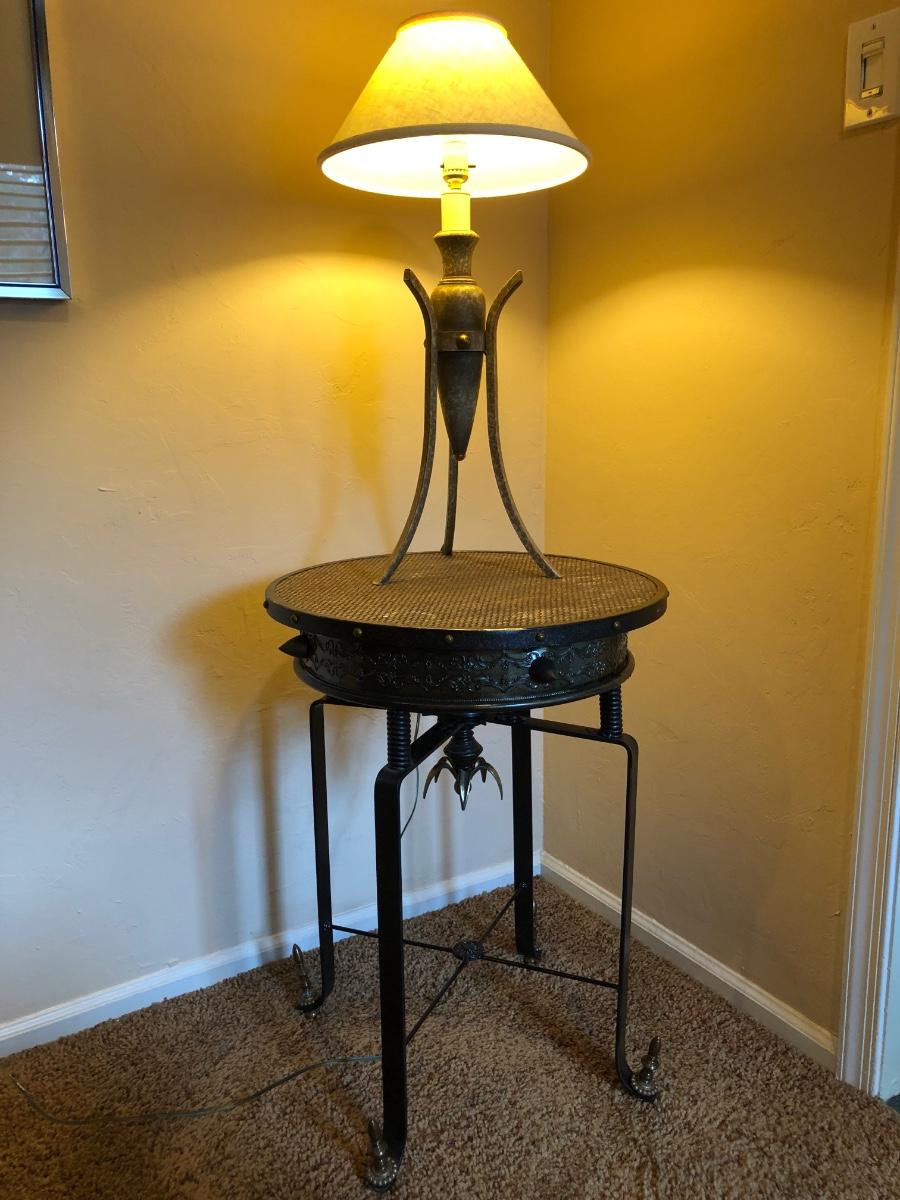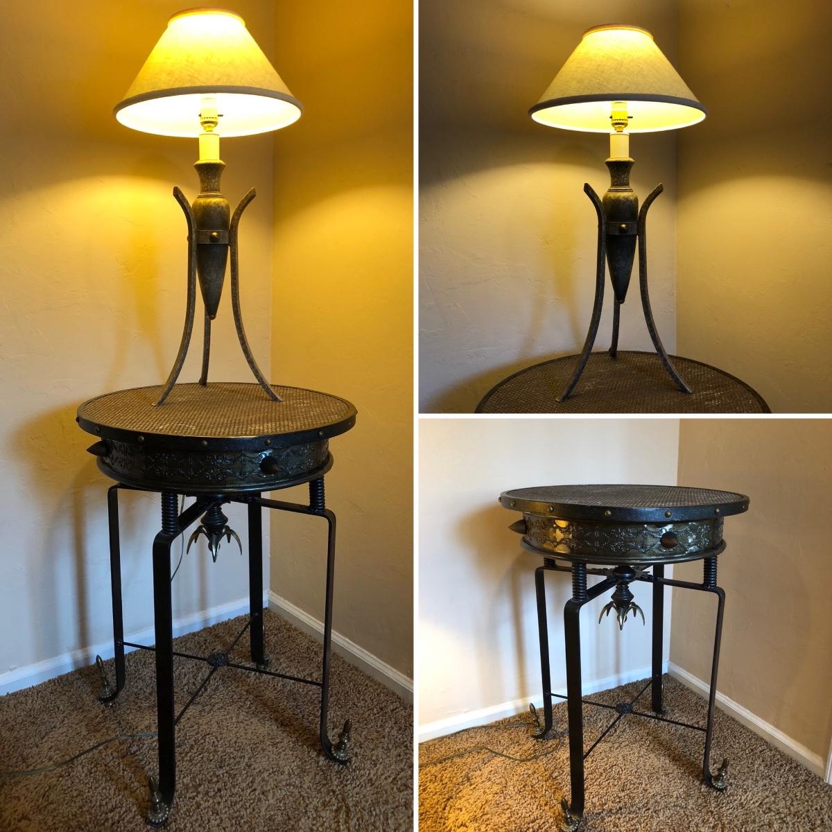 LOT 245M: Contemporary Artistic Table Lamp w/ Vintage Ornate Side Table