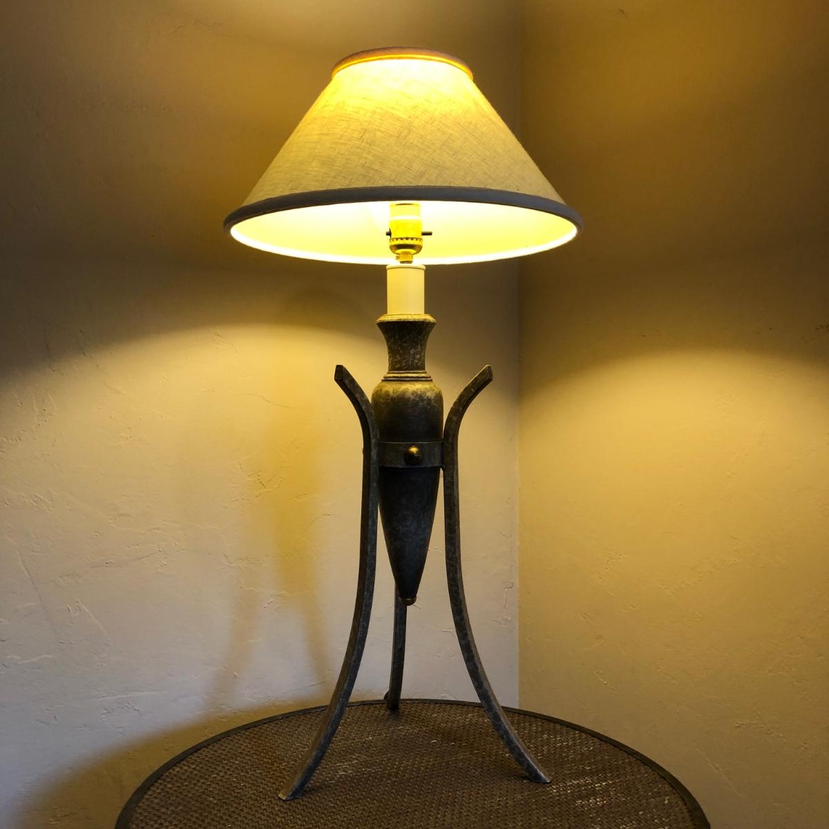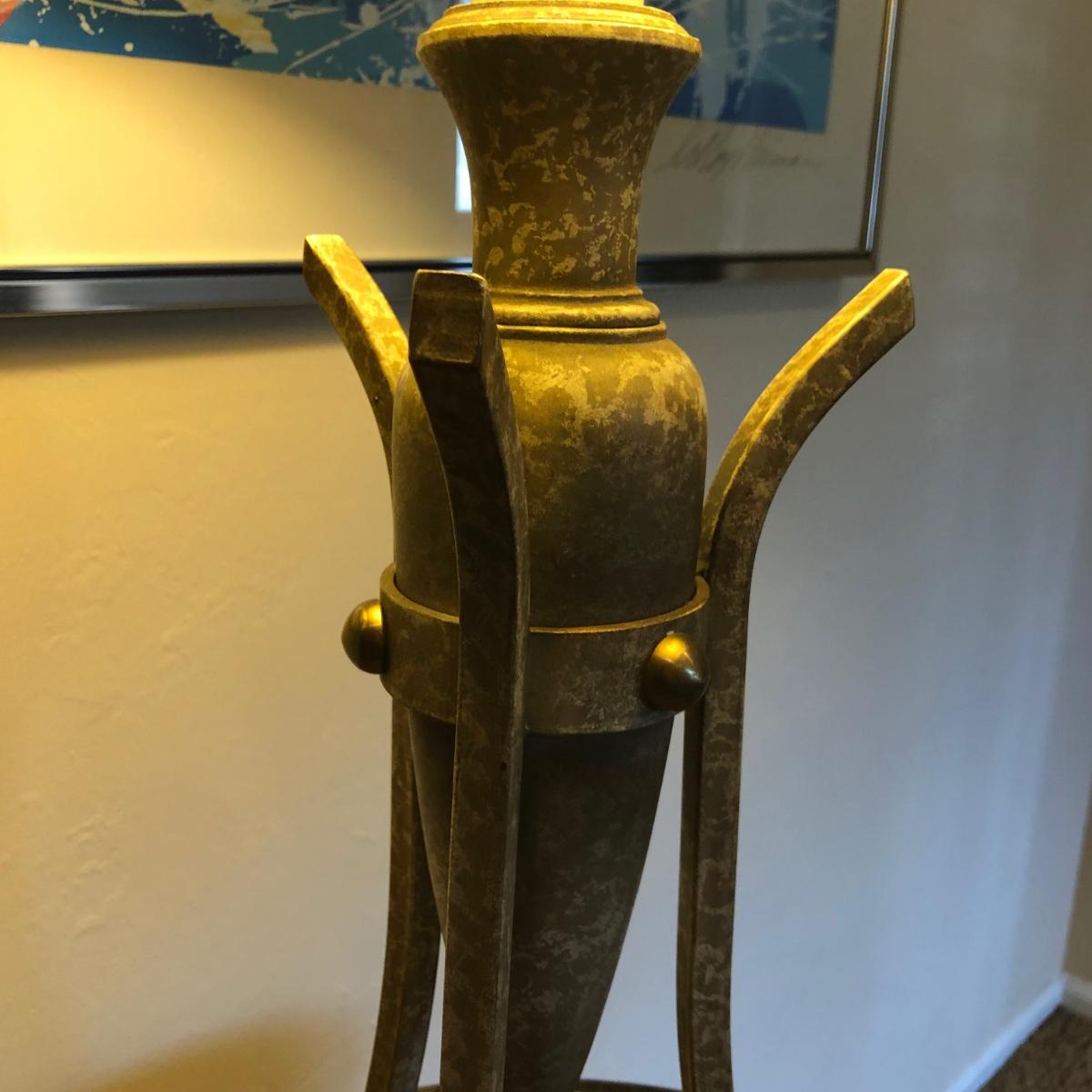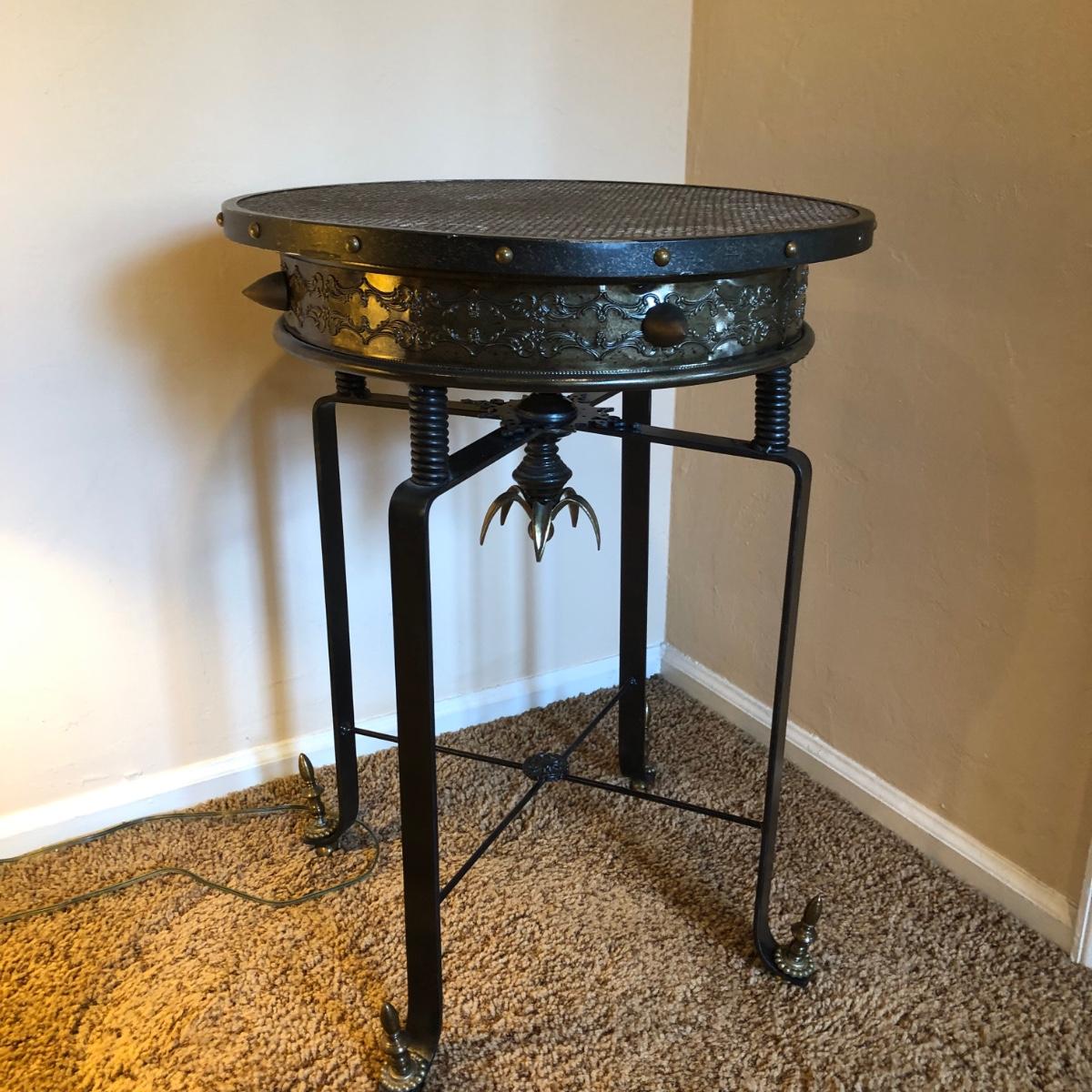 LOT 245M: Contemporary Artistic Table Lamp w/ Vintage Ornate Side Table