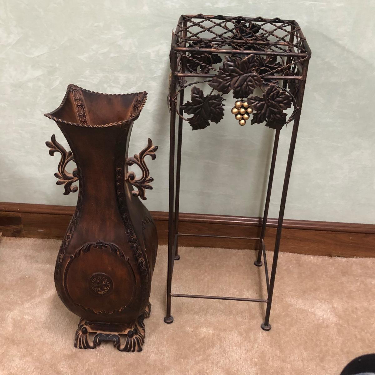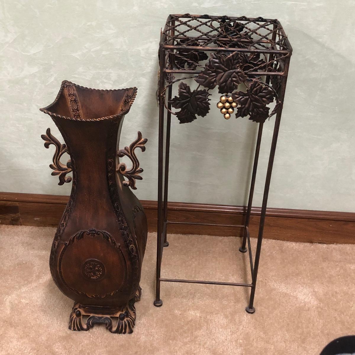 LOT 269M: Metal Side Table w/ Rust Colored Vase